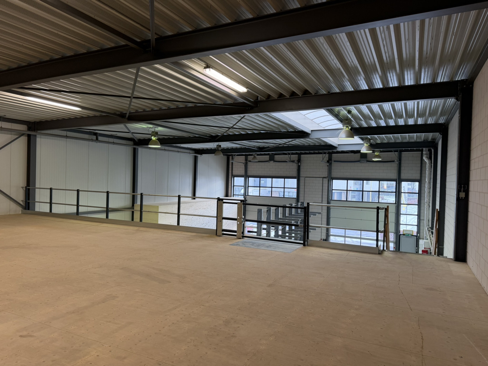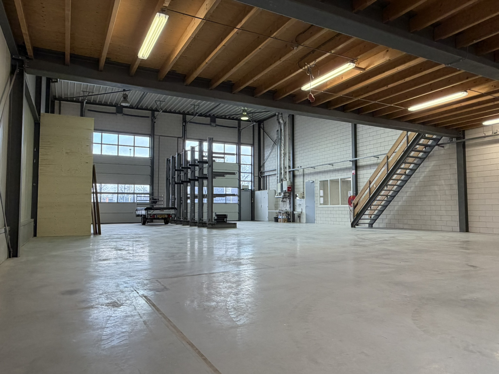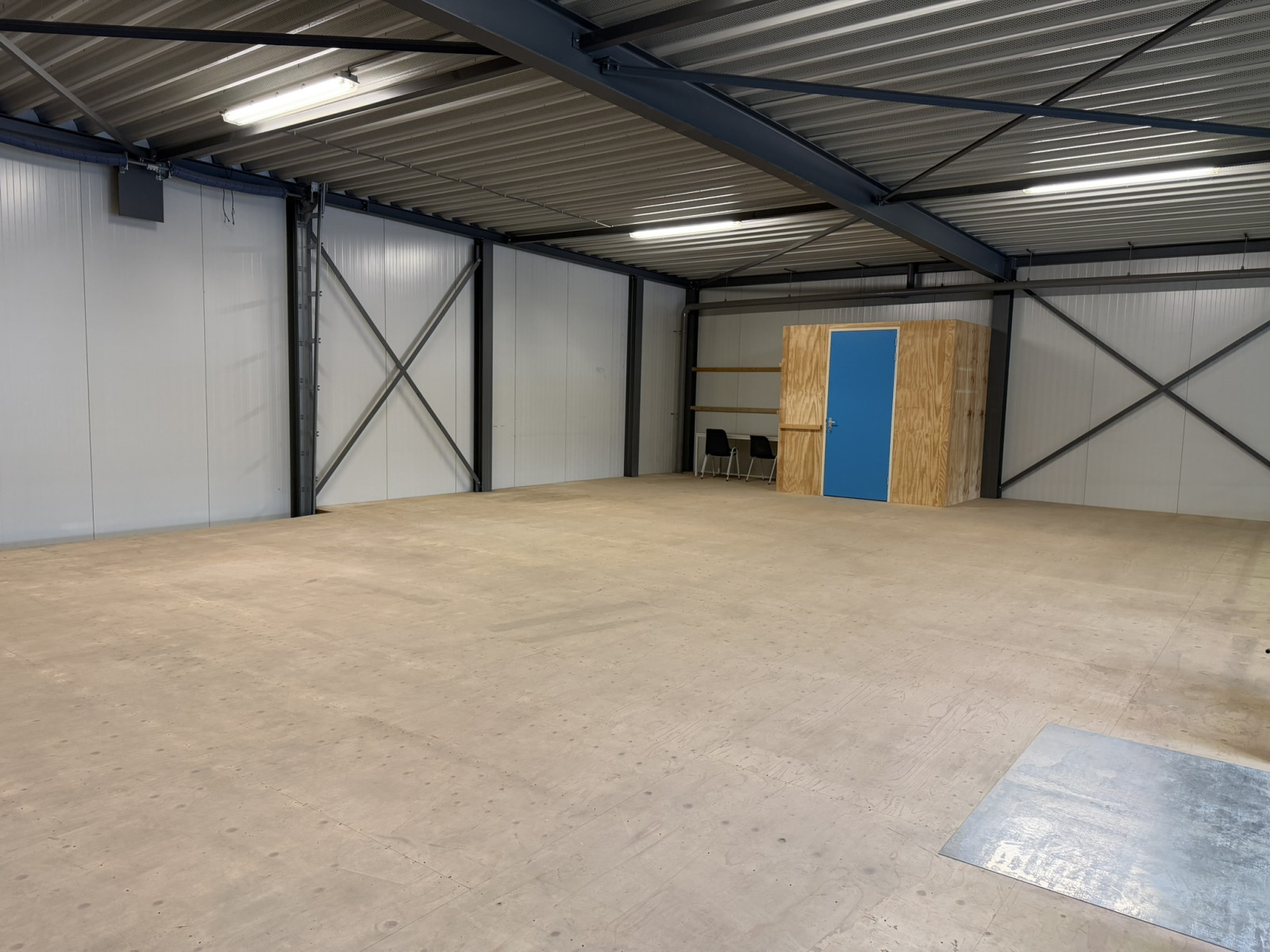 Lichtstraten, overheaddeuren, krachtstroom, betonvloer en toilet