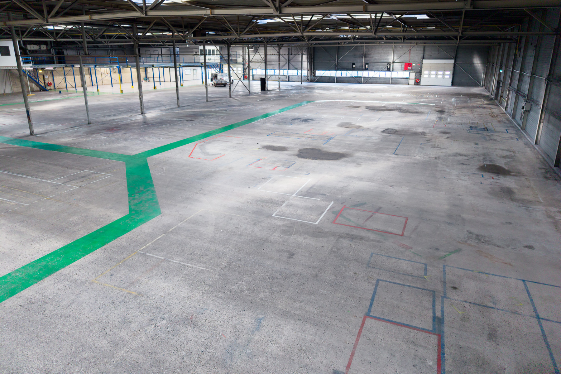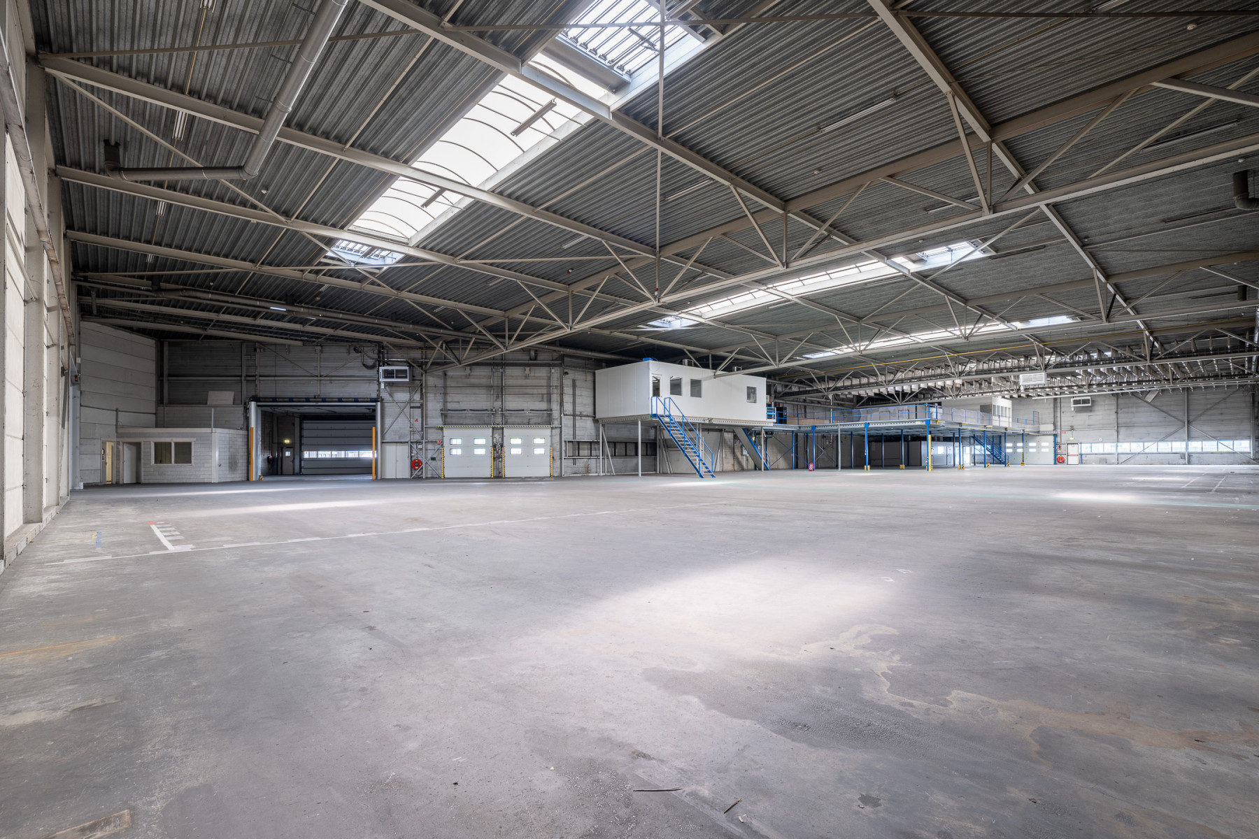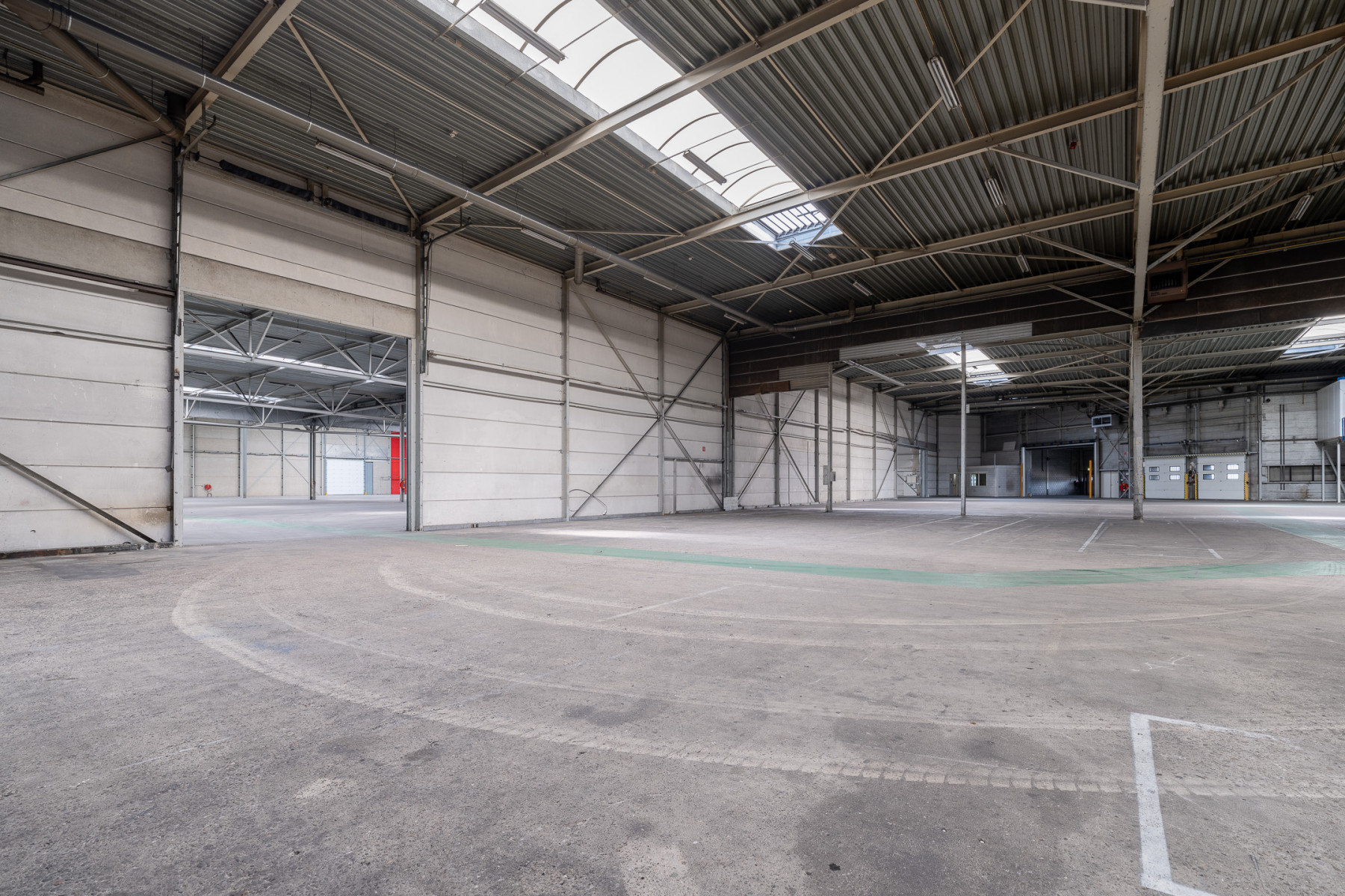 Lichtstraten, loading docks, overheaddeuren, krachtstroom, betonvloer, heater, toilet en pantry