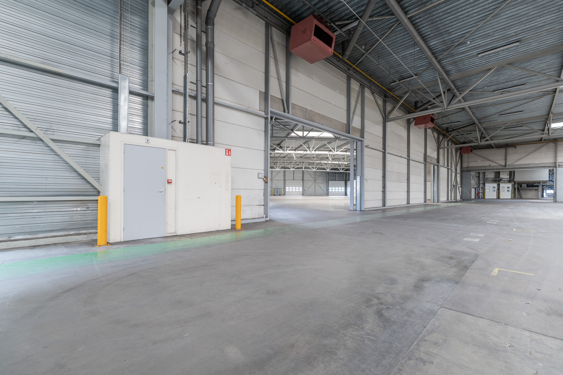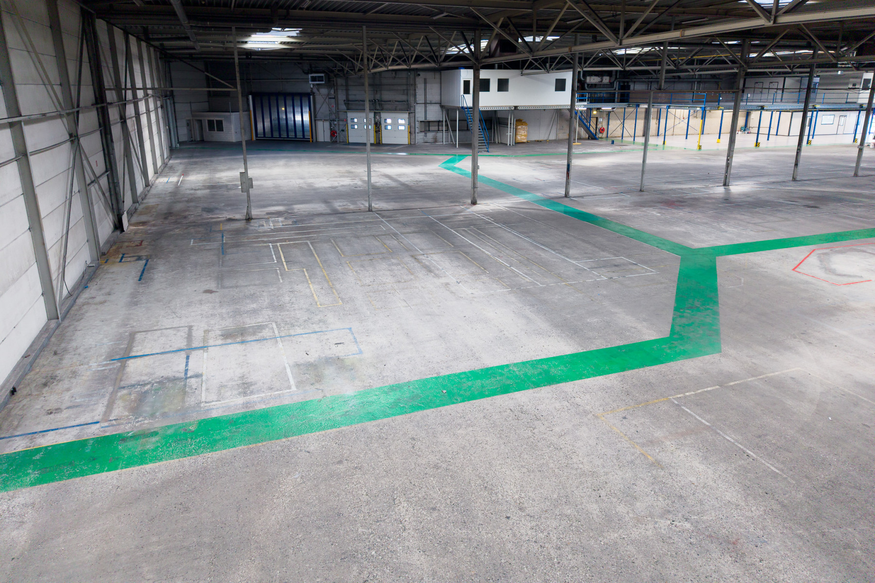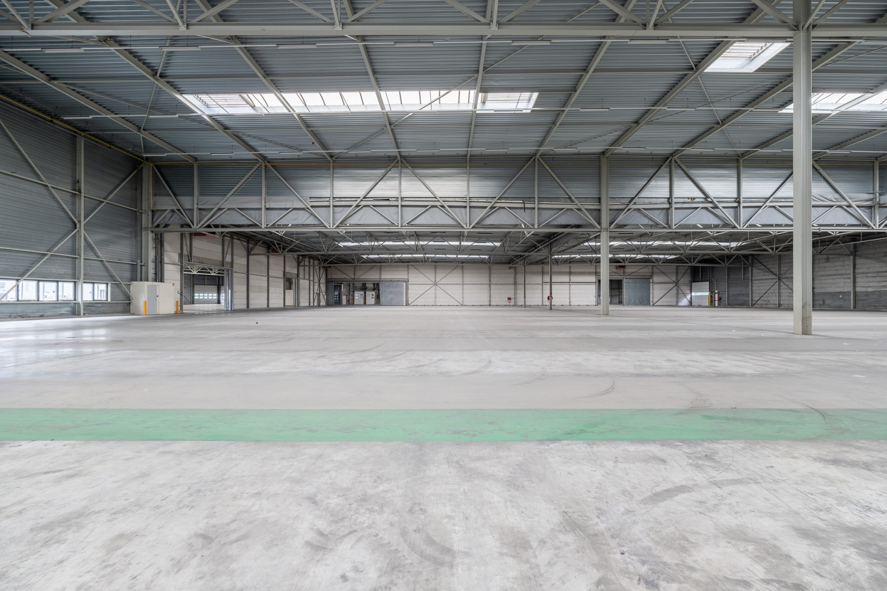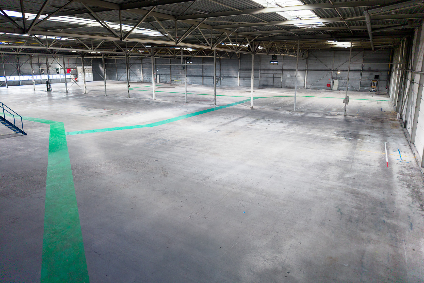 Lichtstraten, loading docks, overheaddeuren, krachtstroom, betonvloer, heater, toilet en pantry