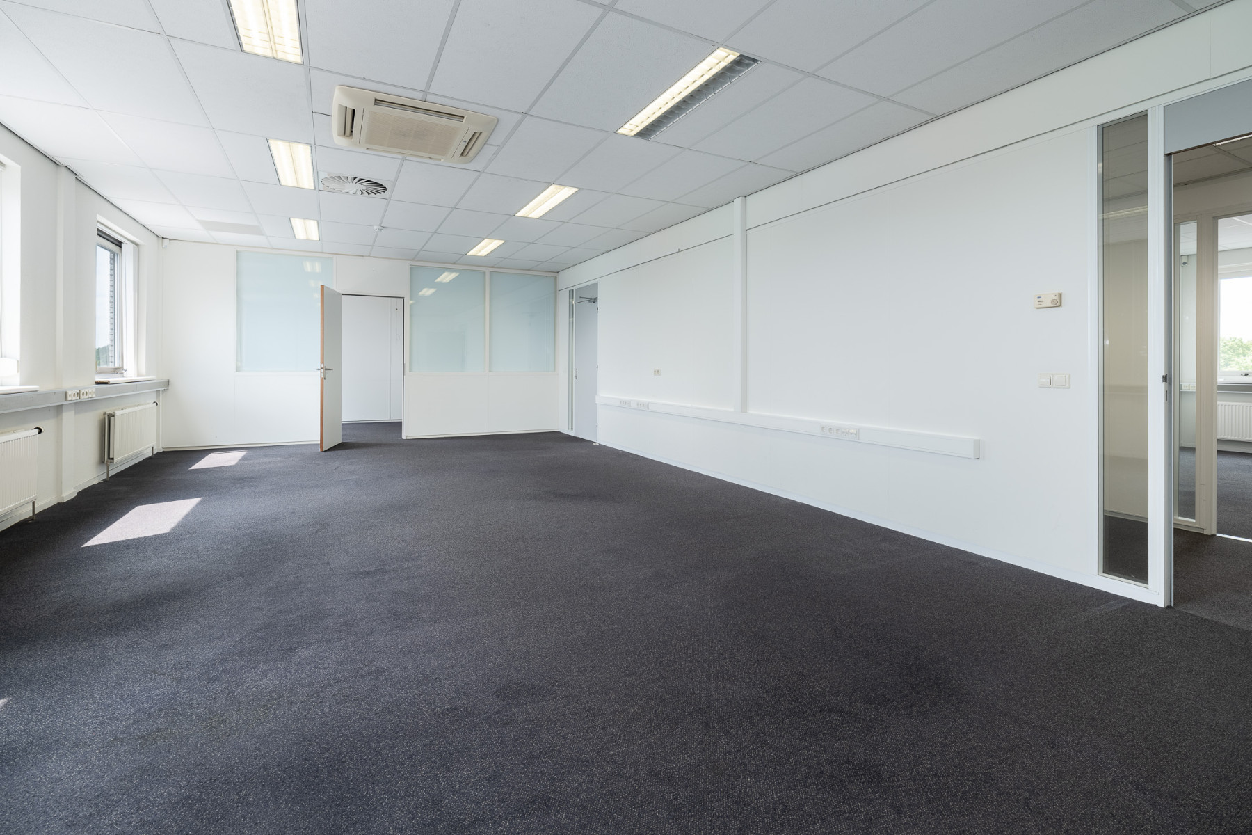 • Comfortabele kantoren met systeemplafonds, radiatoren, airco en veel daglicht