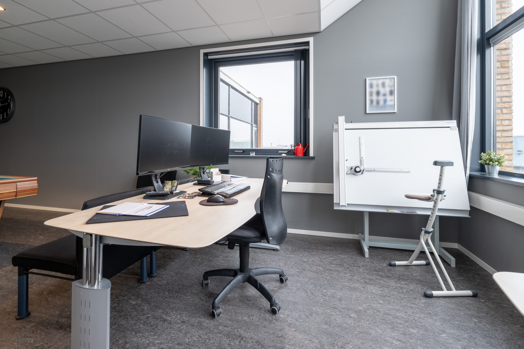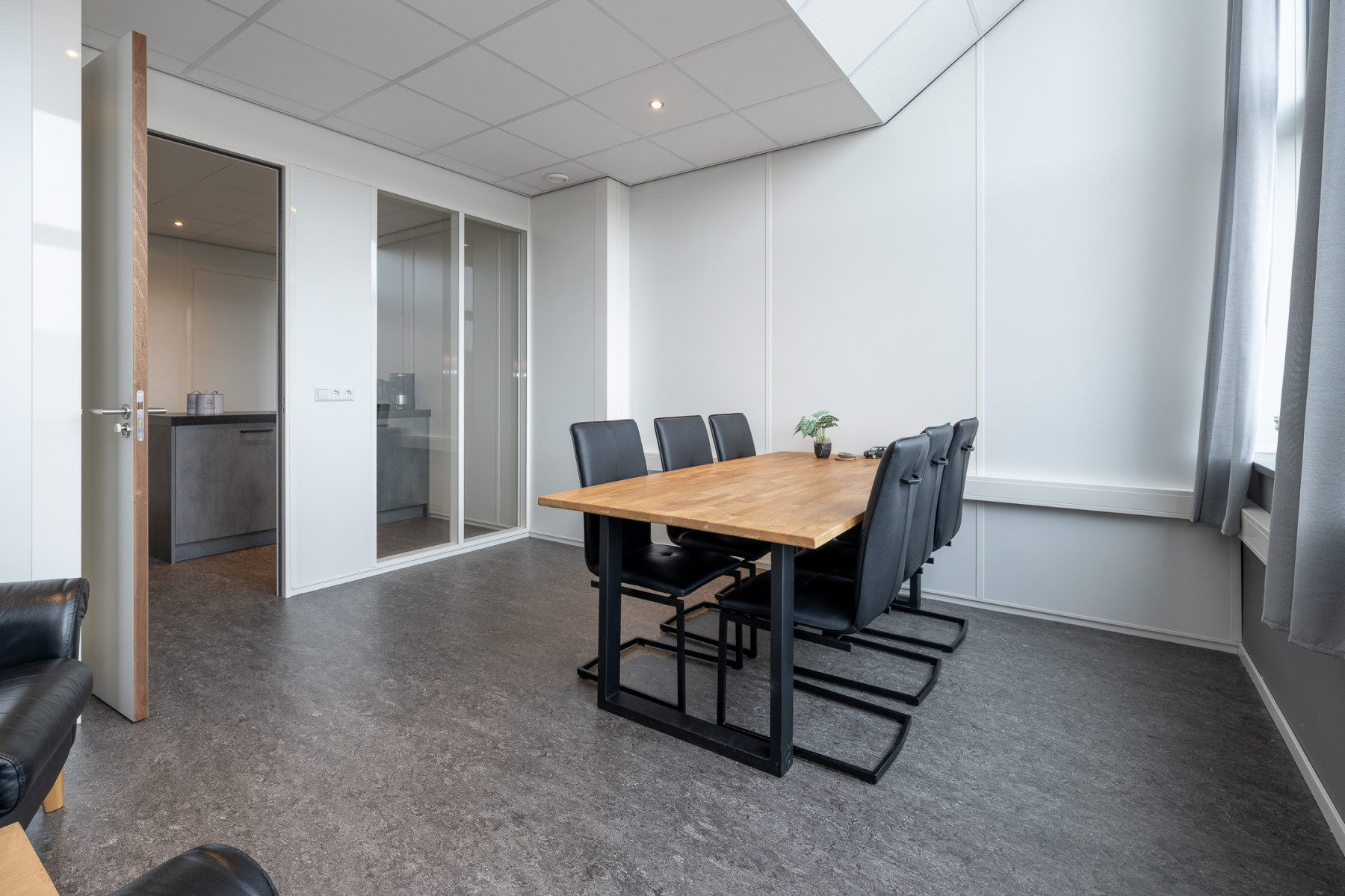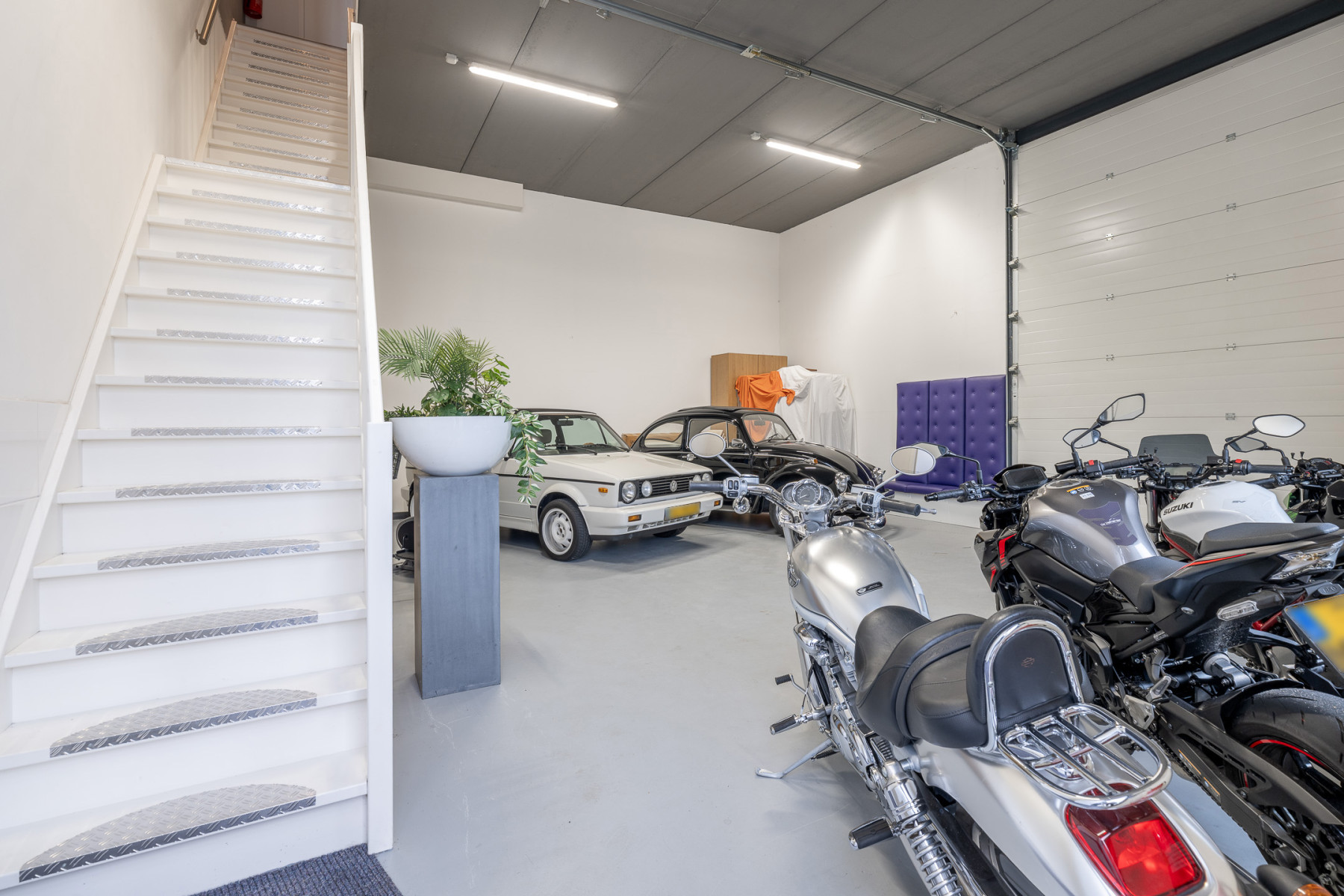De begane grond bestaat uit een ruime bedrijfshal met een vrije hoogte van 4,63 meter. Via de automatische overheaddeur van 4 bij 4 meter is de hal goed toegankelijk voor voertuigen en goederen. Naast de entree bevindt zich de meterkast en de trap naar boven. Op de verdieping zijn twee kantoorruimtes te vinden, waarvan één als spreekkamer. Verder is er een hal met een keukenblok en een toilet-en doucheruimte.