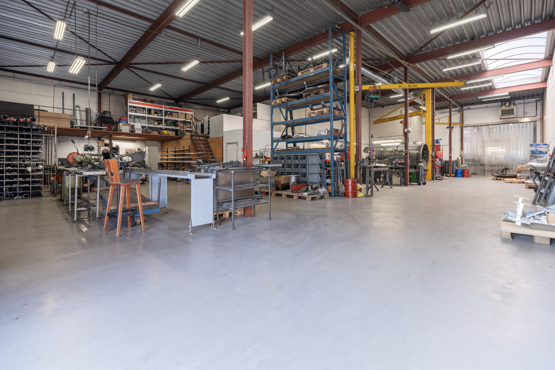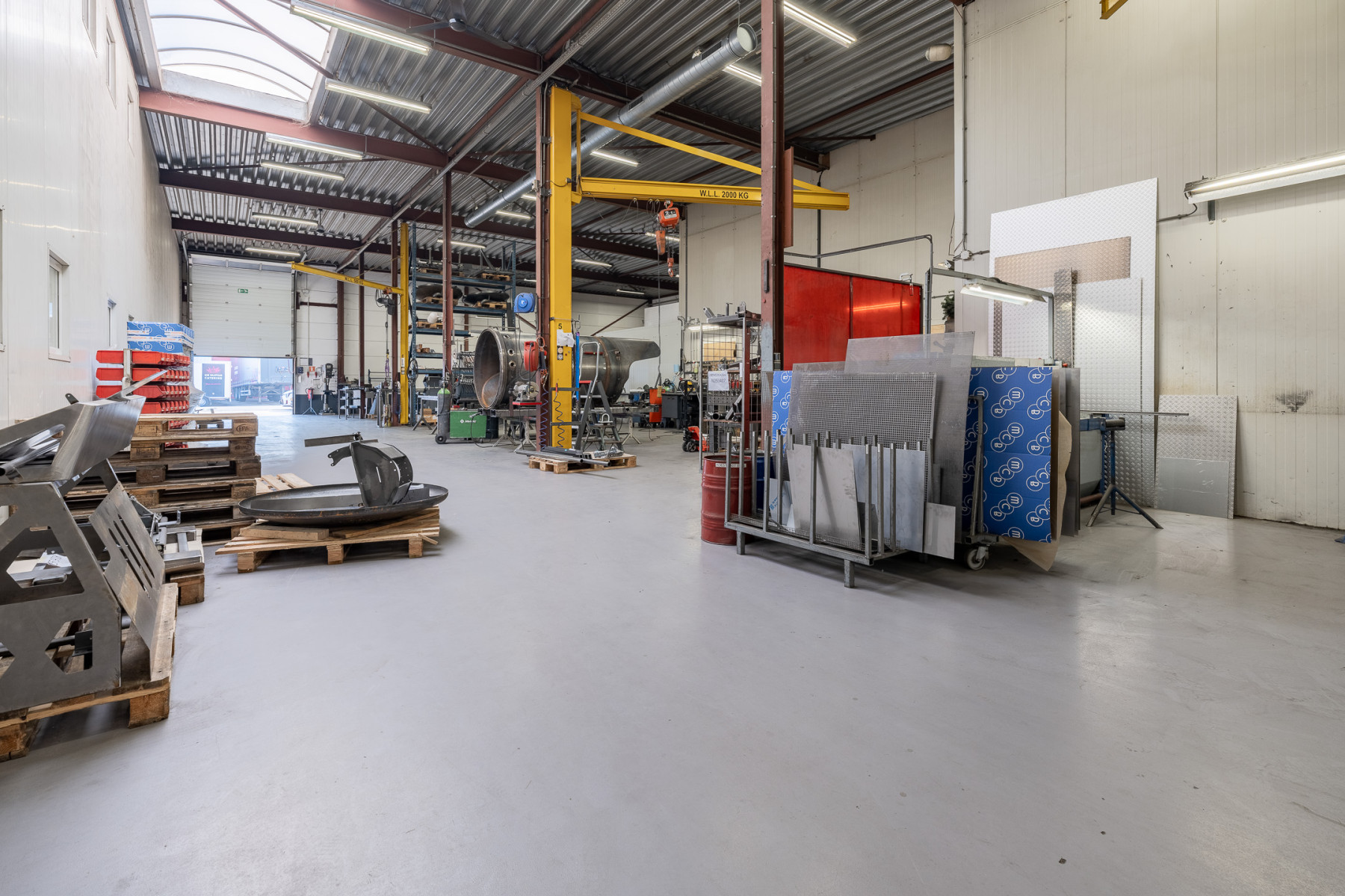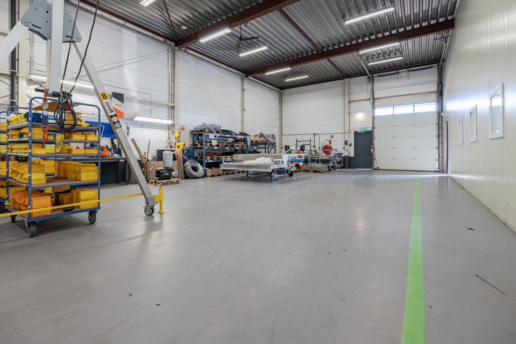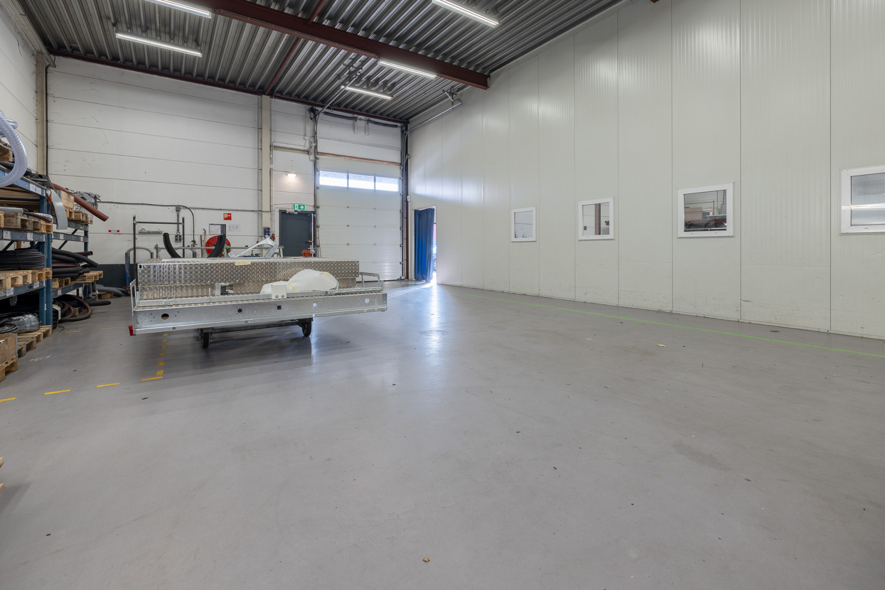 Lichtstraten, overheaddeuren, krachtstroom, betonvloer, toilet en pantry