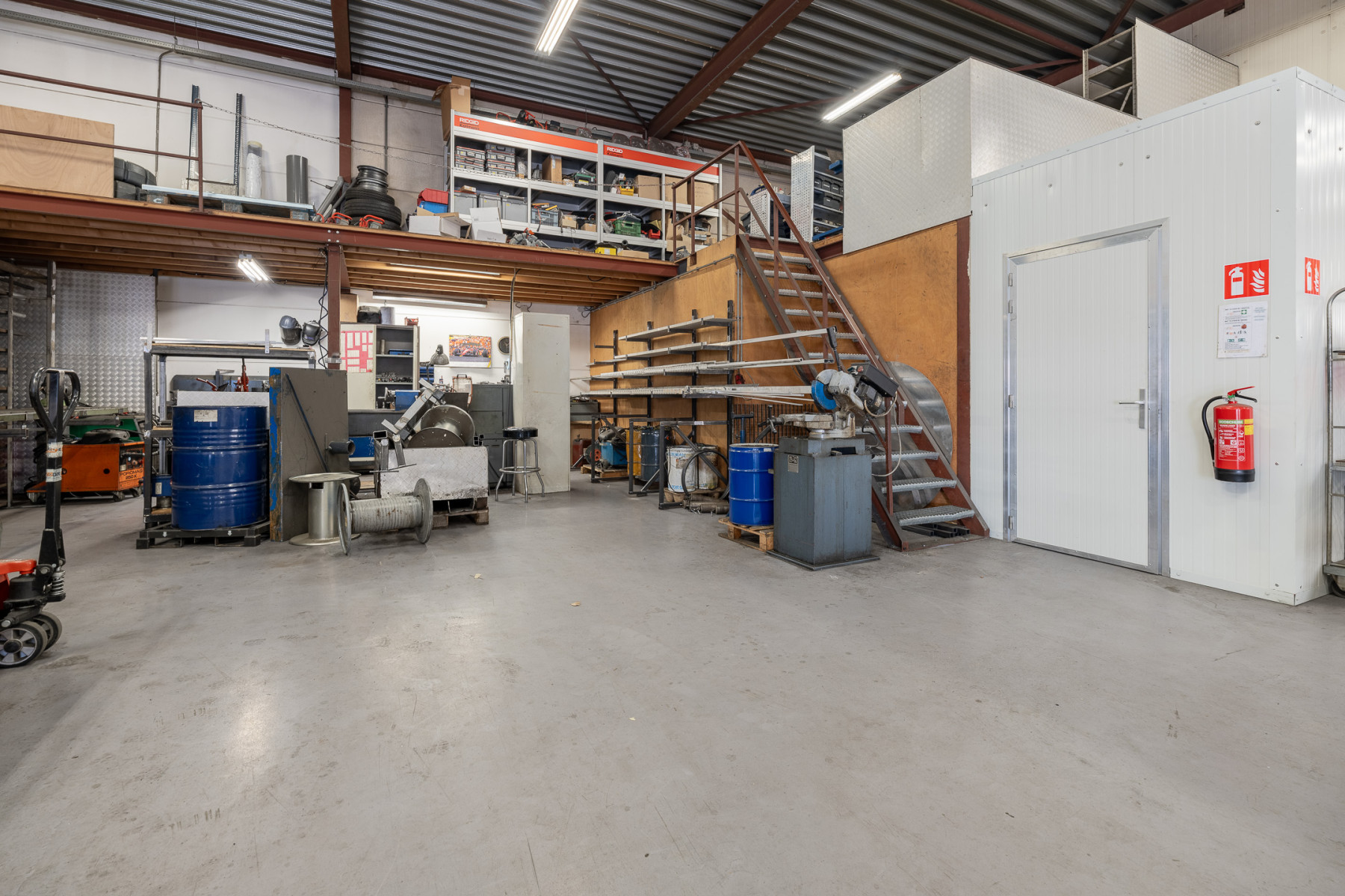 Diverse luchtleidingen blijven achter. De zwenkkranen zijn eventueel ter overname. Het pand is recent voorzien van een Scope 10 keuring en een vernieuwde meterkast.