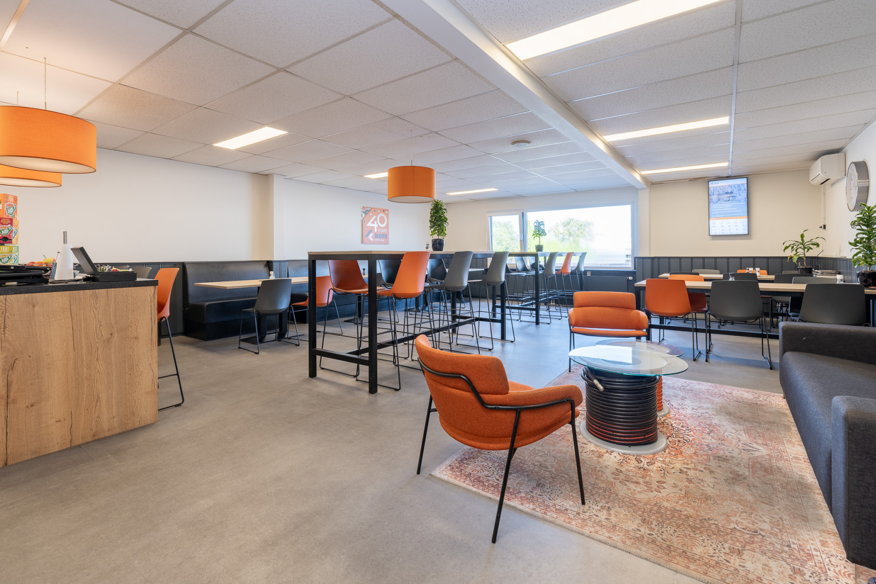 • Kantoorruimte: Draai-/kiepramen, 12 airco units, radiatoren, toiletgroep(en), keuken (begane grond) met vaatwasser, koelkast en Quooker, kantine incl. keuken (verdieping) met vaatwasser, koelkast met koel-/vriescombinatie en Quooker.