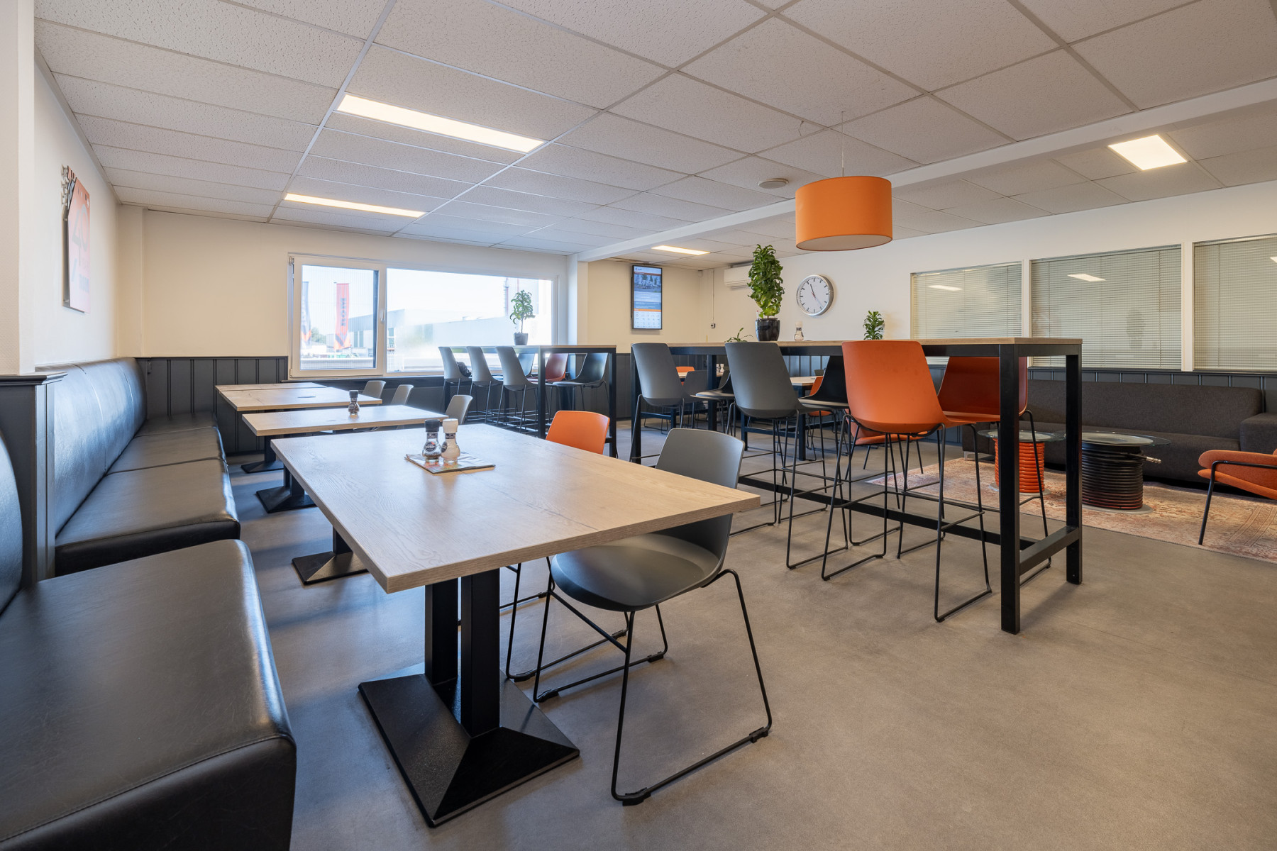 Aan de Harselaarseweg 63 in Barneveld staat dit royale bedrijfscomplex met een totale oppervlakte van circa 2.525 m² te huur. Aan de voorzijde bevindt zich een representatieve showroom met kantoorruimten, samen goed voor ongeveer 470 m². Deze ruimten zijn netjes afgewerkt, voorzien van vergaderkamers, sanitair én energielabel A. Direct aansluitend ligt de bedrijfsruimte van circa 1.885 m², ingericht als werkplaats en voorzien van meerdere overheaddeuren, een polyurethaan gietvloer, lichtstraat en LED-verlichting. Daarnaast beschikt het pand over circa 170 m² kantine en overige voorzieningen die het geheel compleet maken. Dankzij de praktische indeling is er een goede verbinding tussen kantoor en bedrijfsruimte. Rondom het pand is er voldoende buitenruimte aanwezig, met parkeergelegenheid aan de voorzijde en extra laad- en losmogelijkheden via de Handelsweg. Het geheel is keurig onderhouden en biedt een functionele indeling voor diverse bedrijfsactiviteiten. Goede locatie, goede bereikbaarheid én daardoor goed voor uw bedrijf!