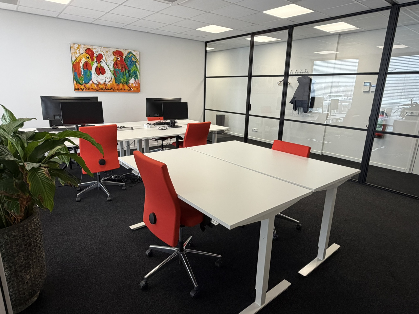 We bieden een moderne kantoorruimte van ca. 100 m² op de tweede verdieping aan in een representatief kantoorgebouw aan de bekende Stationsweg in Barneveld. De kantoorruimte heeft een praktische indeling met een nette vergaderkamer, twee kantoorruimten en een toilet. Dankzij de ramen rondom valt er veel daglicht binnen en dit maakt het prettig werken. Het is net afgewerkt met stalen deuren en strakke vloer. Dankzij de WTW-installatie en airconditioning is het binnenklimaat ook goed geregeld. Het gebouw ligt op een zichtlocatie met uitstekende bereikbaarheid over de weg en met OV, je zit hier binnen circa 3 rijminuten op de A1. Het gehuurde beschikt over 2 eigen parkeerplaatsen, direct bij de ingang. Deze verdieping is netjes afgewerkt en klaar voor gebruik.