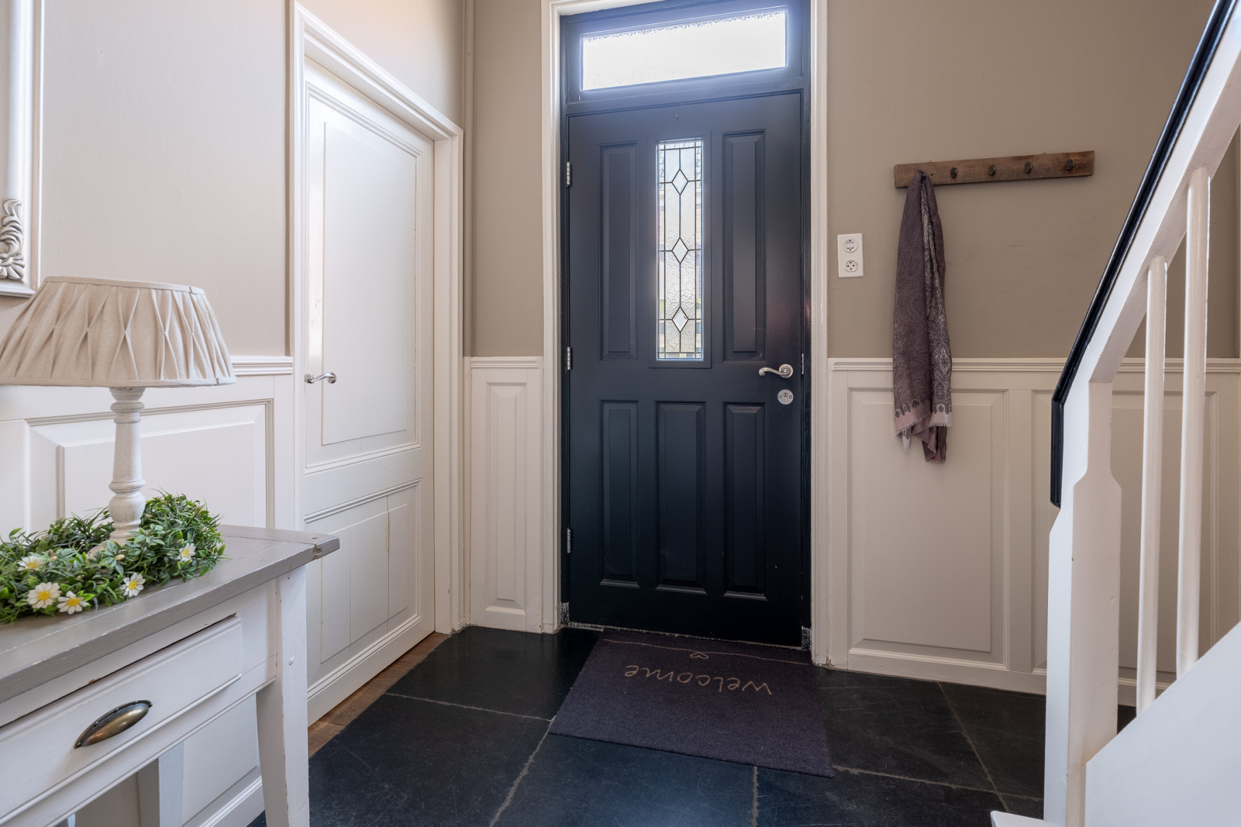 De hal is de eerste kennismaking met de woning en die is meteen goed. In deze woning zijn authentieke jaren '30 details gecombineerd met hedendaagse comfort. In de hal treft u een verzorgde toiletruimte met toilet en de trapopgang naar de eerste verdieping aan. Vanuit de hal krijgt u toegang tot zowel de woonkamer als de woonkeuken.