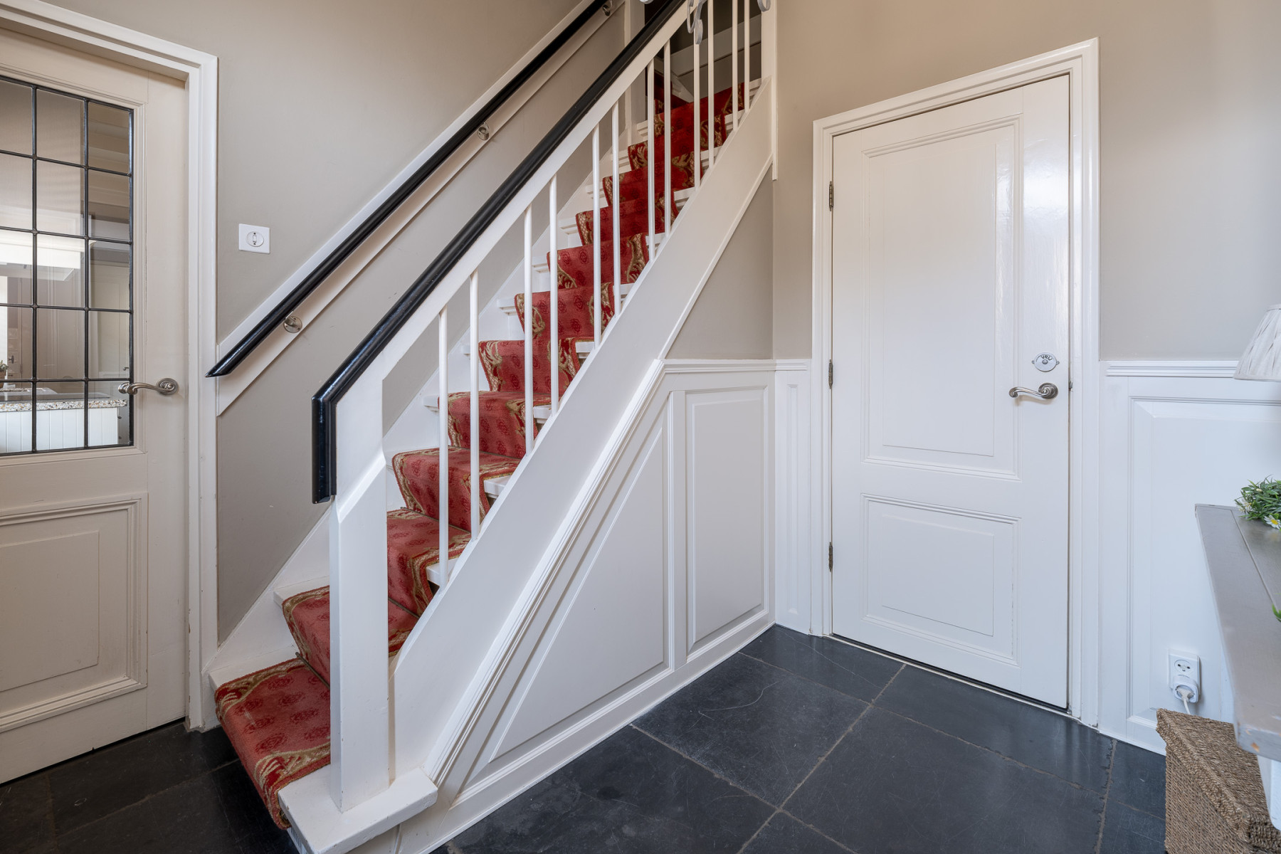 Via de woonkeuken komen we in de achterentree, hier bevindt zich een vast kast. Vanuit hier loopt u door naar de bijkeuken en de slaapkamer op de begane grond.