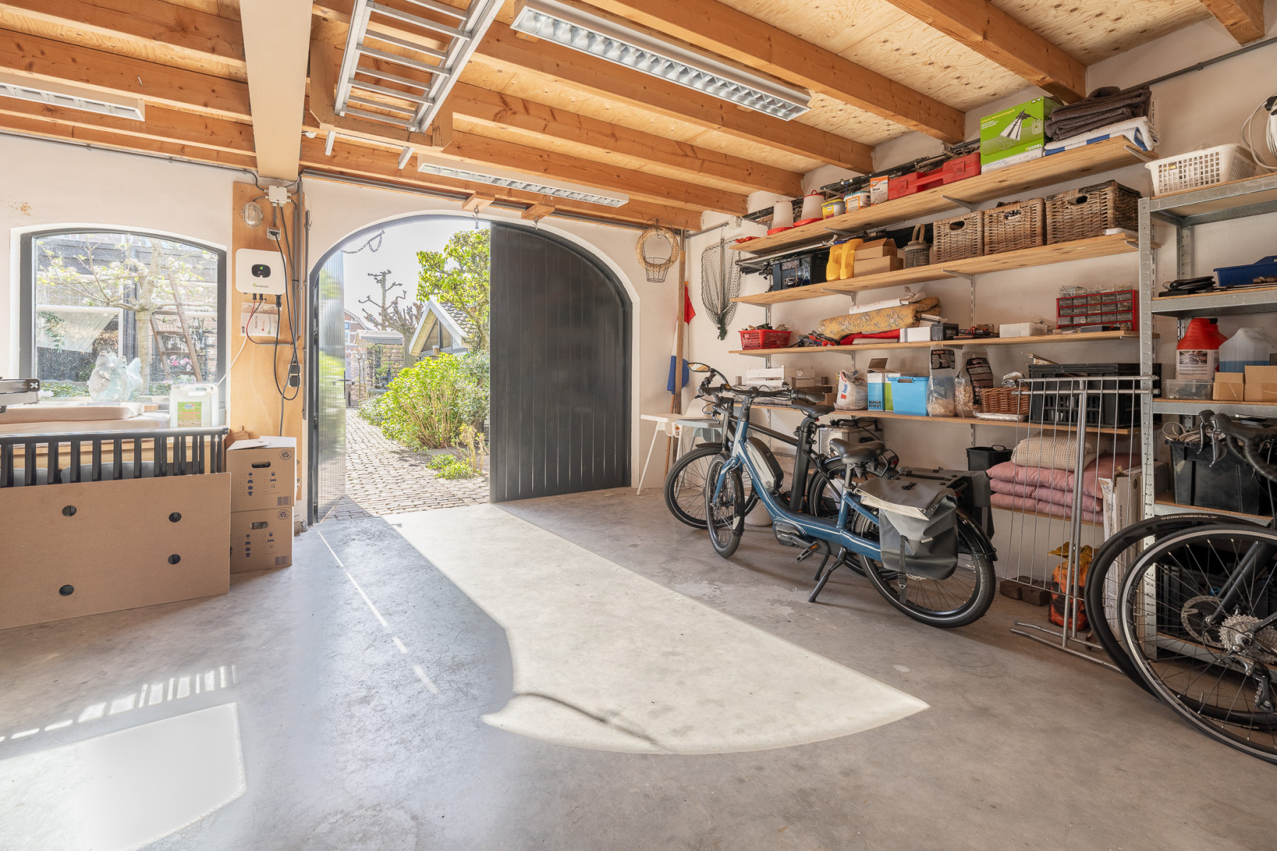 Wanneer u het bijgebouw binnenstapt, krijgt u hier direct ideeën. Een werkruimte, een atelier, mantelzorg, praktijk aan huis of een B&B, het kan hier allemaal. Uiteraard is de ruimte ook als opslag te gebruiken. Via de grote openslaande deuren komt u binnen en de begane grond is ruim en praktisch. Via de trapopgang bereikt u de volwaardige verdieping. En wat ook belangrijk is; de basis is geregeld. Aansluitingen voor water en gas liggen er, de vloerverwarming is ook voorbereid en de gehele ruimte is geïsoleerd. Hier kunt u meteen doorpakken. De gevel van het bijgebouw is afgewerkt met een prachtige snijvoeg en op het dak liggen 13 zonnepanelen. Een ruimte die u helemaal kunt aanpassen aan uw eigen woonwensen.
