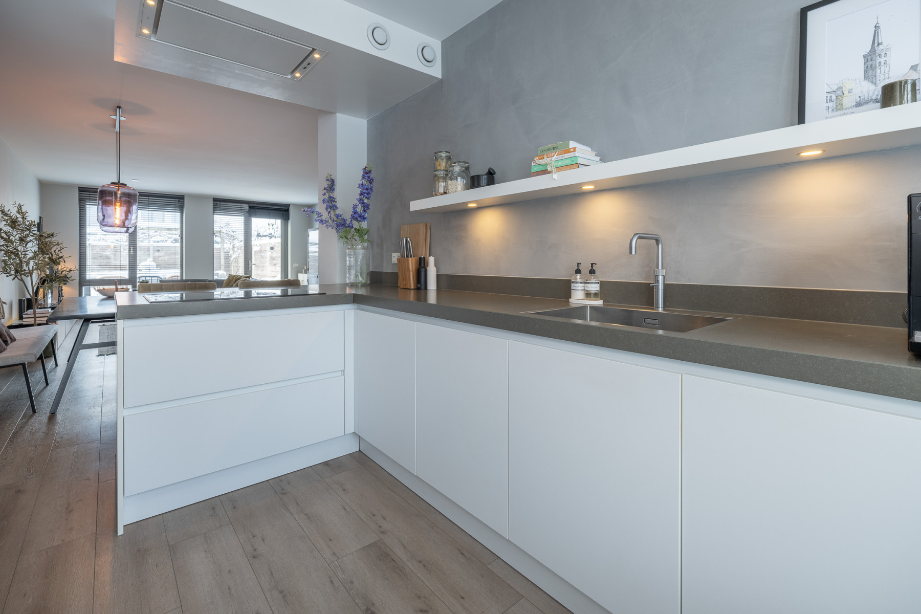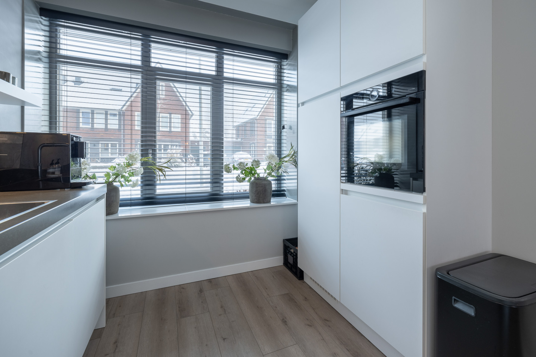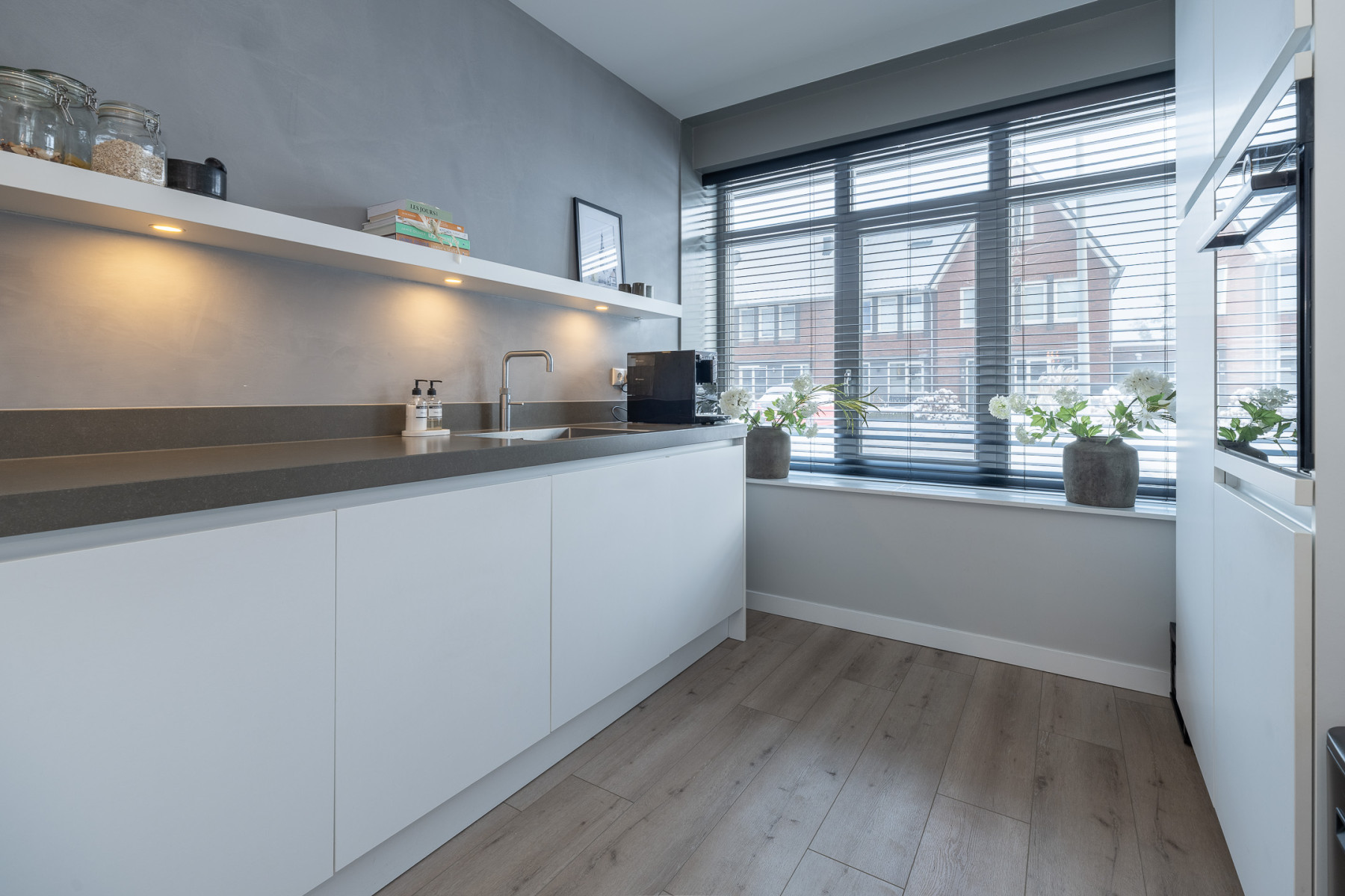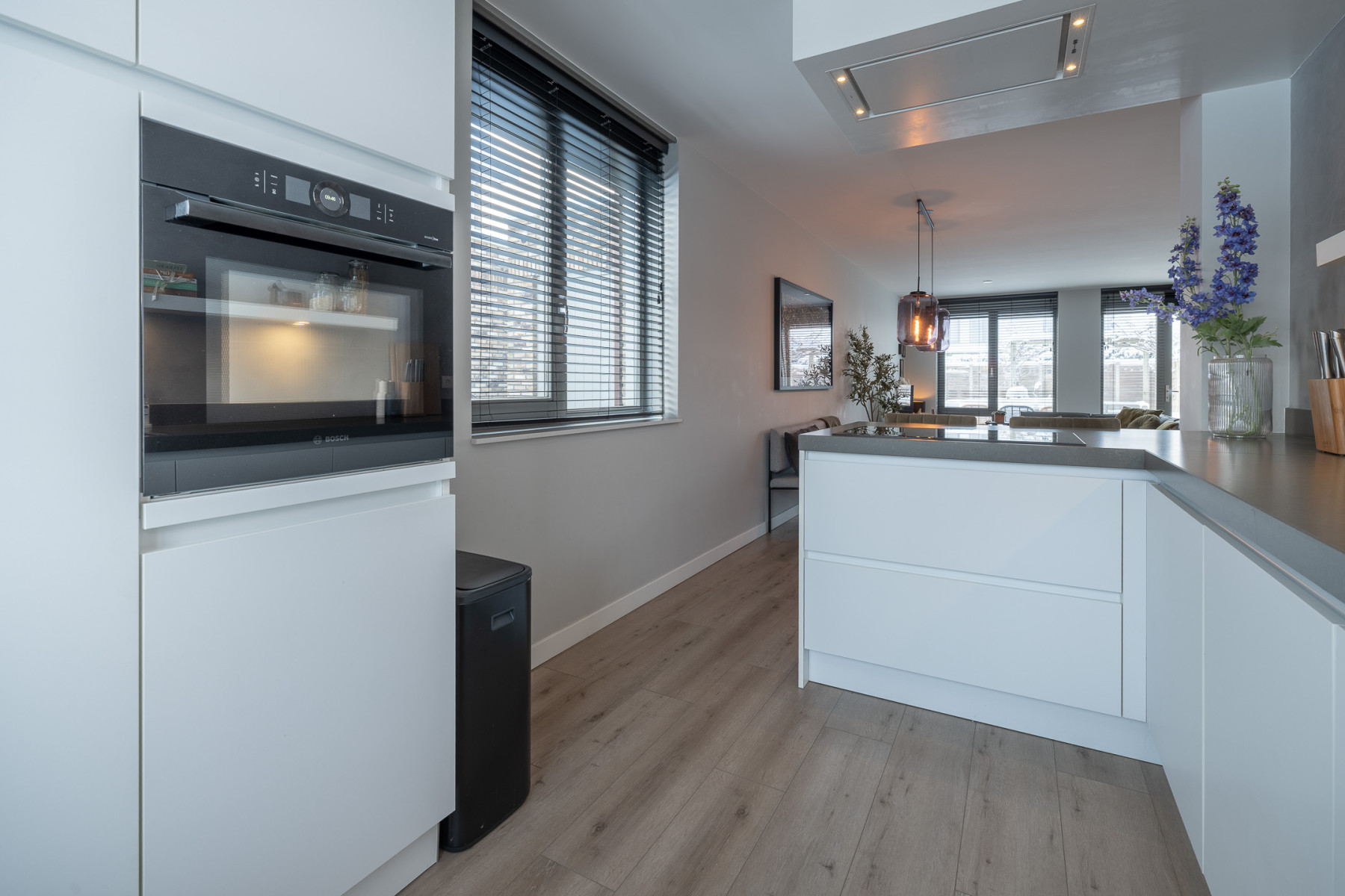 Wat gelijk opvalt als u de keuken inloopt is de gezellige bar die de keuken van de woonkamer scheidt. U schuift gemakkelijk aan voor een snel ontbijt of een kop koffie, maar ook als u in contact wilt blijven met degene die kookt kunt u hier leuk zitten. De keuken heeft een lichte uitstraling en beschikt over inbouwapparatuur zoals een vaatwasser, Quooker, inductiekookplaat en een combi-oven wat de keuken helemaal compleet maakt. Een keuken die u veel te bieden heeft dus!