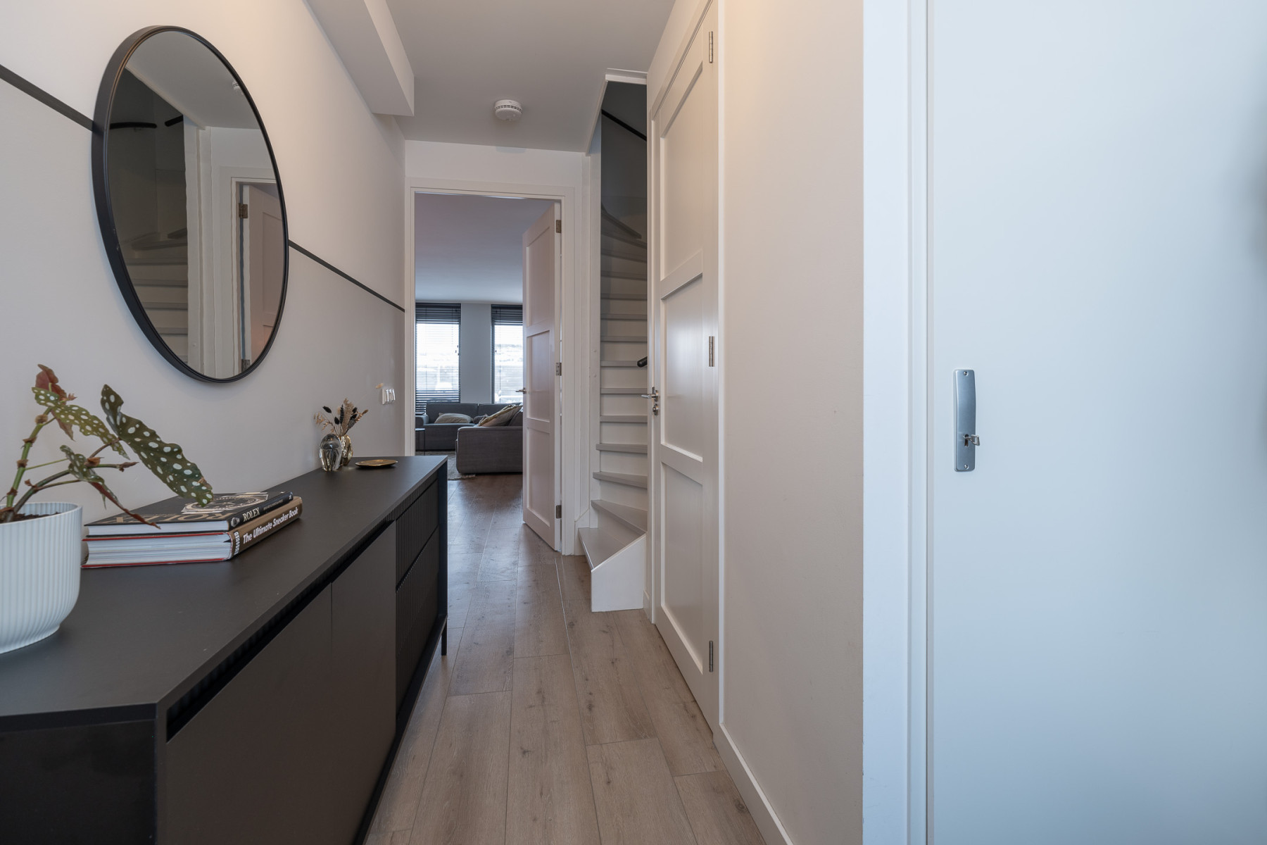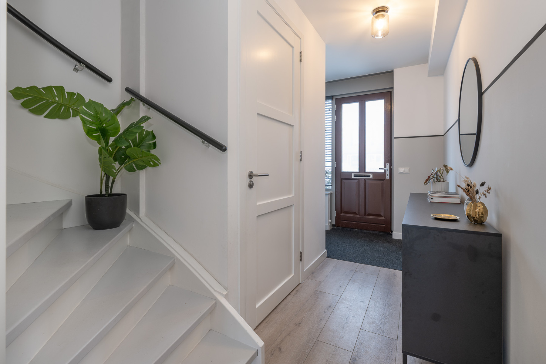 U komt binnen in de hal en het voelt meteen prettig. U vindt hier de meterkast, de trapopgang naar de eerste verdieping, het toilet met een fontein en de toegangsdeur naar de woonkamer.