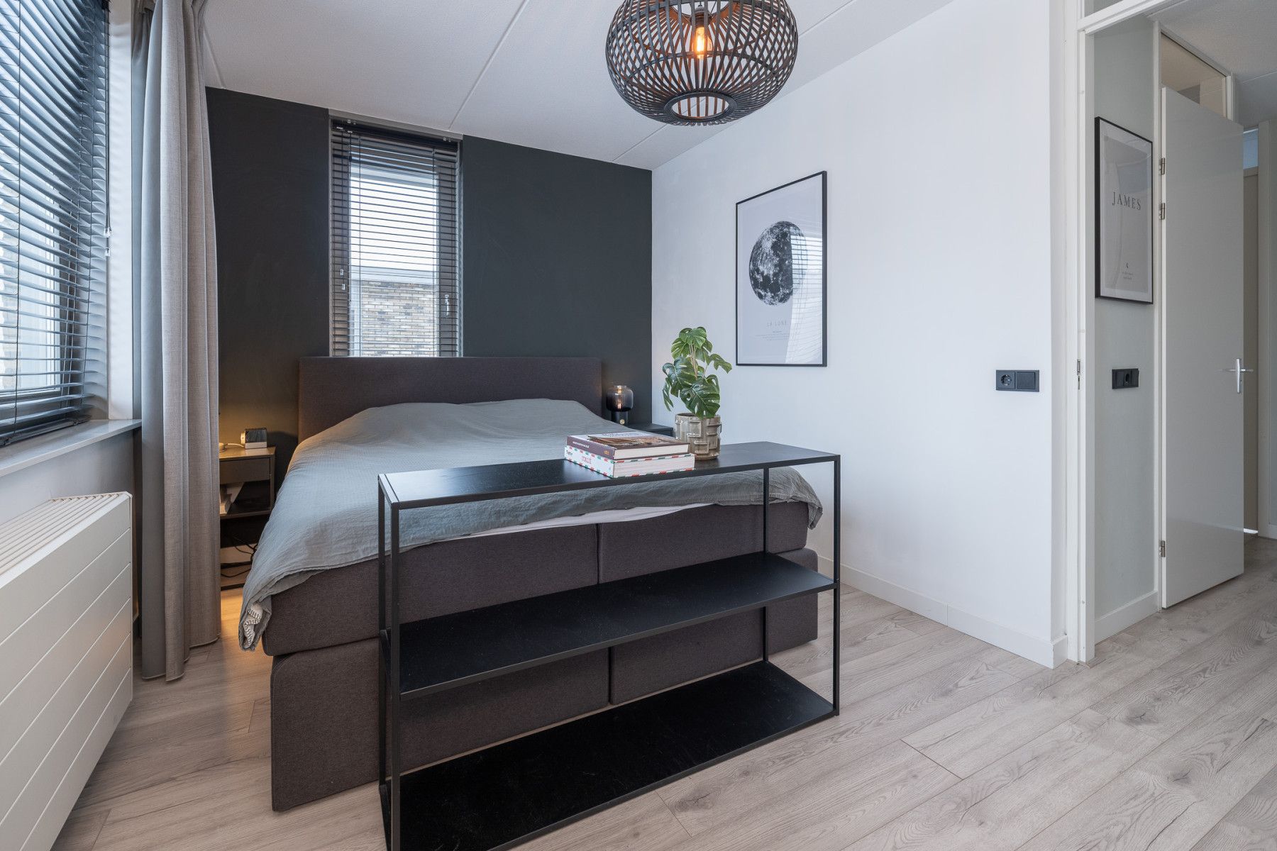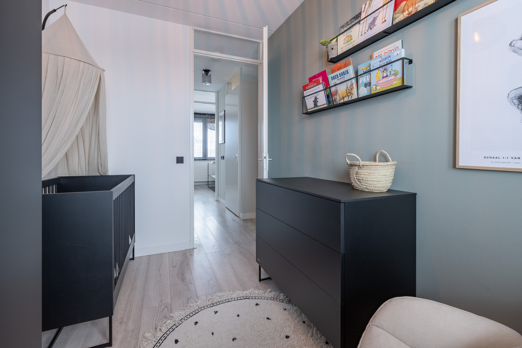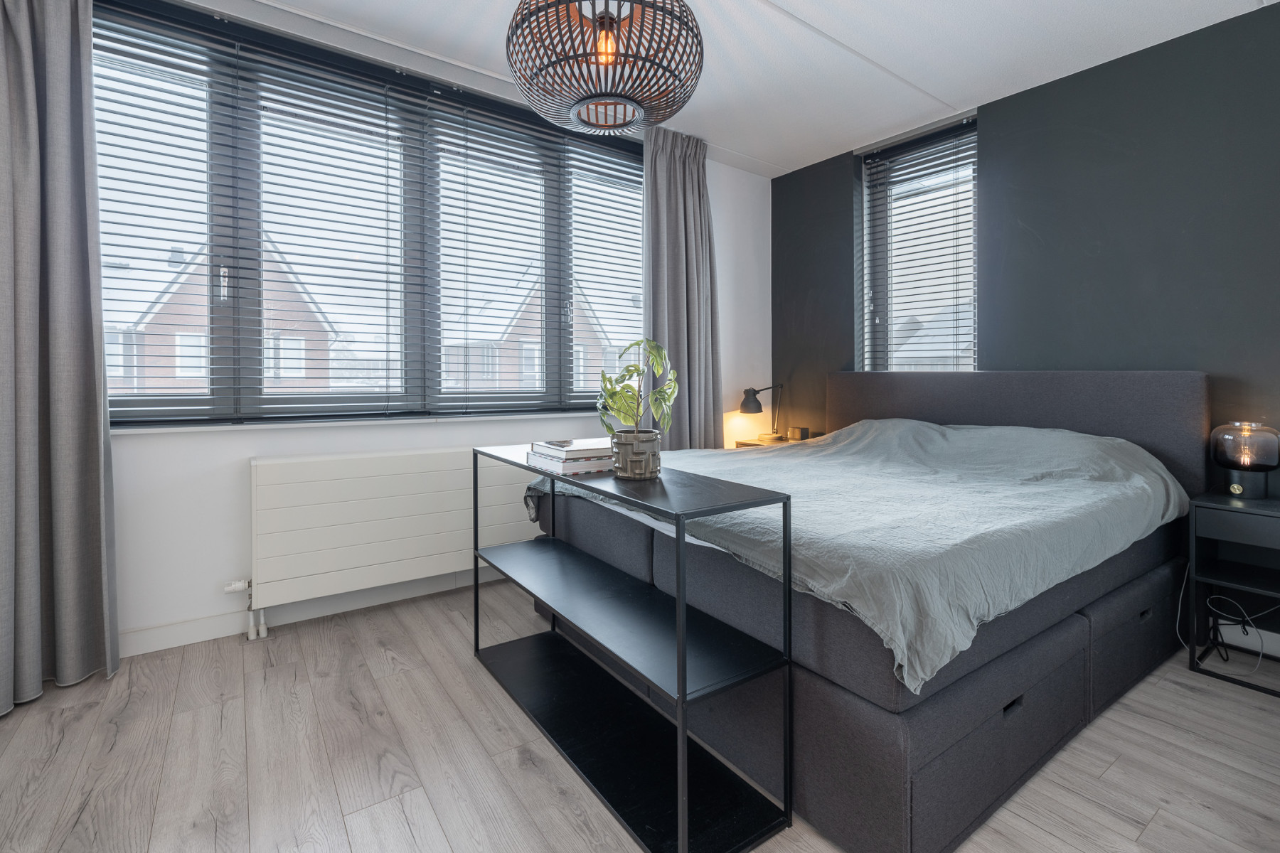 Op de eerste verdieping bevinden zich drie slaapkamers met een fijne maatvoering. De slaapkamers aan de achterzijde van de woning zijn voorzien van elektrische screens op zonne-energie die ervoor zorgen dat u op zonnige dagen geen last heeft van het licht of teveel warmte, daarnaast is bij de trapopgang naar de tweede verdieping een airco geplaatst. Deze houdt de ruimtes op beide verdiepingen goed koel, maar kan ook verwarmen.