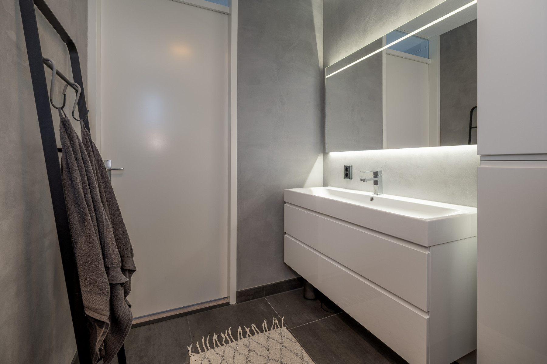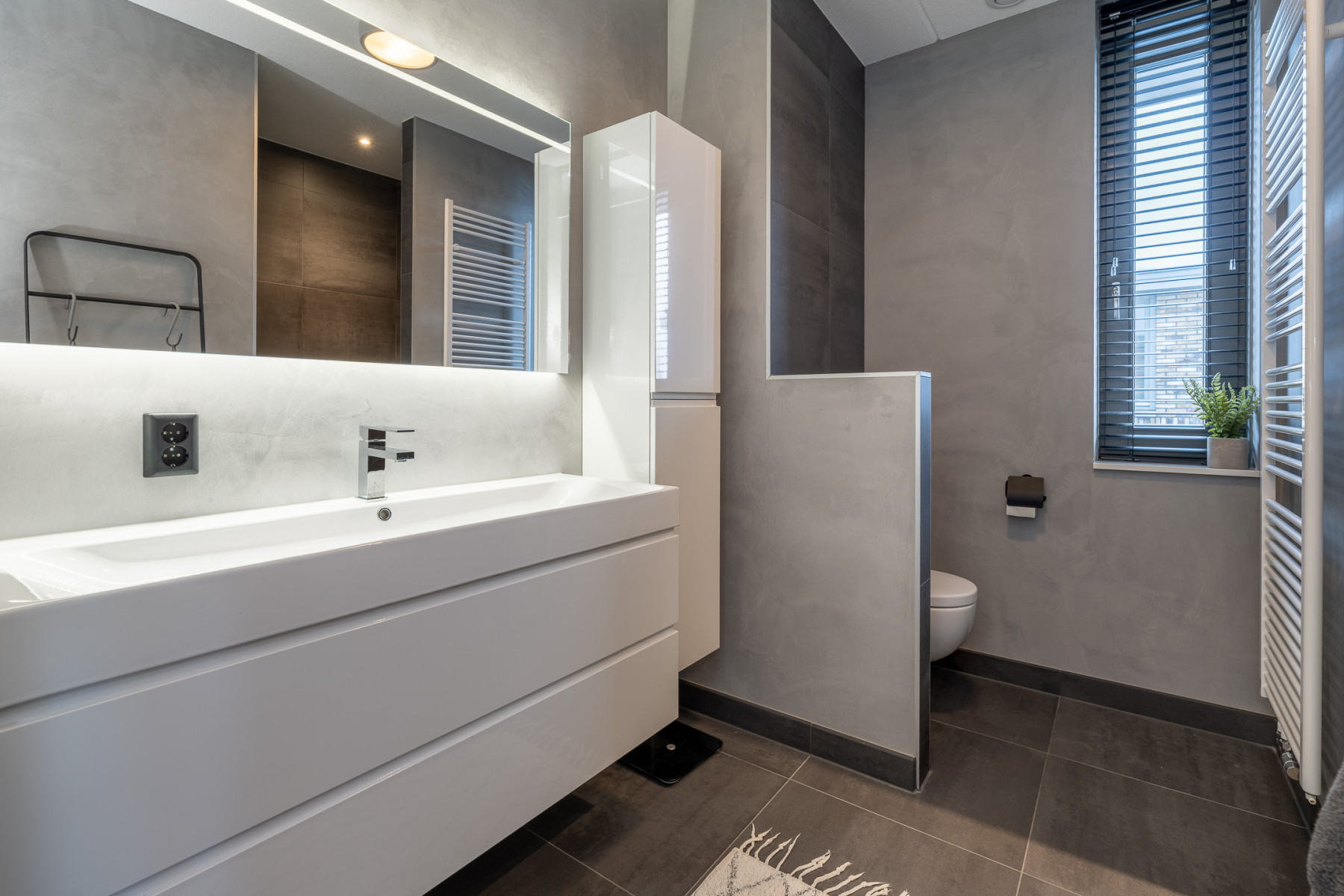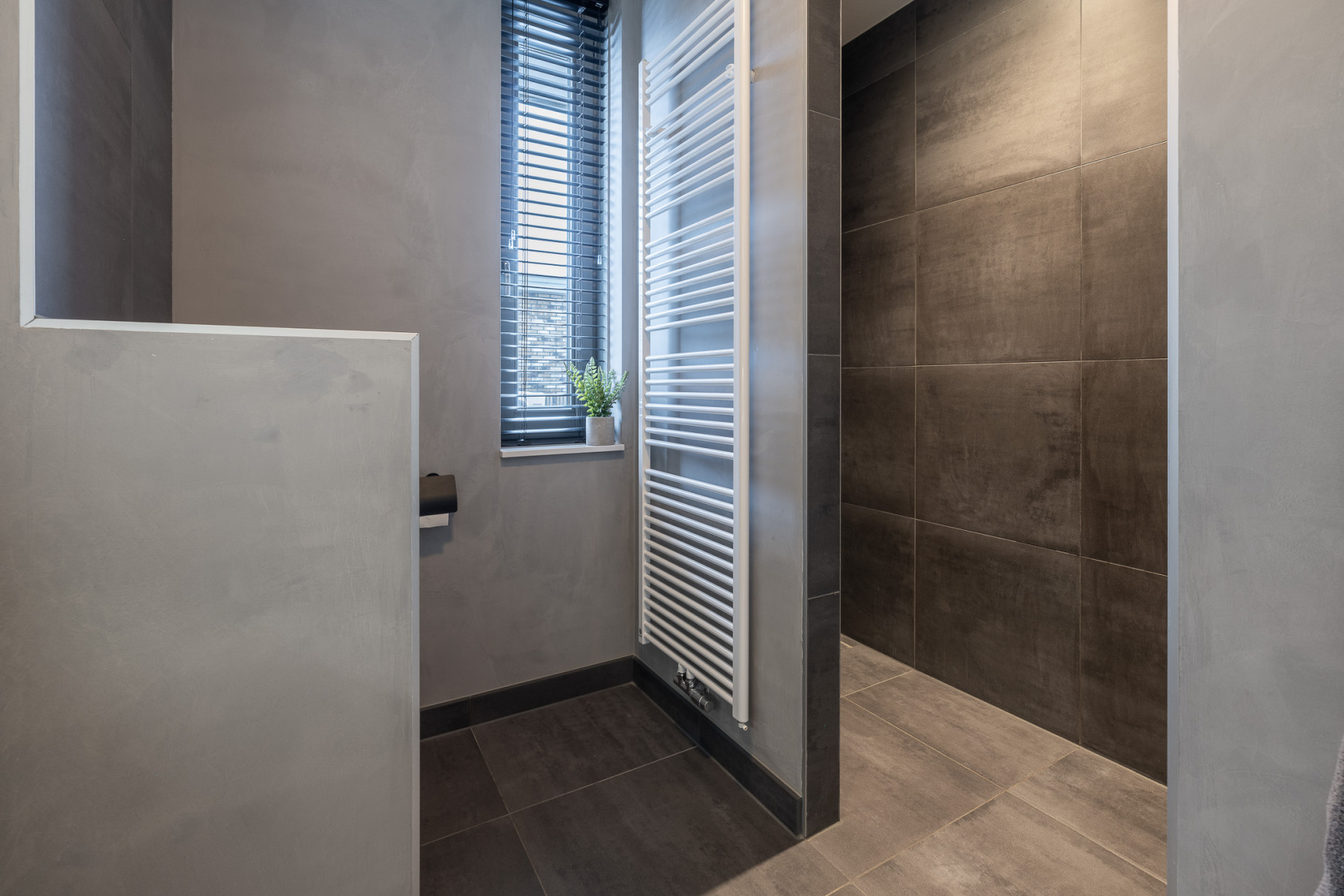 De moderne badkamer heeft een verzorgde uitstraling door de lichte kleuren en de nette afwerking. U profiteert hier van een wastafel met wastafelmeubel, een toilet, een design radiator en een ruime inloopdouche. Een fijne ruimte om te zijn dus!