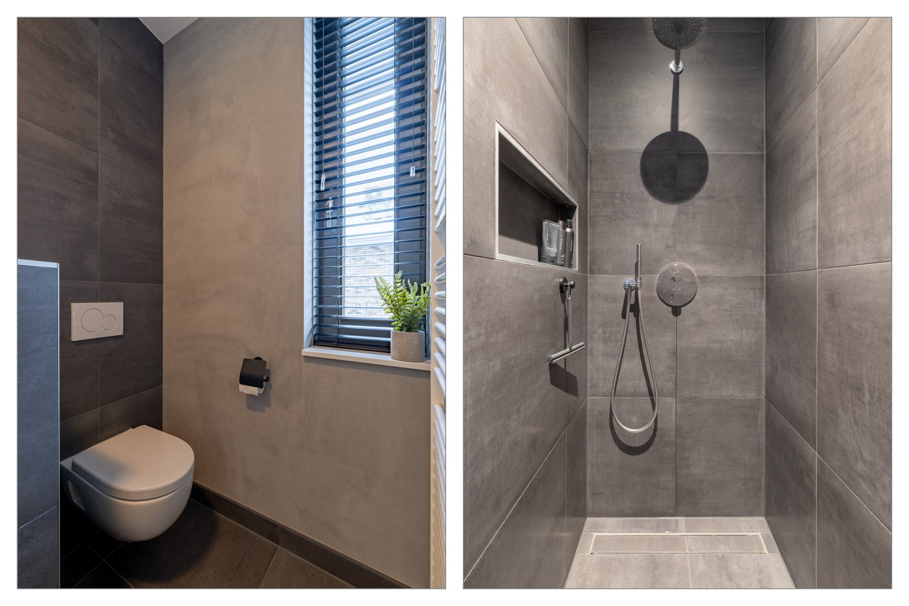 Toilet, wastafel, wastafelmeubel en inloopdouche