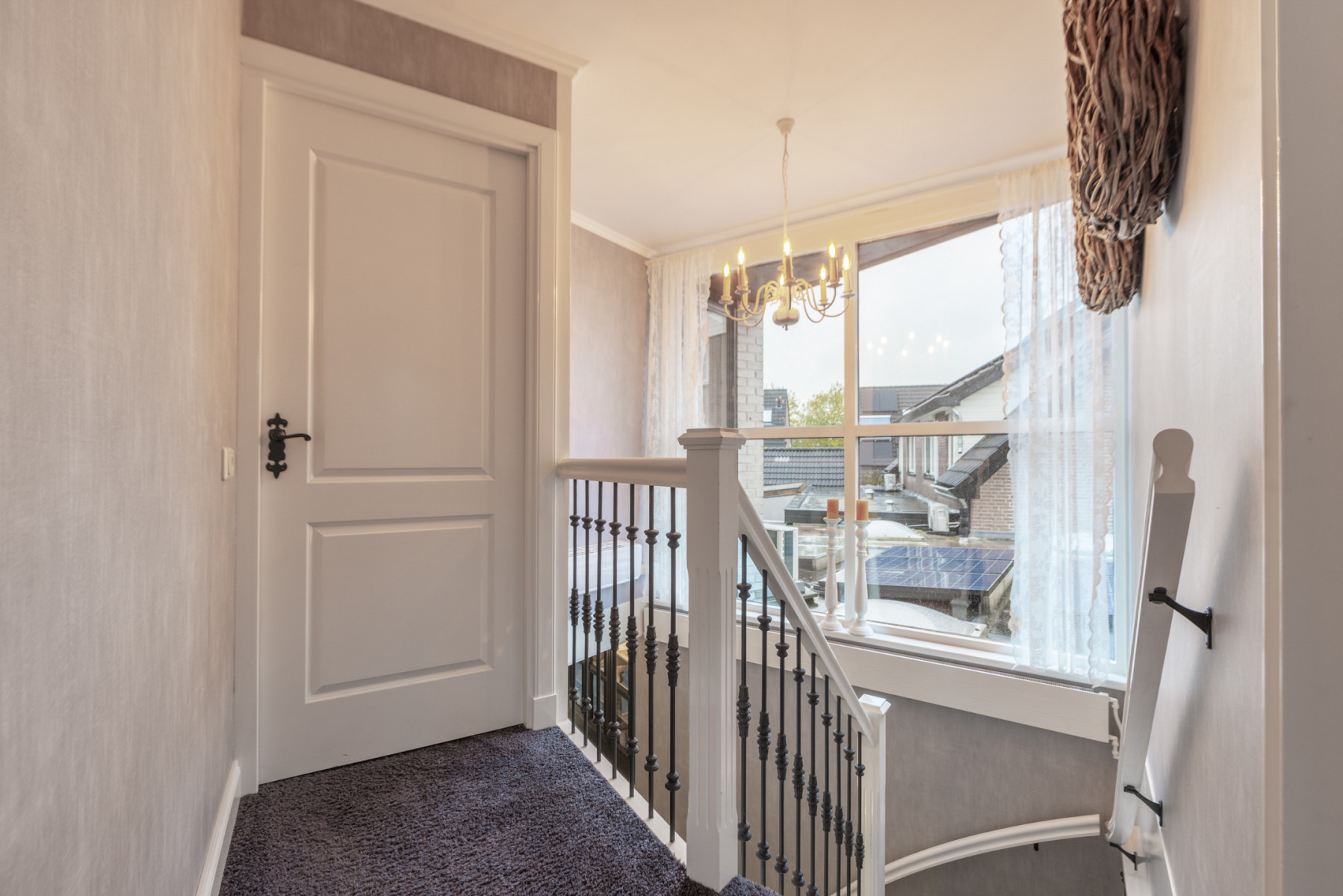 Op de tweede verdieping bevindt zich een ruime overloop met vaste kasten en knieschotten, ideaal voor het opbergen van uw spullen. Daarnaast vindt u hier de witgoedaansluiting, de Cv-ketel en een vlizotrap naar de vliering.