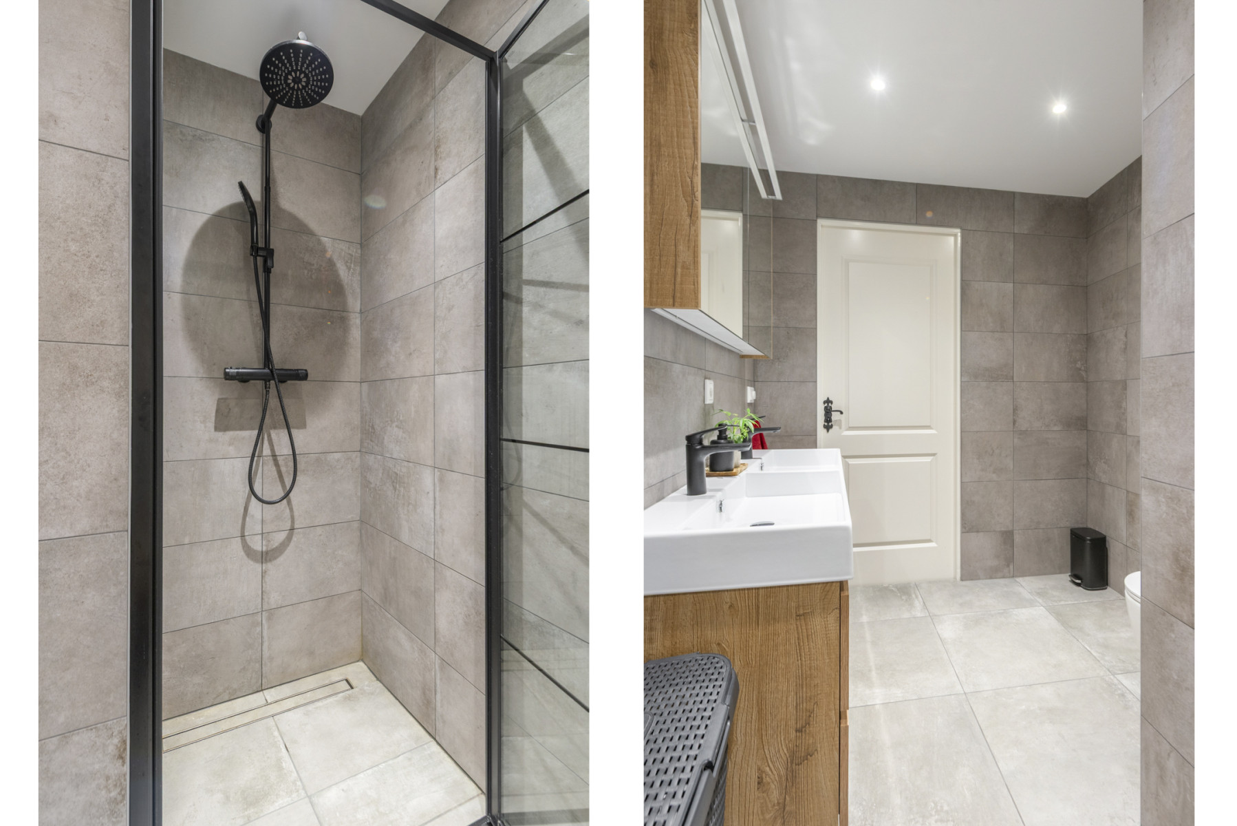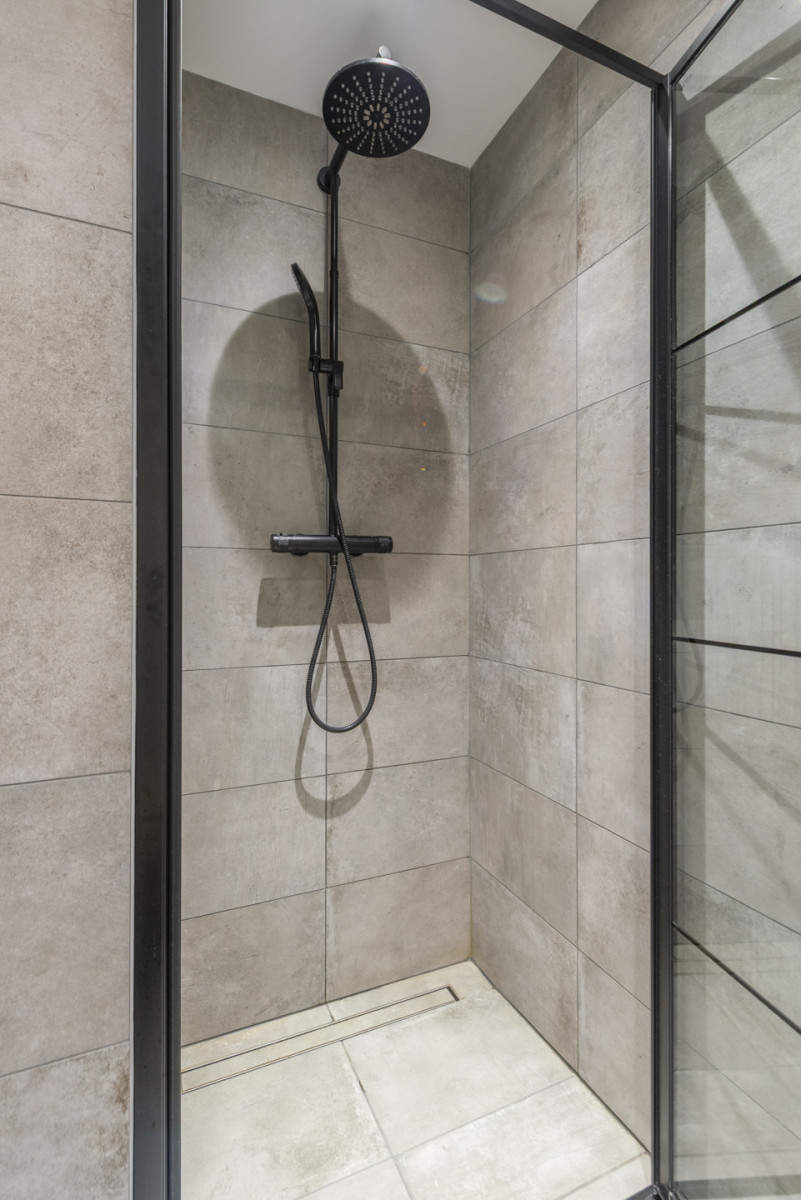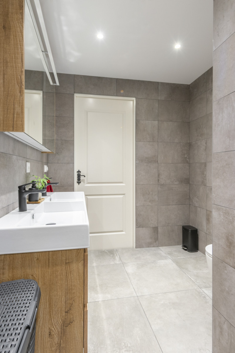 Vanuit zowel de slaapkamer aan de voorzijde als via de toegangsdeur op de overloop heeft u toegang tot de badkamer. De badkamer is modern afgewerkt en is voorzien van een dubbele wastafel met twee kranen, een toilet en een net afgewerkte inloopdouche met regendouche. Daarnaast bevindt zich vloerverwarming in de badkamer, waardoor het altijd behaaglijk aanvoelt.