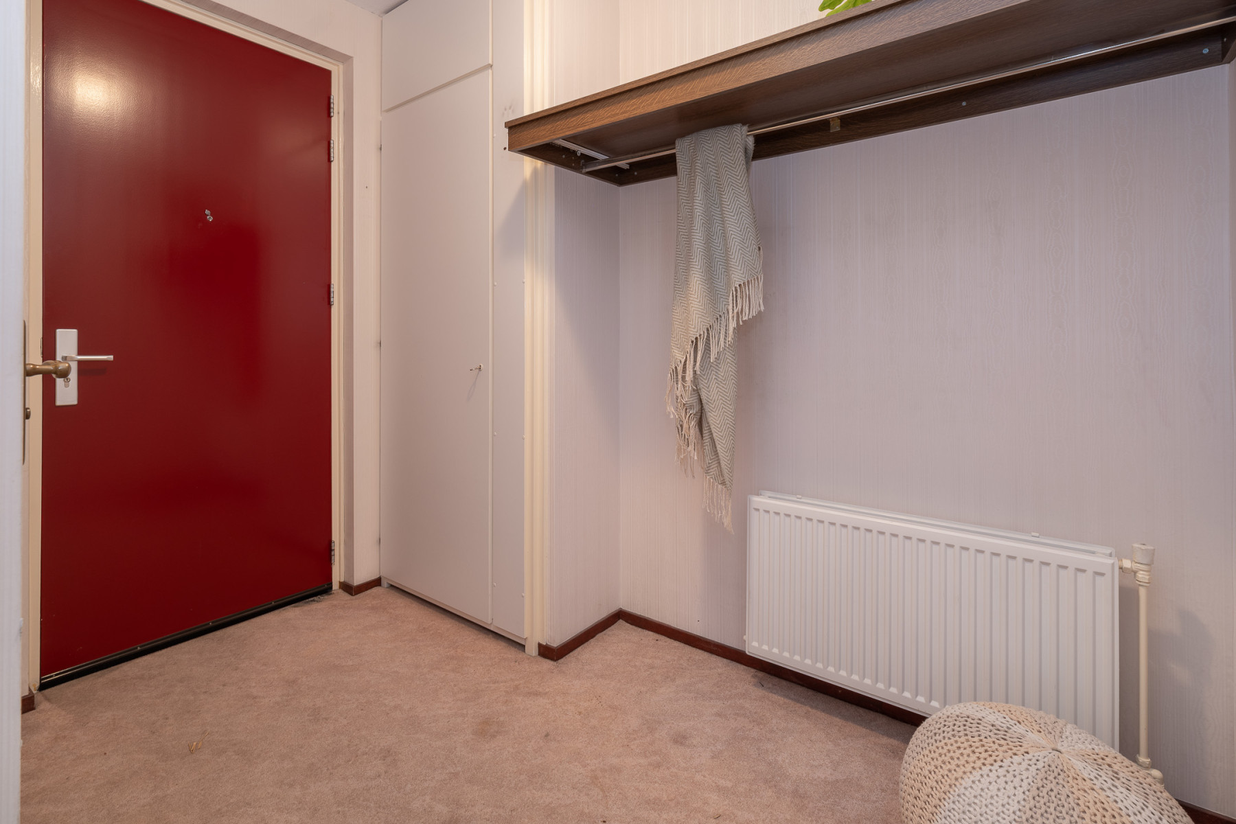 Bij binnenkomst in het appartement betreedt u de hal. Hier bevinden zich een kapstok, de intercom en de meterkast. Vanuit de hal heeft u toegang tot het toilet met fontein, de slaapkamers en een ruime berging met veel opbergruimte en de cv-ketel.