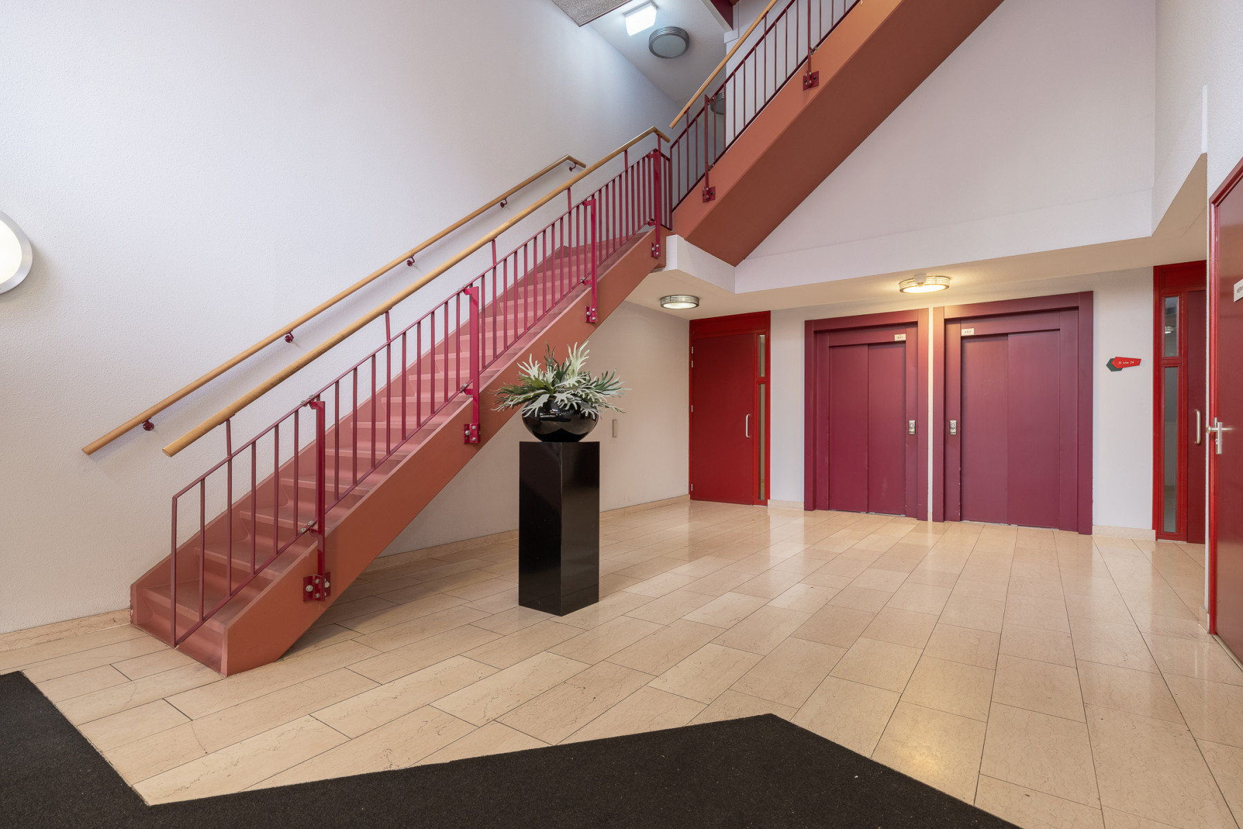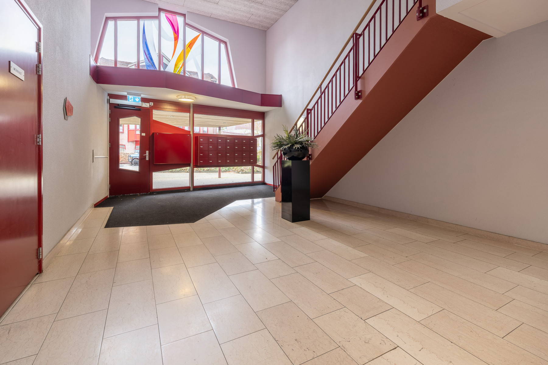 Bij het betreden van het gebouw komt u in een nette, goed onderhouden centrale hal. De centrale hal biedt toegang tot het trappenhuis, de brievenbus, het belpaneel en de liftinstallatie.