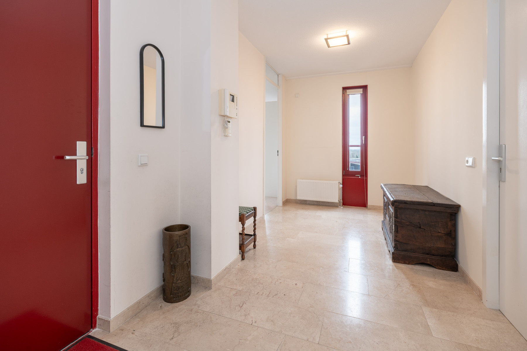 Zodra u de lift uitstapt of van het trappenhuis komt, bent u direct bij het penthouse. Dit penthouse is voorzien van een dubbele voordeur en een dubbele hal. Bij beide hallen verkrijgt u toegang tot twee slaapkamers, een badkamer en tot de enorme leefruimte. Daarnaast vindt u bij beide hallen een meterkast en heeft één van de hallen nog een deels betegeld toilet met een fonteintje.