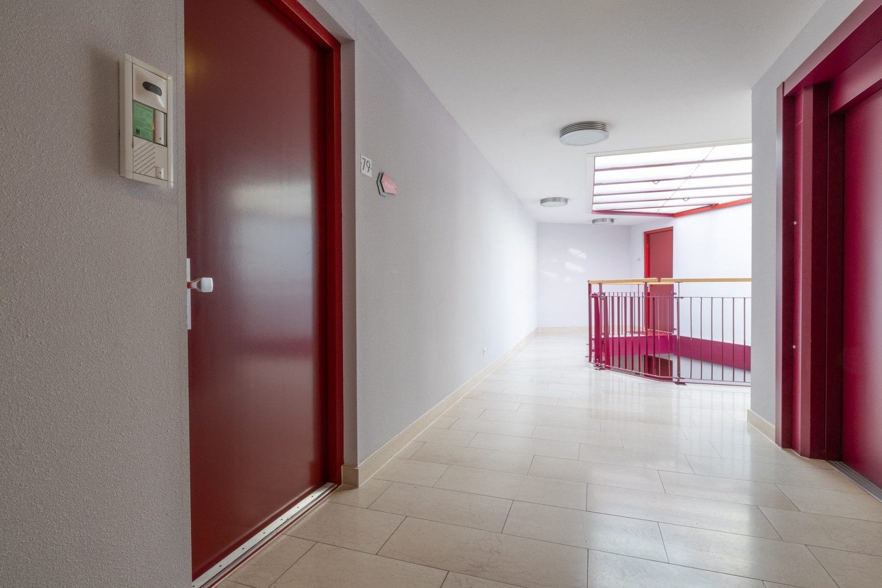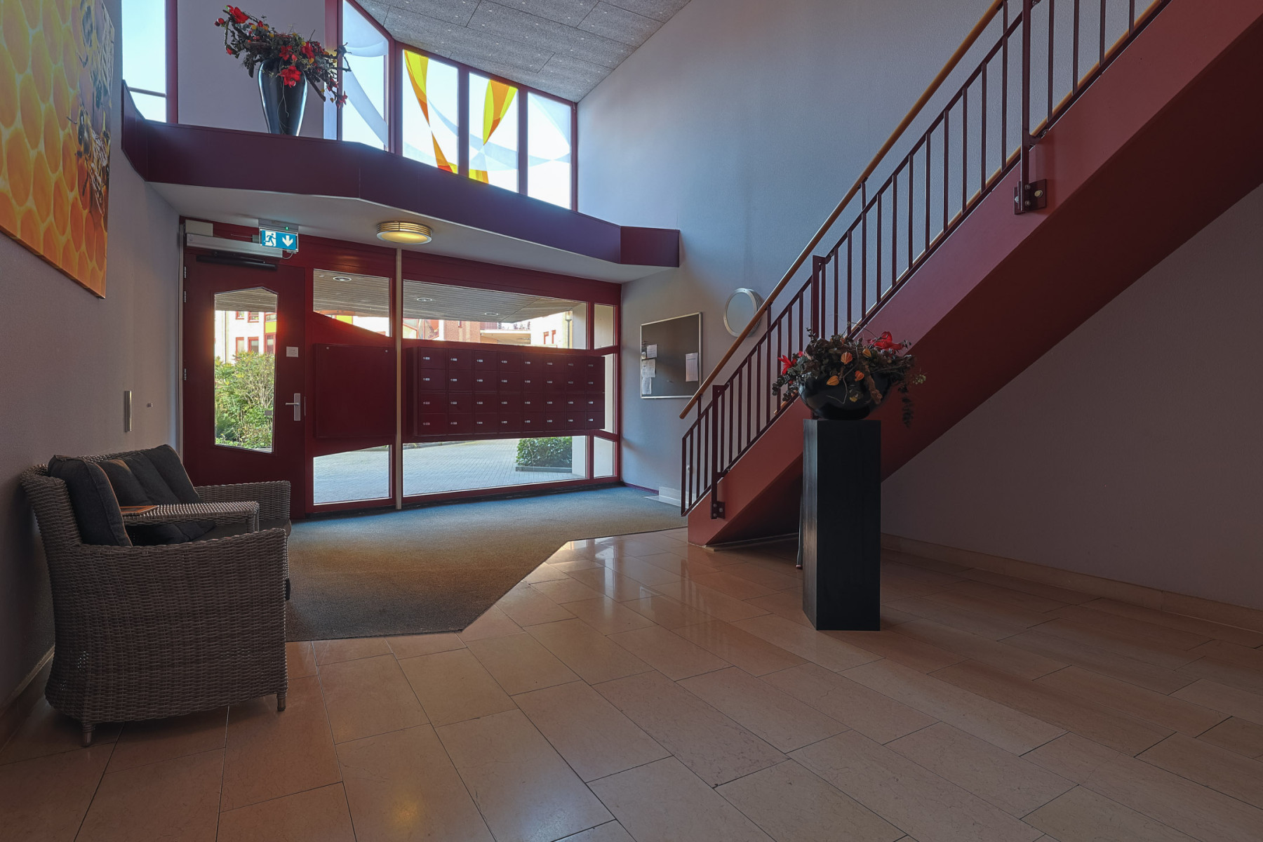 De entree van het appartementencomplex ziet er verzorgd uit en beschikt over een intercominstallatie, de brievenbussen, de liftinstallatie en het trappenhuis.