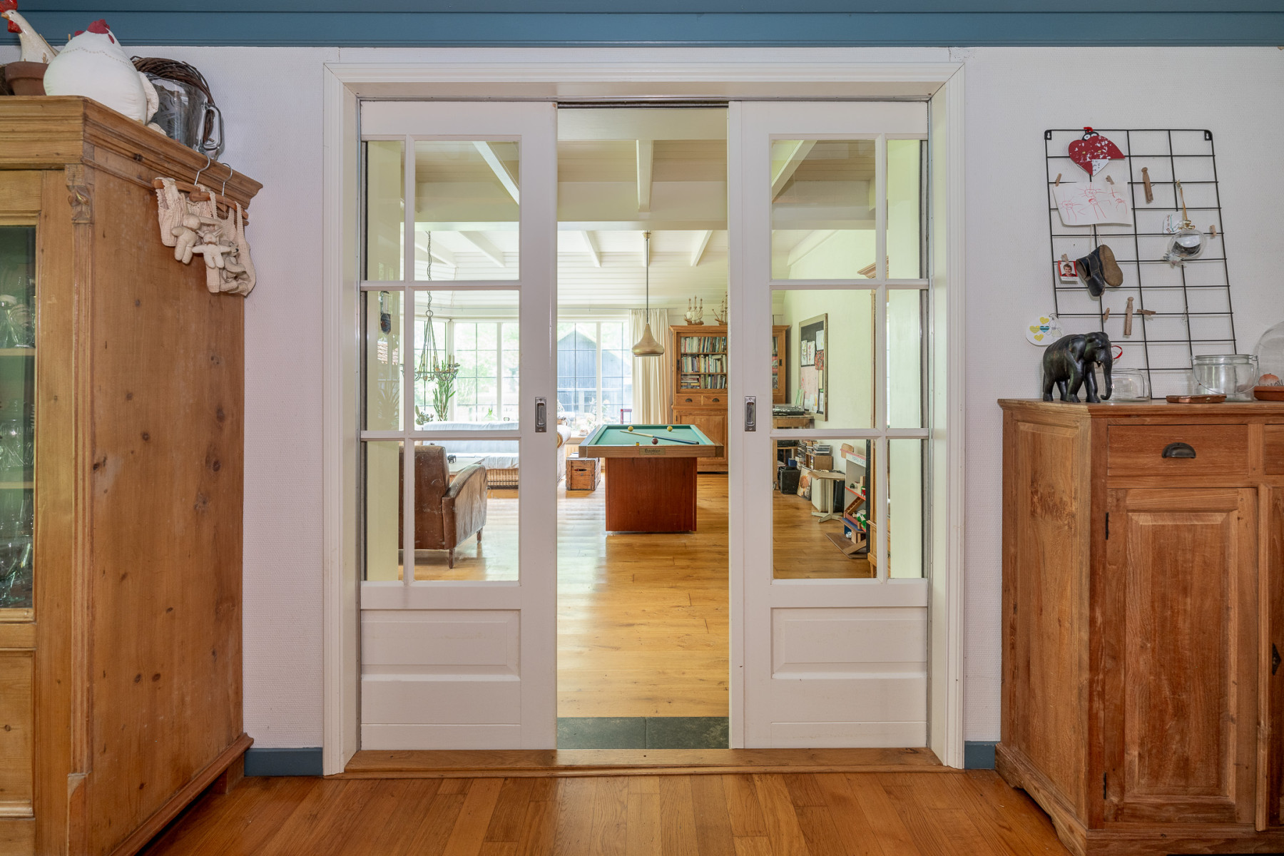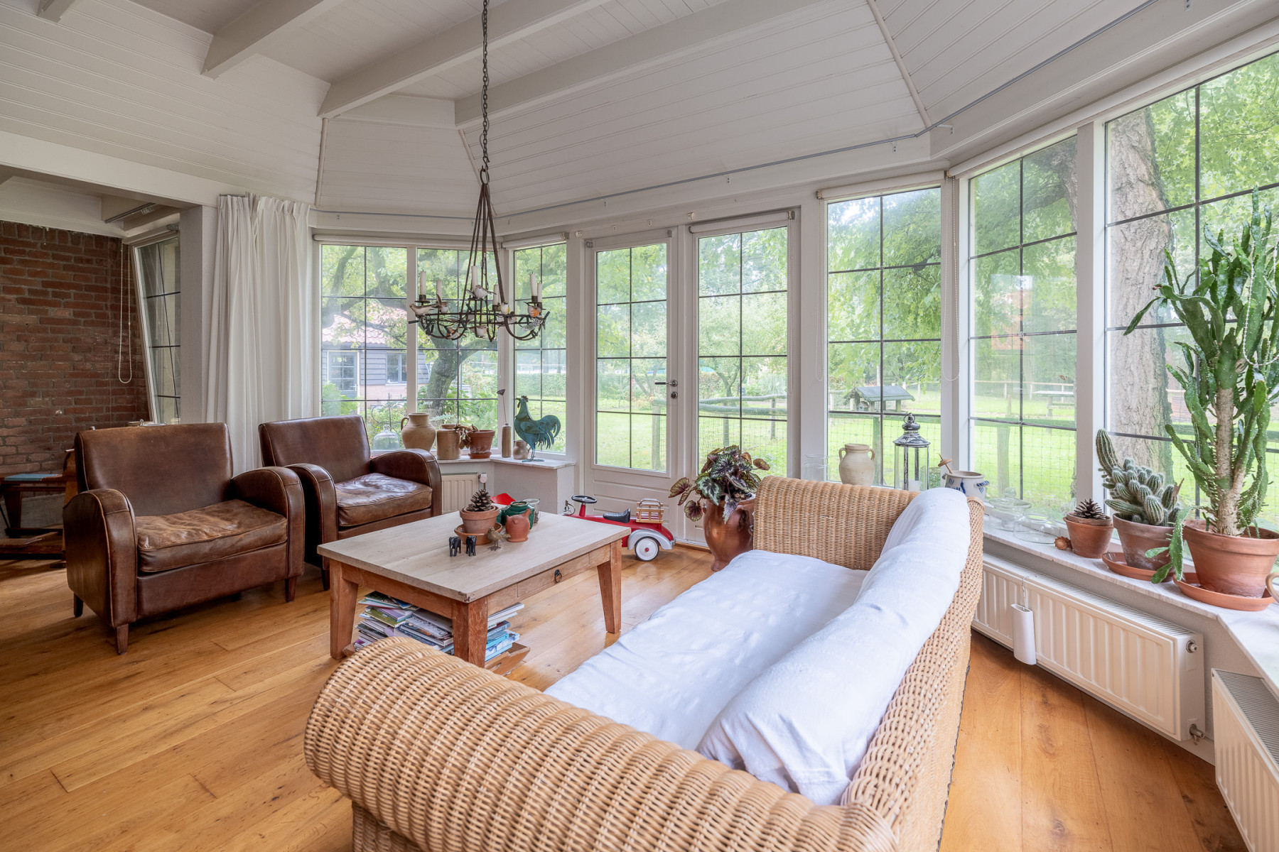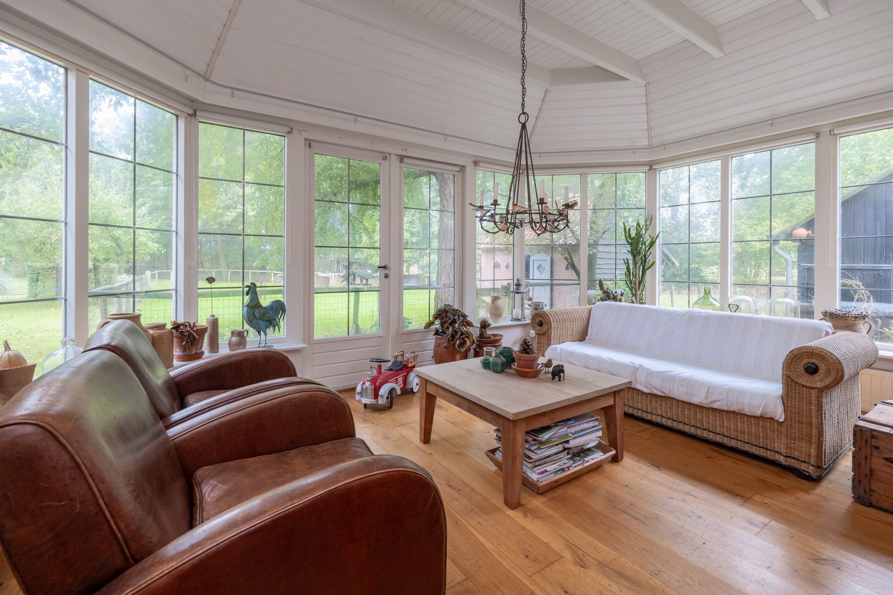 De zijkamer is nog een extra ruimte waar u samen met familie, vrienden of uw gezin kunt samenkomen! Door de vele ramen geniet u hier de hele dag door van een prachtig uitzicht op de tuin. De ruimte is afgewerkt met een houten balkenplafond, lichte wanden en houten vloer. Er is genoeg ruimte voor een comfortabele zithoek. Door de openslaande deuren loopt u zo naar buiten, waardoor binnen en buiten naadloos in elkaar overlopen.