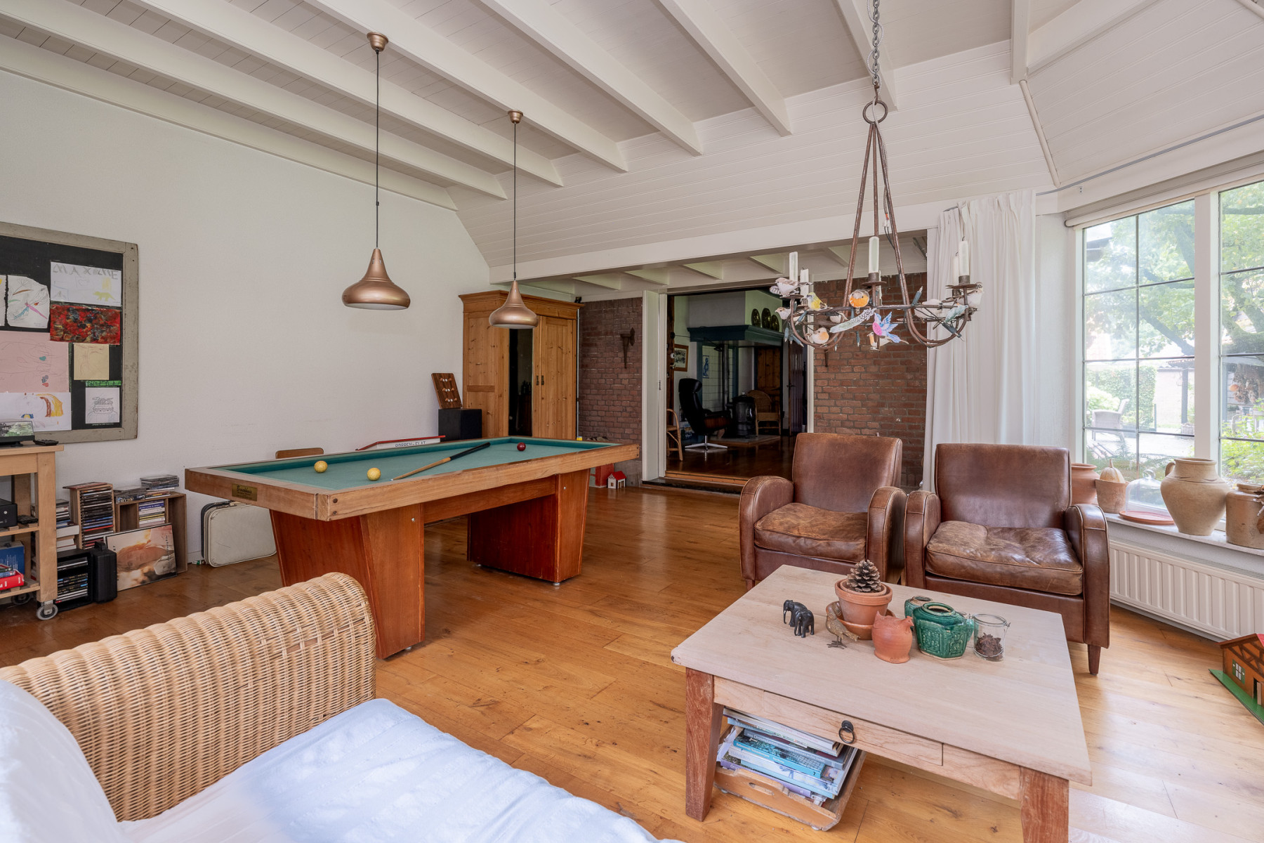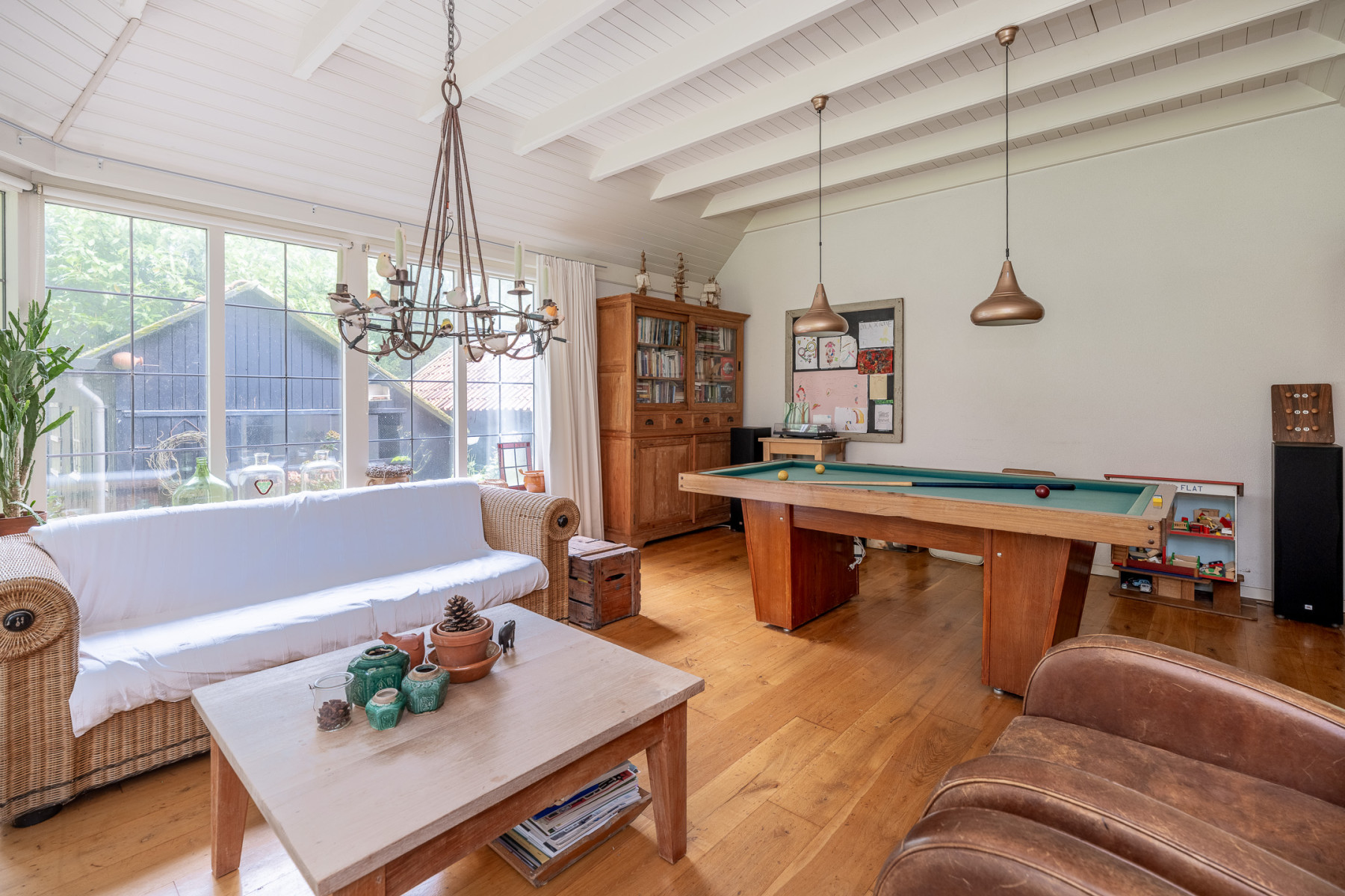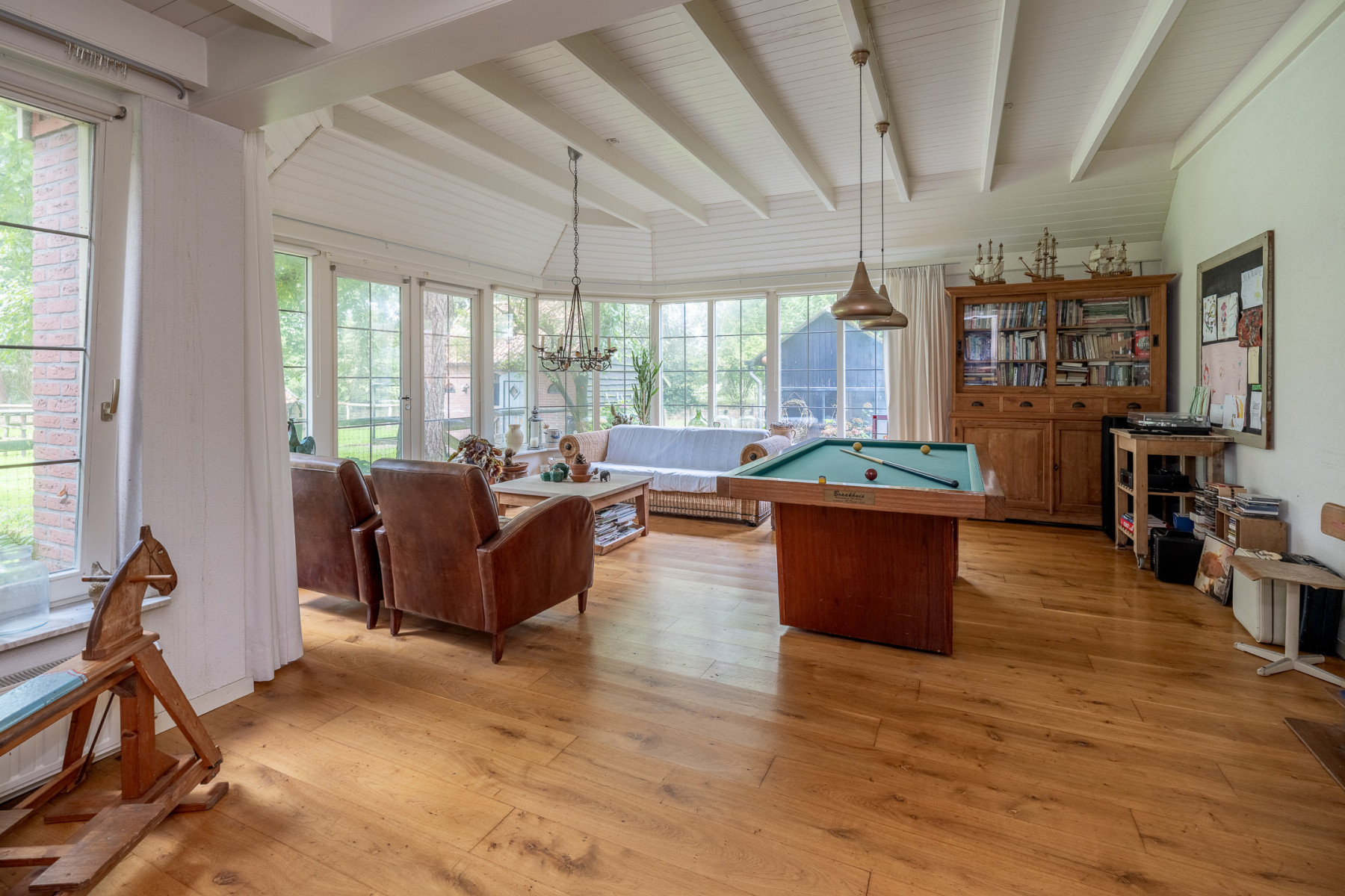 De zijkamer is nog een extra ruimte waar u samen met familie, vrienden of uw gezin kunt samenkomen! Door de vele ramen geniet u hier de hele dag door van een prachtig uitzicht op de tuin. De ruimte is afgewerkt met een houten balkenplafond, lichte wanden en houten vloer. Er is genoeg ruimte voor een comfortabele zithoek. Door de openslaande deuren loopt u zo naar buiten, waardoor binnen en buiten naadloos in elkaar overlopen.
