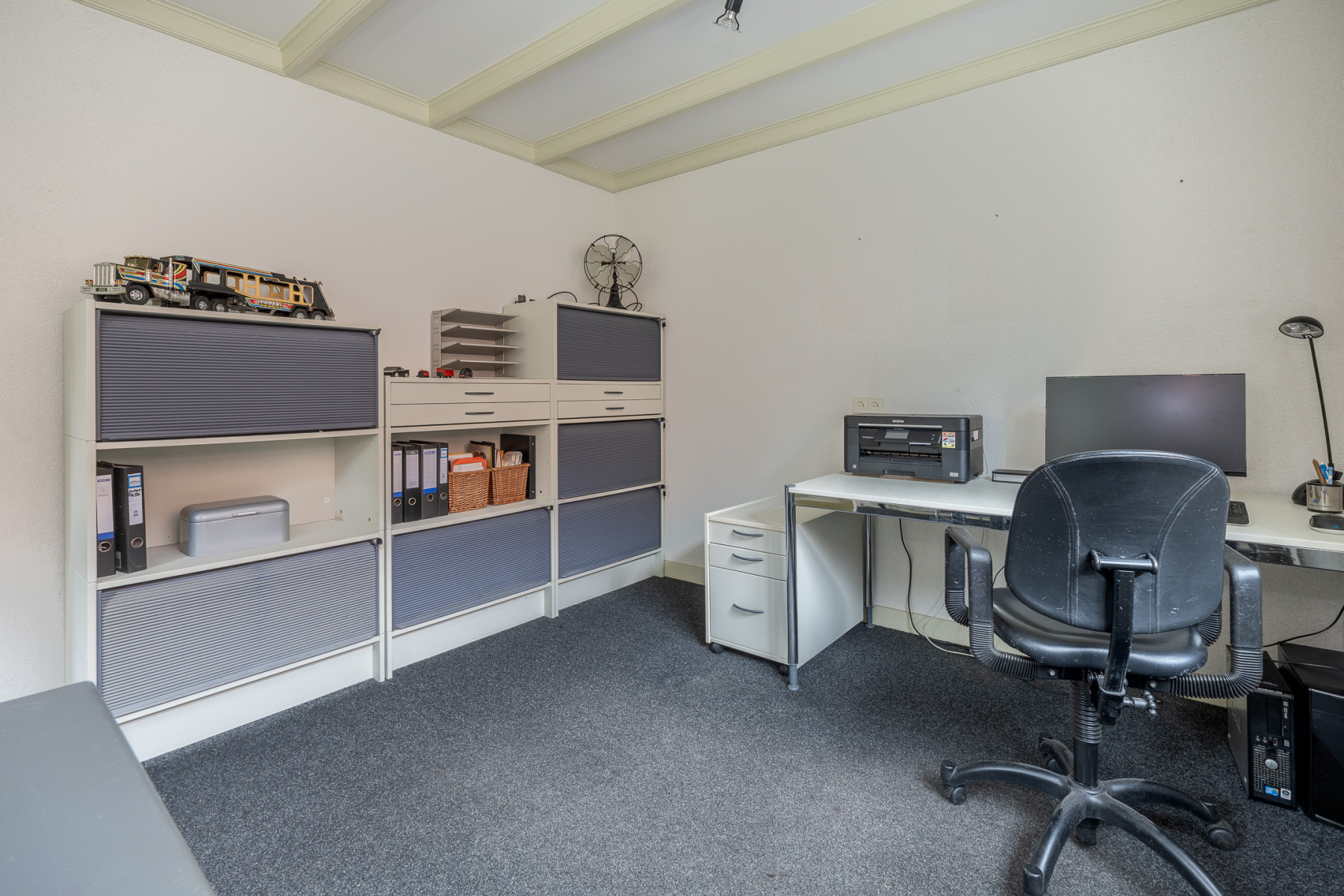 Op de begane grond vinden we een extra ruimte, op dit moment in gebruik als kantoor. Uiteraard kan deze ruimte voor meerdere doeleinden gebruikt worden, wat denkt u van een slaapkamer op de begane grond? Of liever een speelkamer voor de kinderen? Alles is hier mogelijk. De ruimte heeft een royale maatvoering en is voorzien van een balkenplafond.