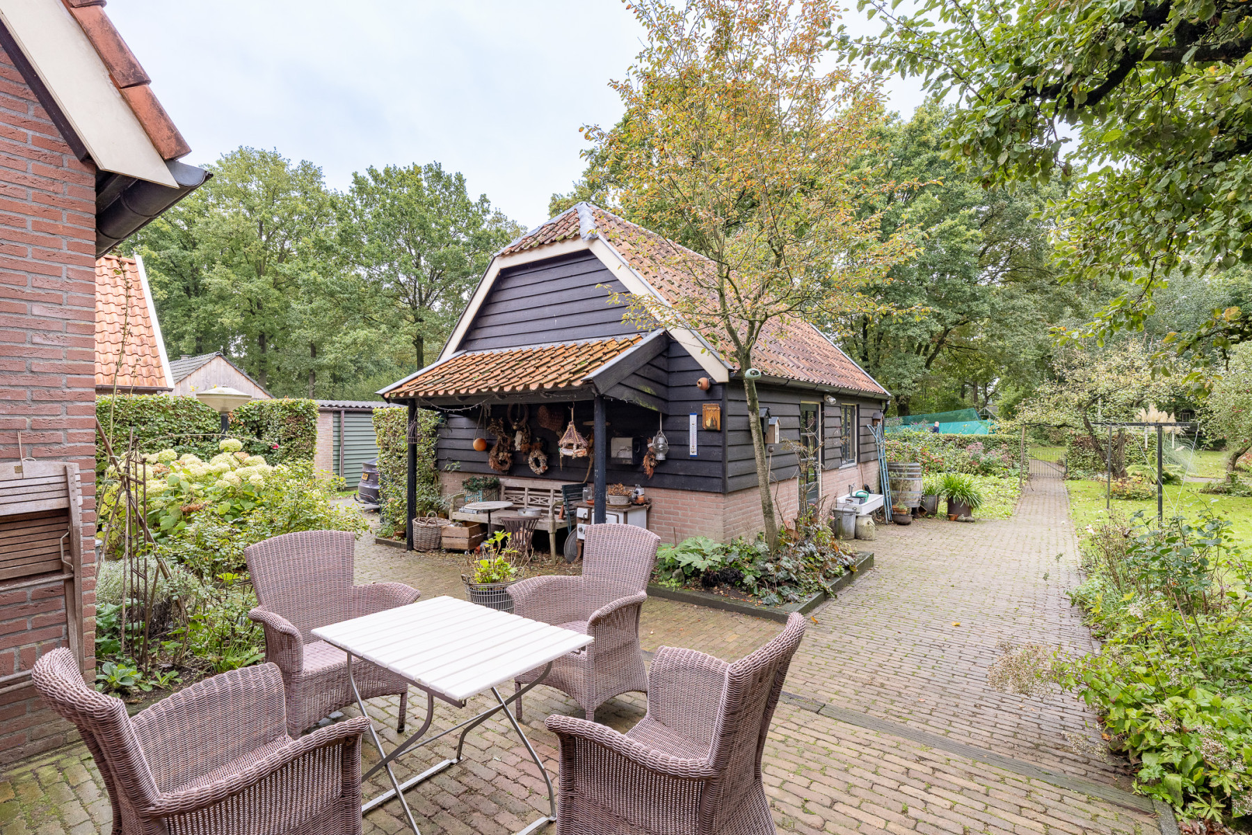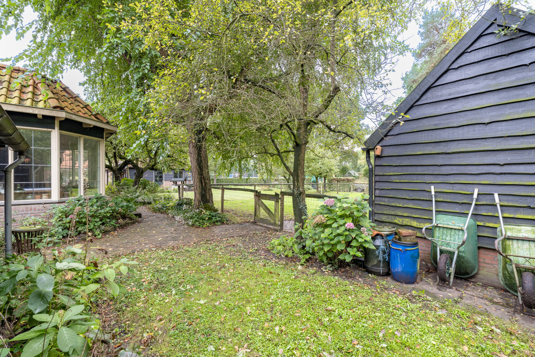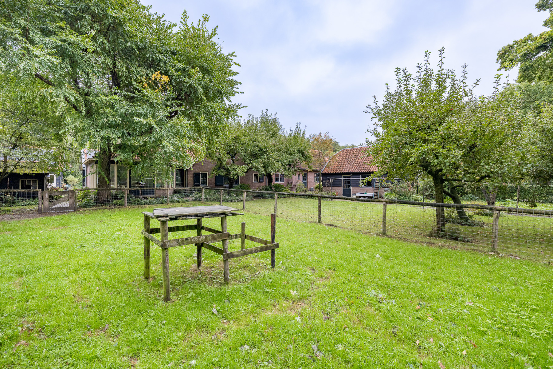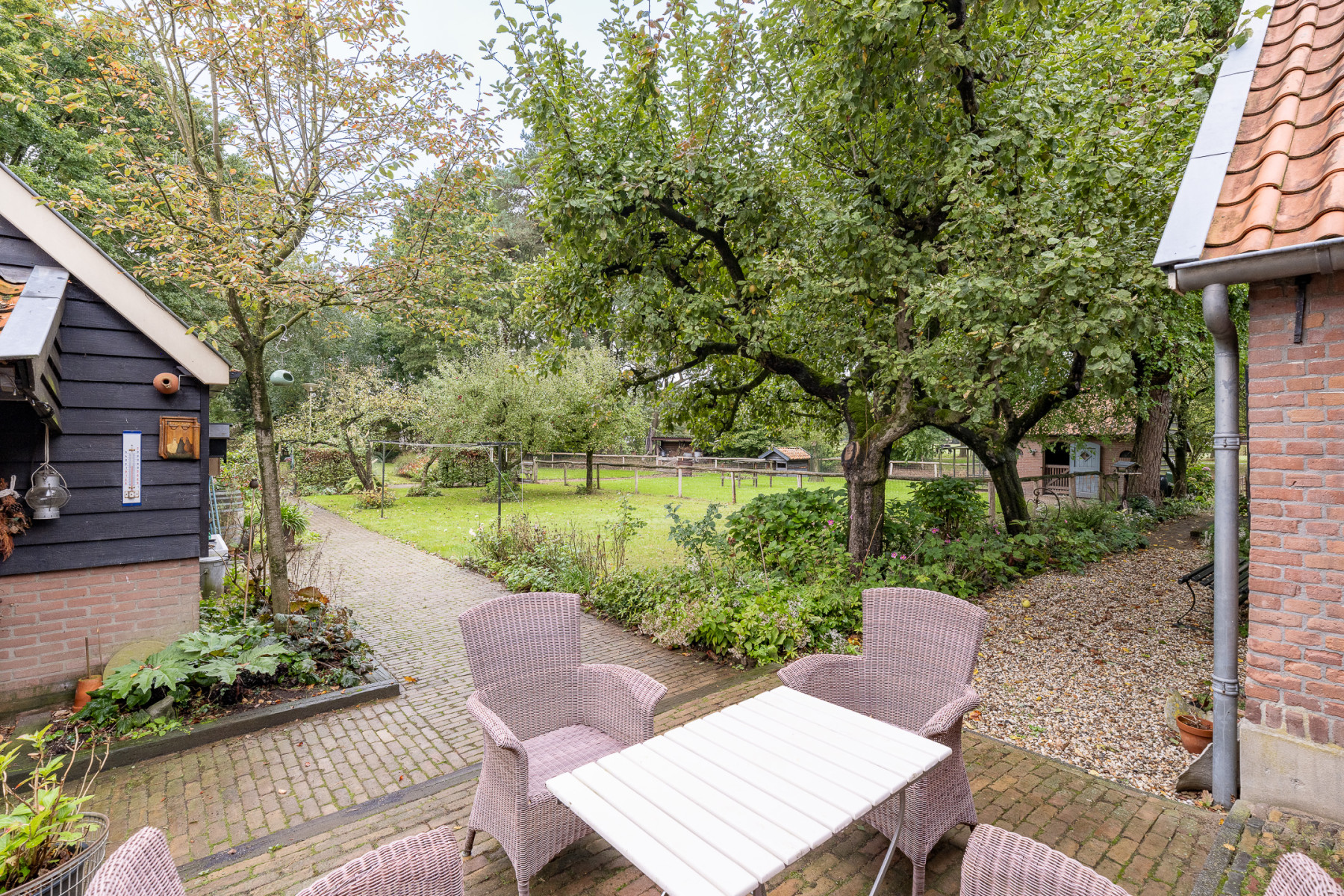 Voor wie van het buitenleven houdt, is dit de ultieme plek om te genieten! Het geheel is een groene oase en biedt u volop privacy, ruimte en rust. Nabij de woning vindt u een terras waar u op elk moment van de dag heerlijk kunt vertoeven met een kop koffie of een goed glas wijn. Er is een omheinde wei aanwezig waar u hobbymatige dieren kunt houden. Verder zijn er een moestuin en diverse appelbomen om uw eigen verse groenten en fruit te verbouwen. De vrijstaande garage met uitstortgootsteen, een zolder, een kanteldeur en een loopdeur kan ideaal gebruikt worden voor opslag of om te klussen. Daarnaast is er een groot gazon, een eigen oprit en een houten berging. Kortom: een veelzijdige tuin met ruimte, rust en veel mogelijkheden!