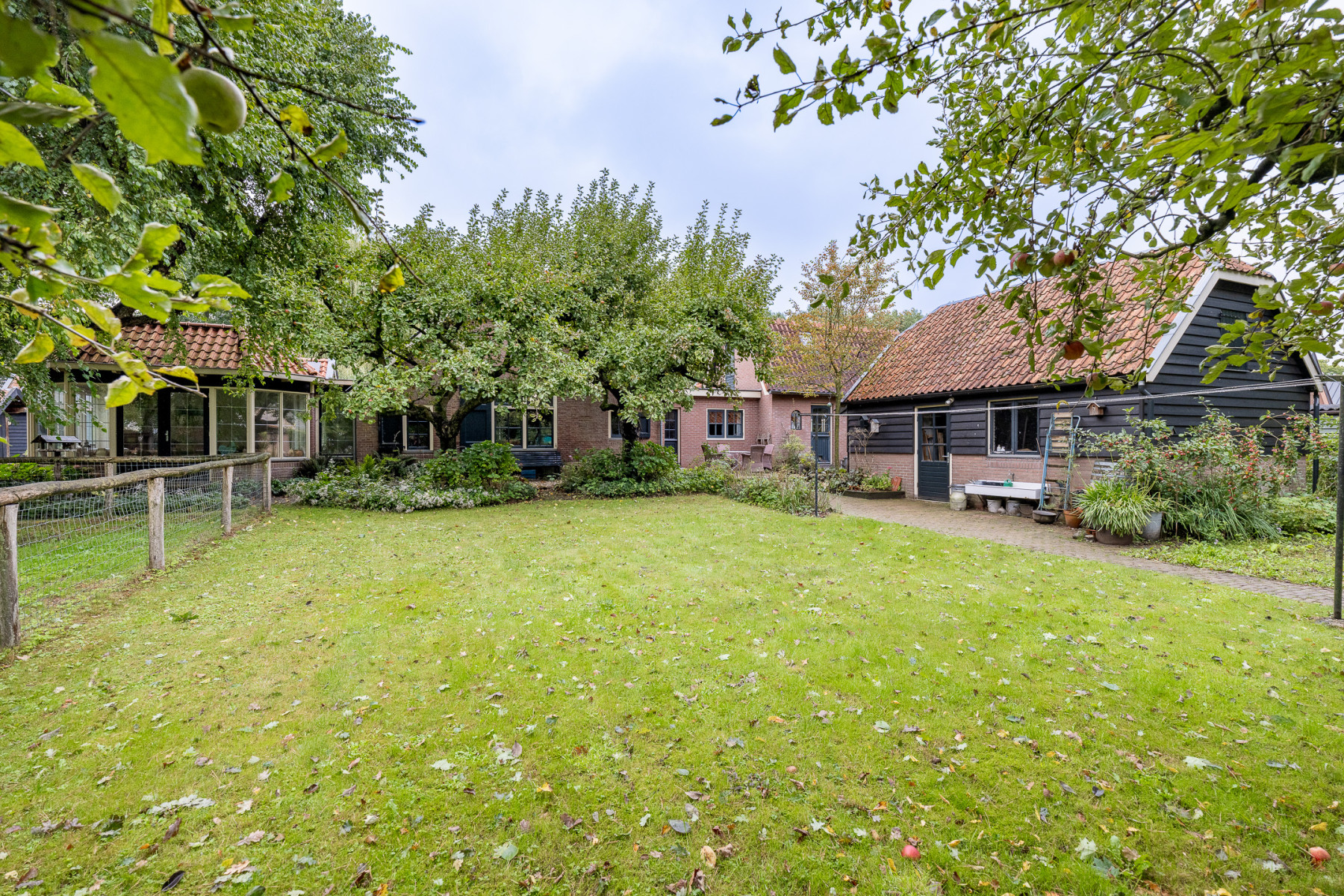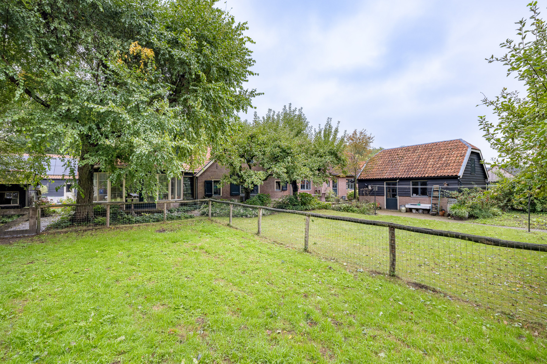 Idyllisch wonen in een groene omgeving! Dat kenmerkt deze geschakelde woning waar u geniet van de charme en de karakteristieke elementen. Binnenshuis profiteert u van een royale woonkamer, een zijkamer met toegang tot de tuin, vier slaapkamers waarvan één op de begane grond en een praktische bijkeuken. De tuin is een plaatje op zich: appelbomen, een weide, een moestuin en volop mogelijkheden om te genieten van het buitenleven. Of u nu houdt van tuinieren, dieren houden of gewoon ontspannen in het groen, hier kan het allemaal! Verder is er een vrijstaande garage met zolder die geheel naar eigen wens te gebruiken is. En dit alles op een rustige locatie met veel privacy!
