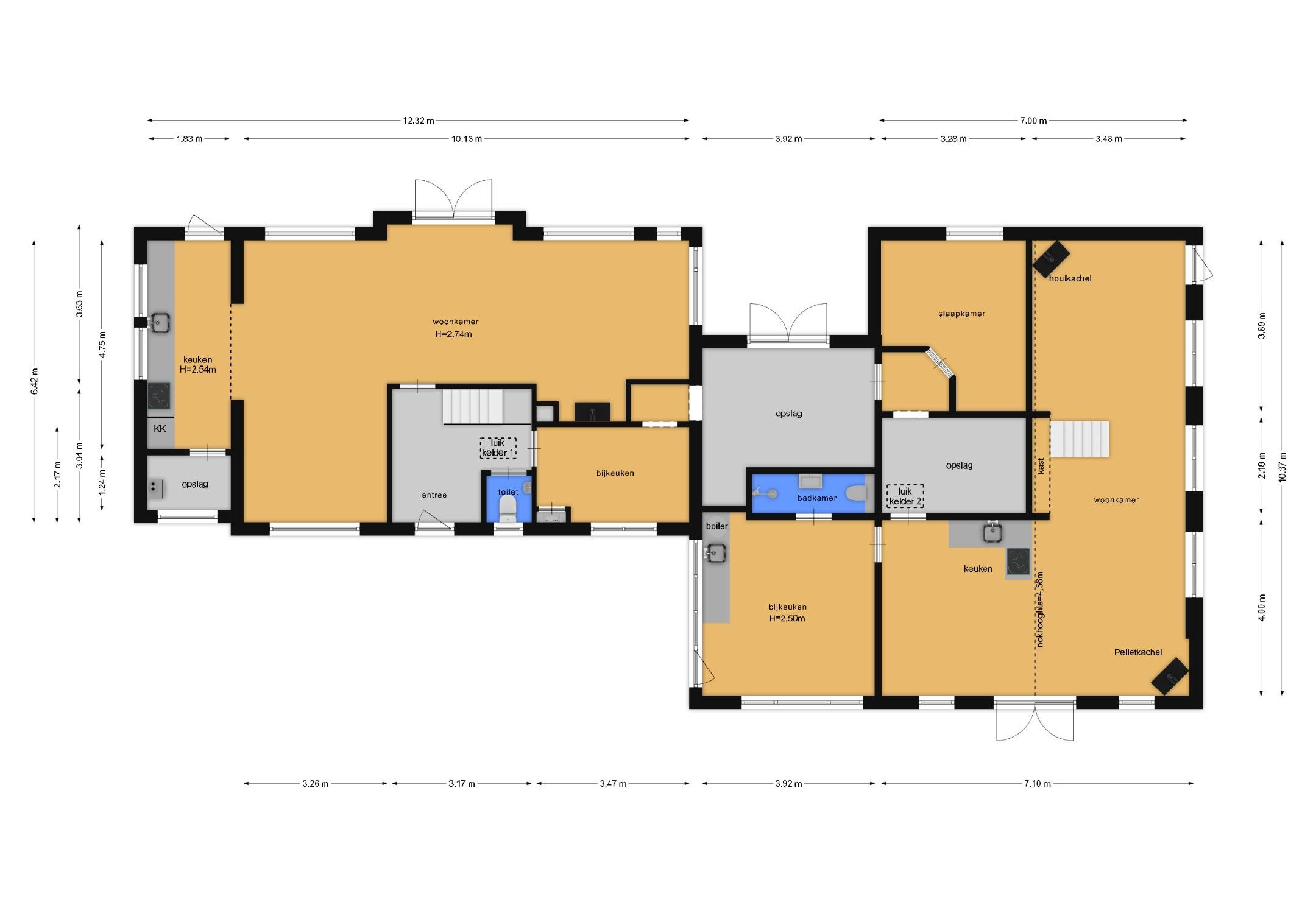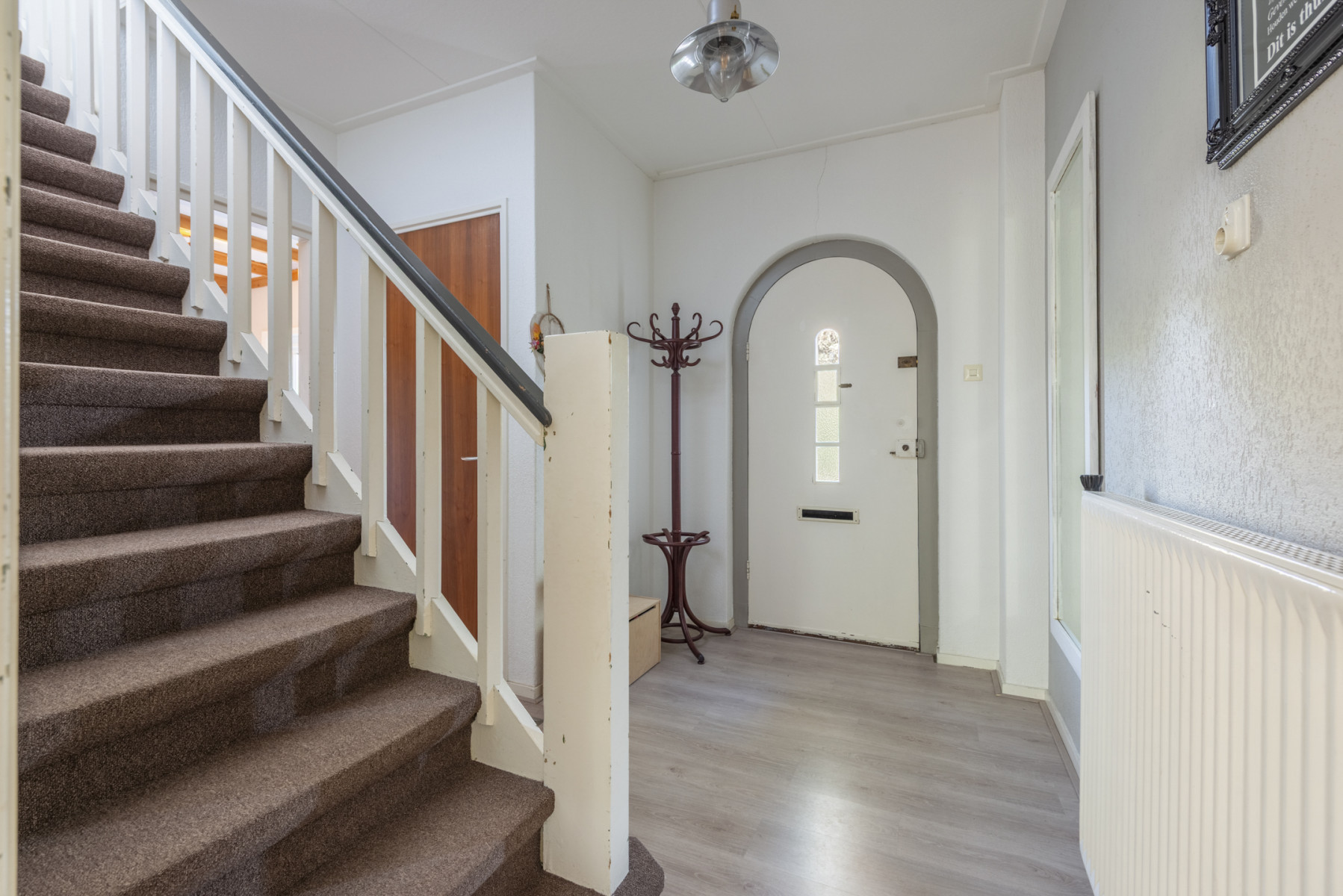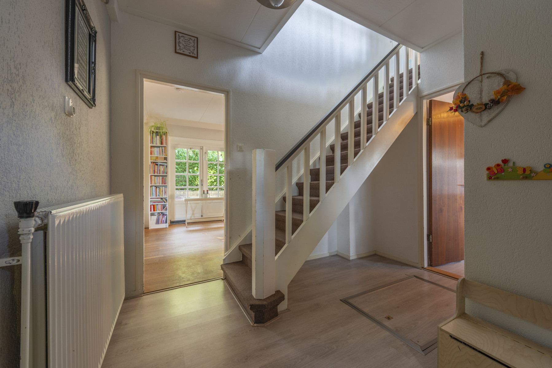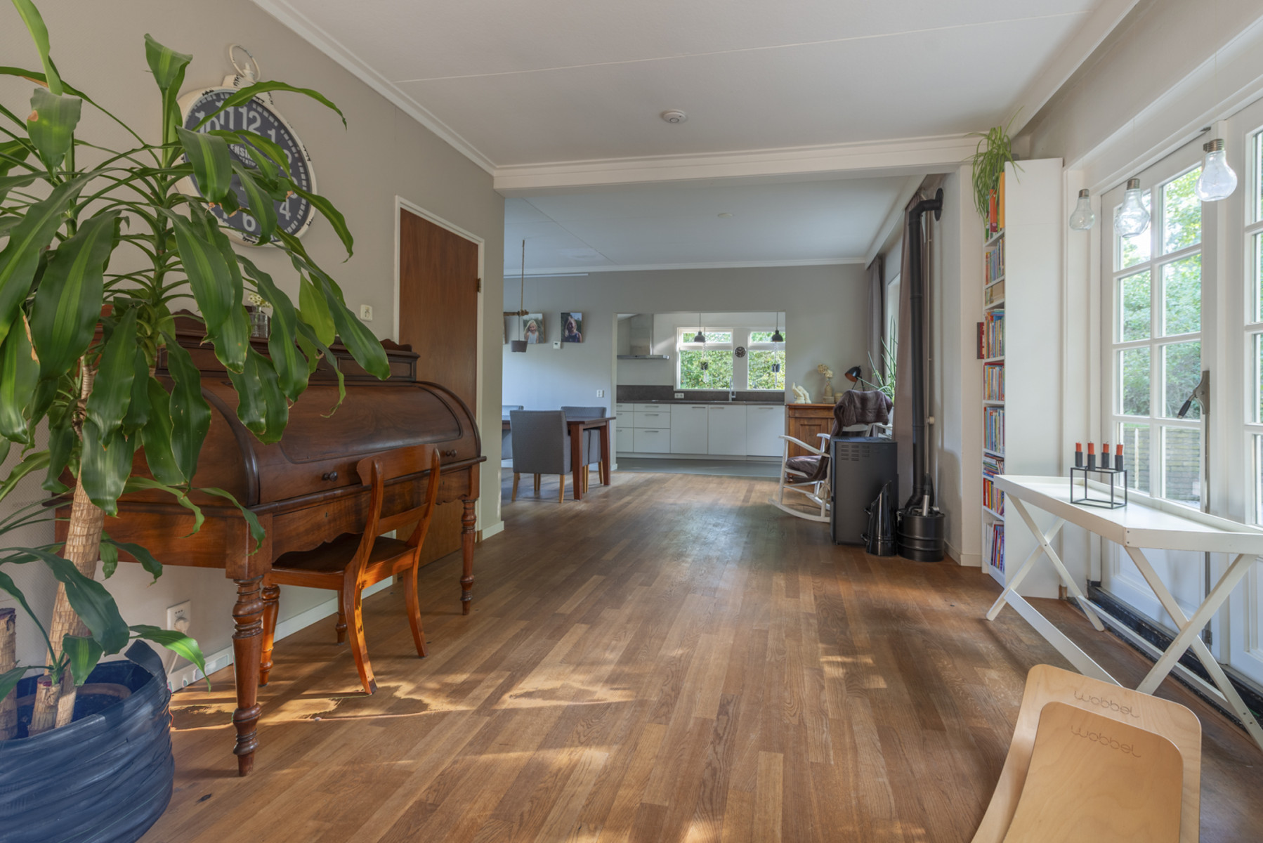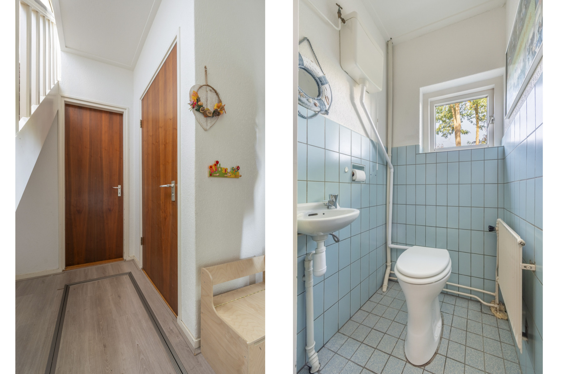 De oprijlaan van grind brengt u bij de woning, vervolgens stappen we deze karakteristieke woning binnen in de hal, welkom! In de hal treft u aan de rechterzijde een toiletruimte met toilet en fonteintje, verder vindt u hier de trapopgang naar de eerste verdieping en krijgt u vanuit de hal toegang tot de woonkamer en tot de bijkeuken.