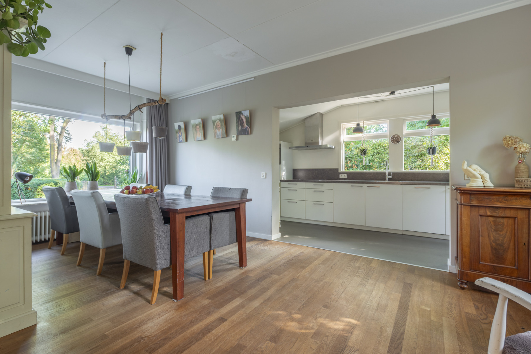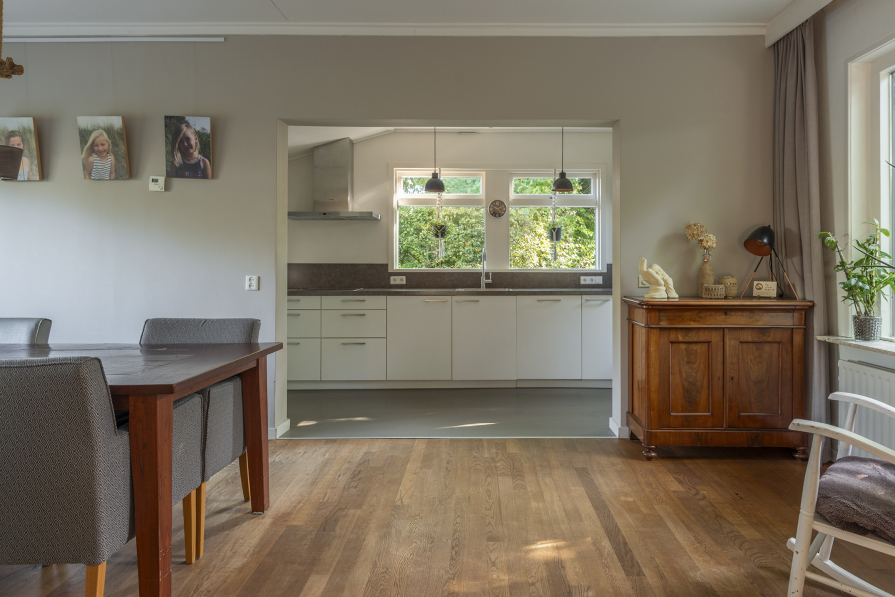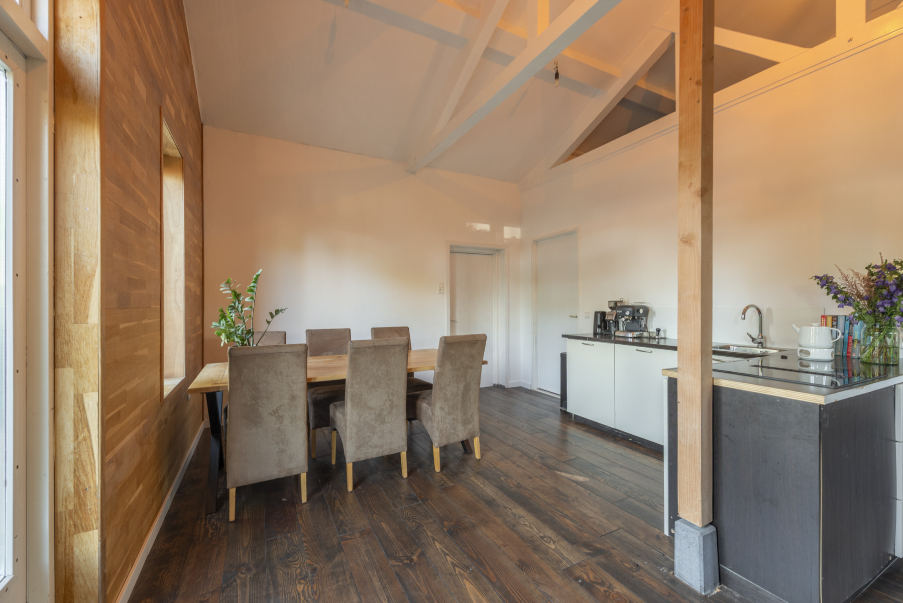 Naast de keuken vindt u een ruimte waar de cv-ketel staat opgesteld en waar de aansluiting van de witgoedapparatuur zich bevindt. Daarnaast is er nabij de keuken plek voor een eettafel. Ook hier is een groot raampartij geplaatst, zo is de ruimte lekker licht.