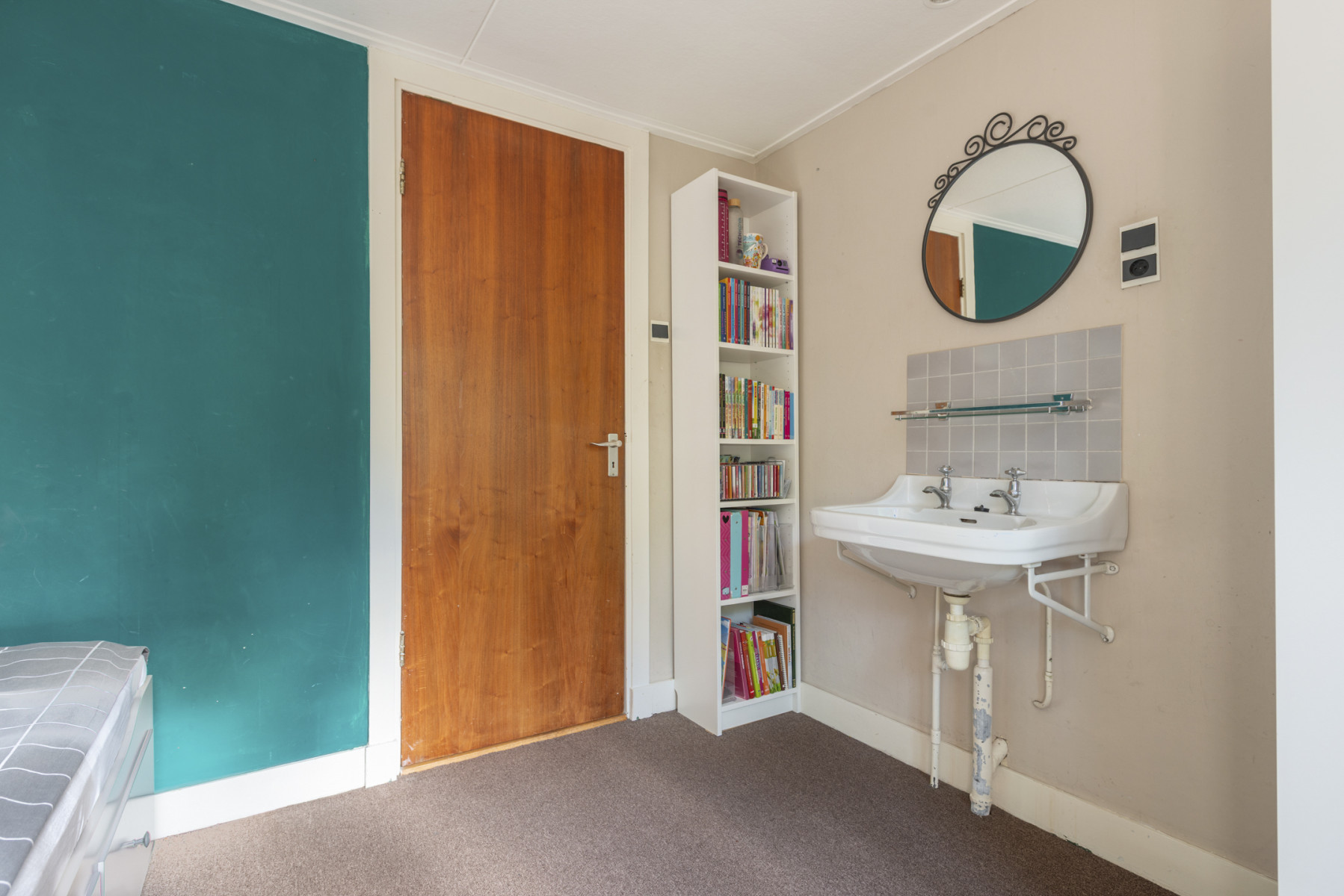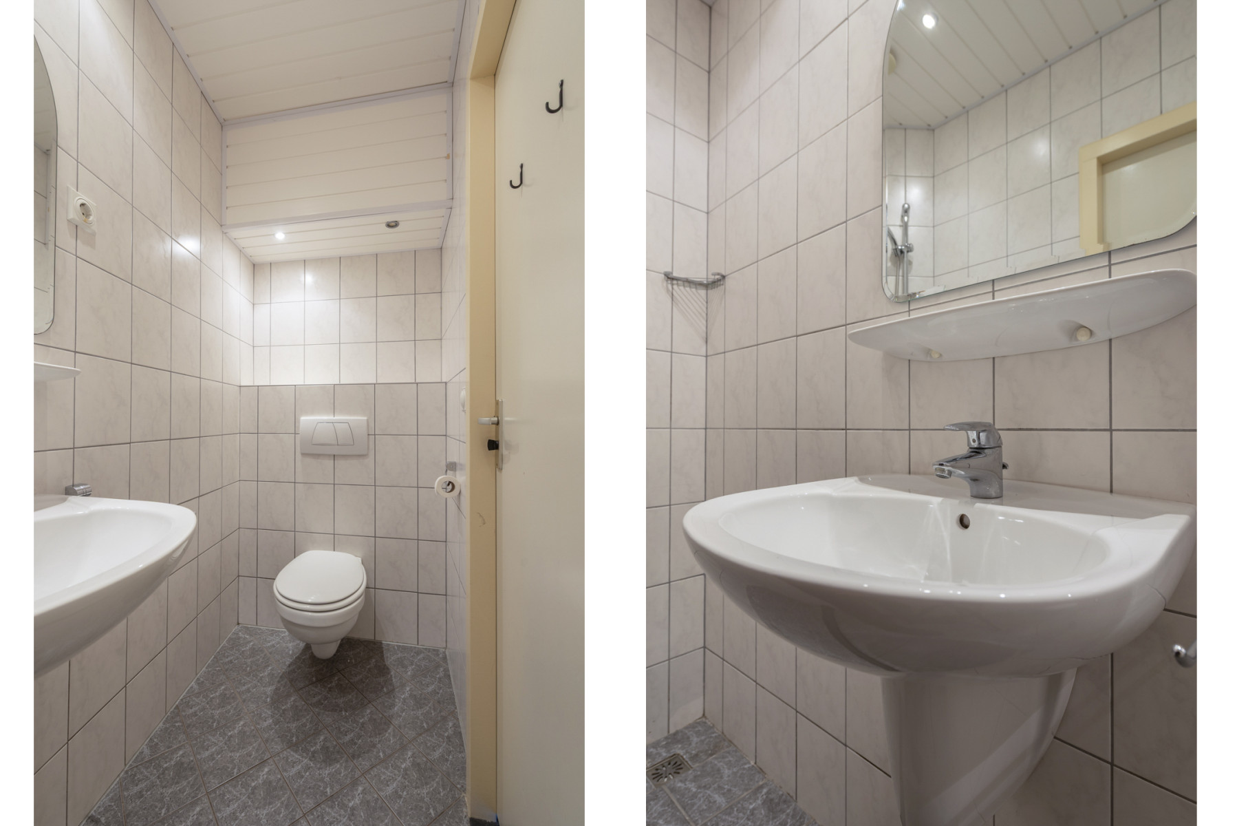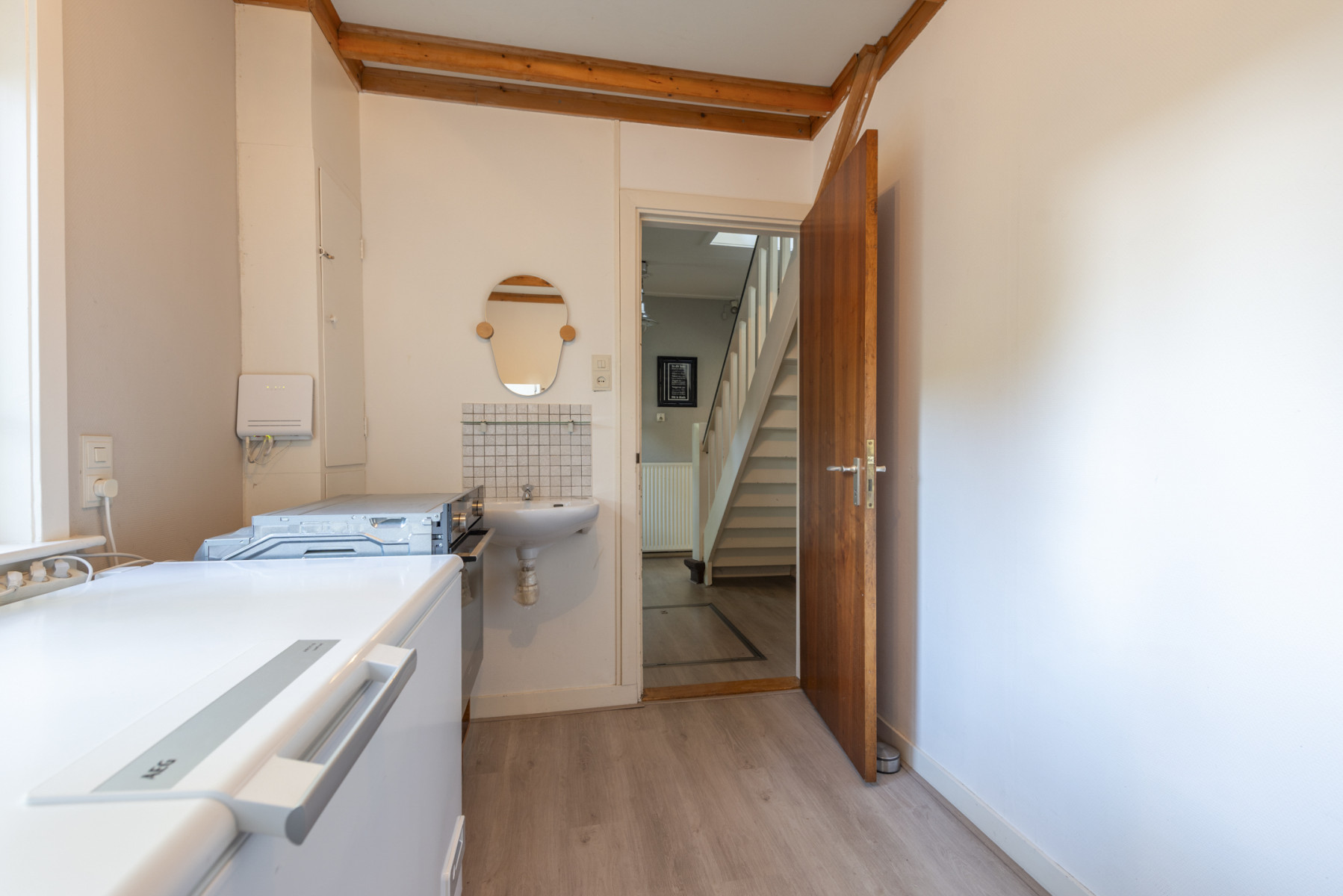 Vanuit de hal is de praktische bijkeuken te bereiken, erg handig. Zo stapt u niet gelijk vanuit de tuin het leefgedeelte binnen. De bijkeuken is voorzien van een wastafel en de meterkast.