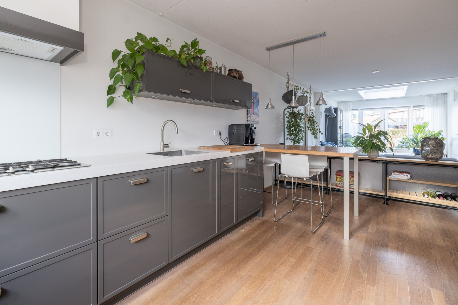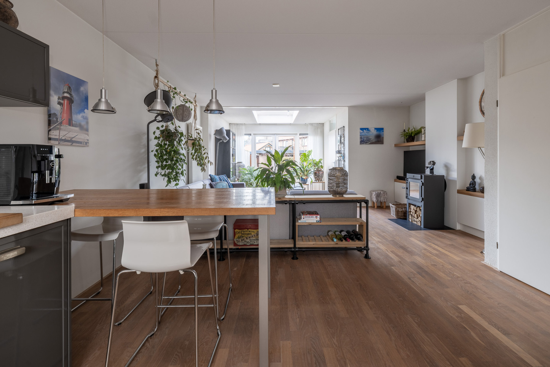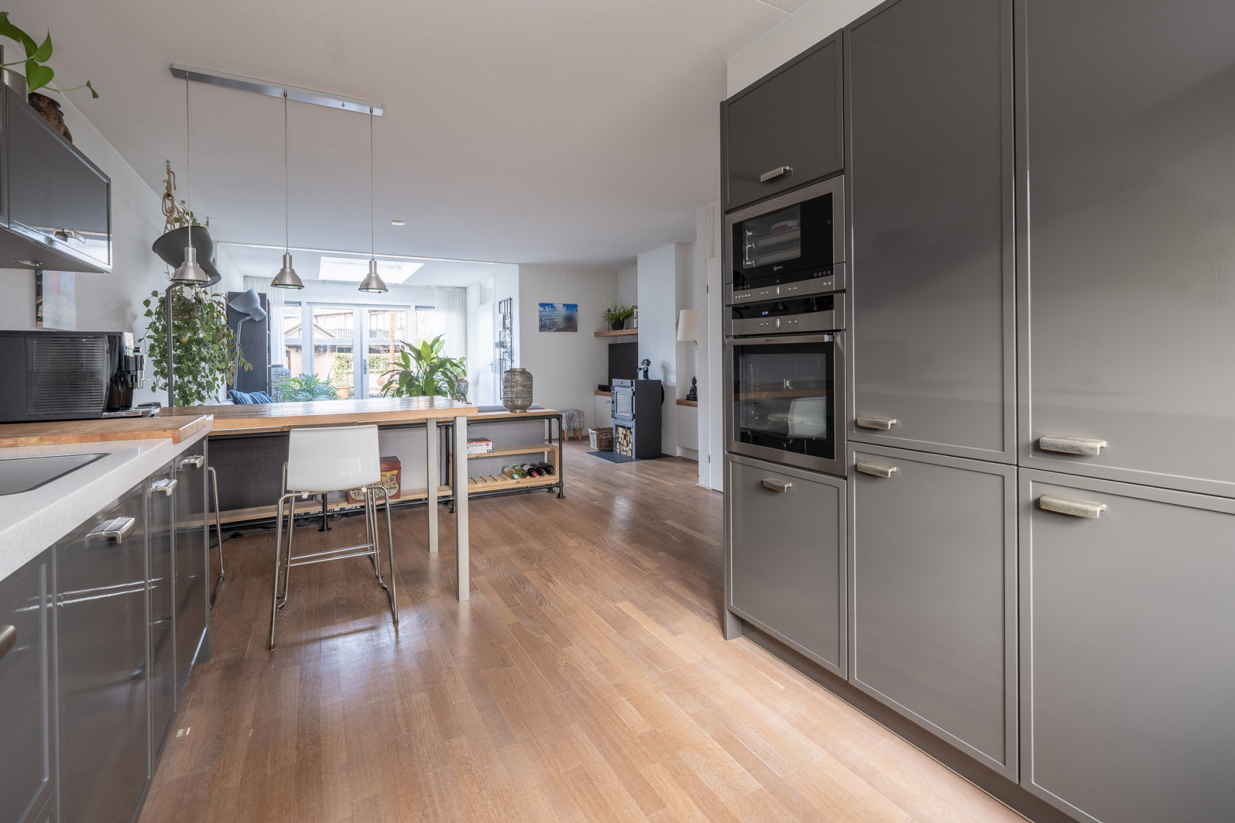 De open keuken sluit mooi aan op de woonkamer en heeft een warme kleurstelling die direct een huiselijke sfeer creëert. De keuken is uitgerust met een 5-pits gasstel met een afzuigkap. Daarnaast beschikt de keuken over een kraan met direct warm water. Verder is de keuken voorzien van een vaatwasser, een koel- vriescombinatie, een oven en een stoomoven, waardoor u alle ruimte en mogelijkheden heeft om uitgebreid te koken en te genieten.