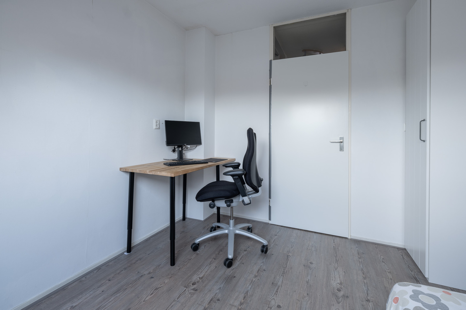 De tweede verdieping is een ruimte met veel mogelijkheden. Het dakraam op de overloop en in de slaapkamer zorgt voor veel licht. Deze ruimte biedt mogelijkheden om een werkplek, slaapkamer of hobbyruimte te creëren. Op de overloop vindt u de opstelling voor de cv-ketel en de witgoedaansluiting.