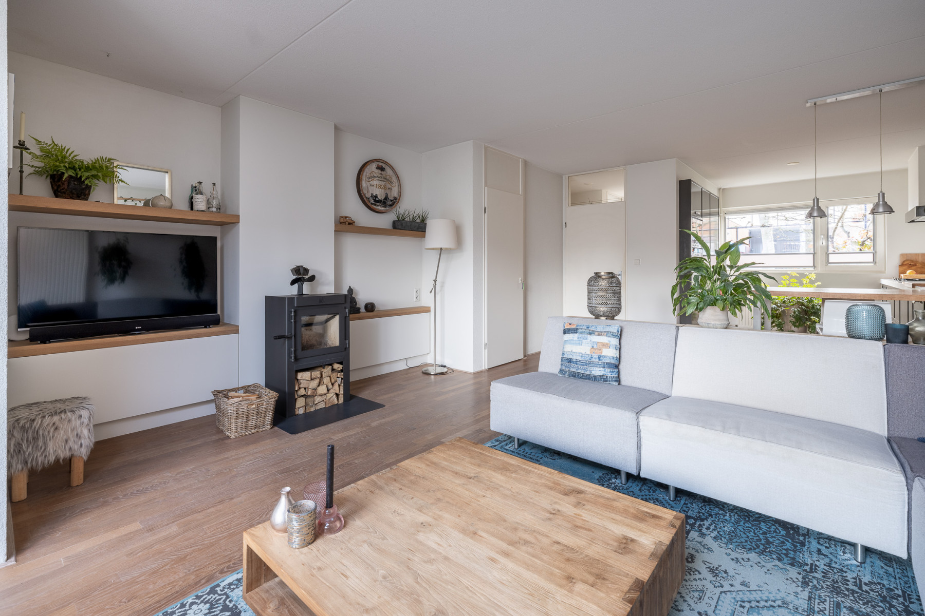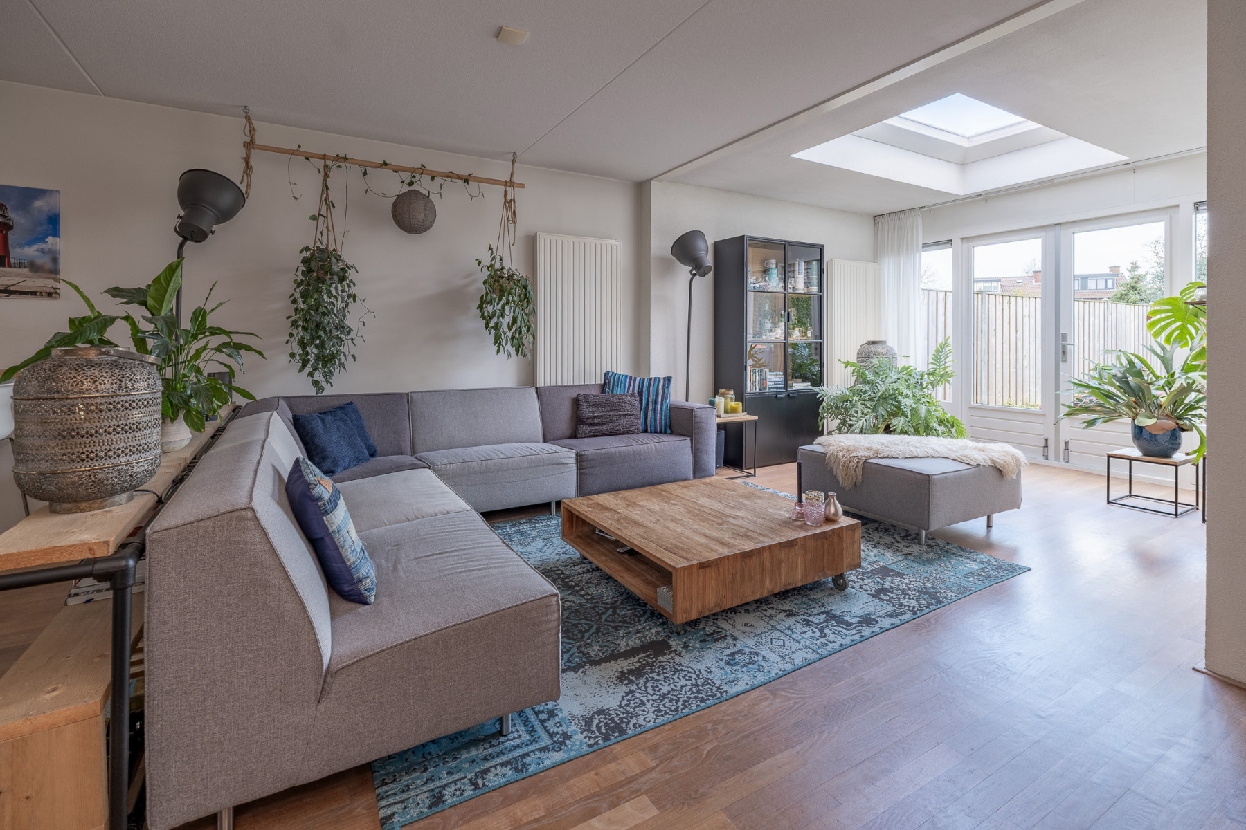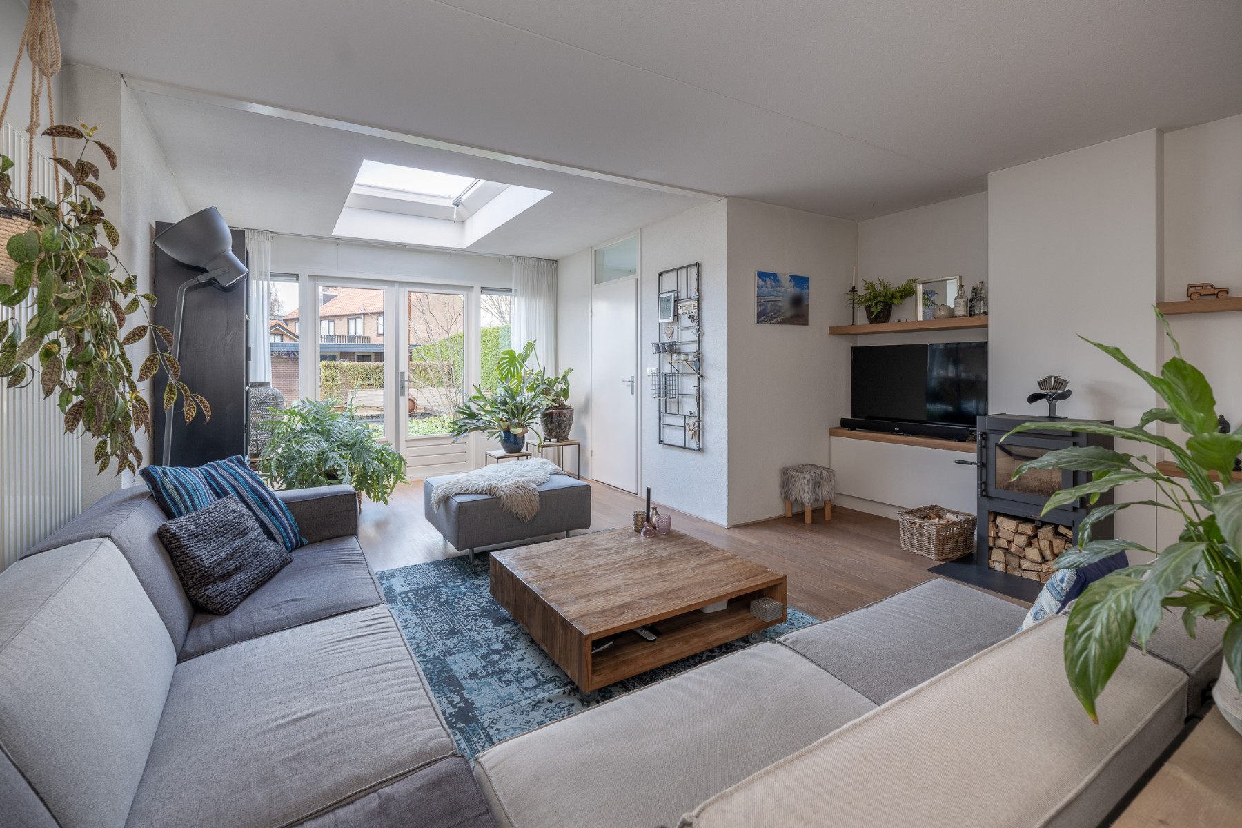 Wanneer u de woonkamer binnenstapt, ervaart u meteen het aangename licht dat door de lichtkoepel naar binnen komt. De woonkamer leent zich perfect voor een comfortabele zithoek, waarbij het fraai ingebouwde rookkanaal de mogelijkheid biedt om een kachel te plaatsen. Daarnaast vindt u in de woonkamer een praktische trapkast voor het netjes opbergen van uw spullen of voorraad. Via de openstaande tuindeuren kunt u niet alleen de tuin bereiken, maar heeft u ook nog eens een leuk uitzicht naar buiten. Ook verkrijgt u hier via een gescheiden entree toegang tot de hal, voorzien van een vaste schuifwandkast en een deur naar de ruime tuin.