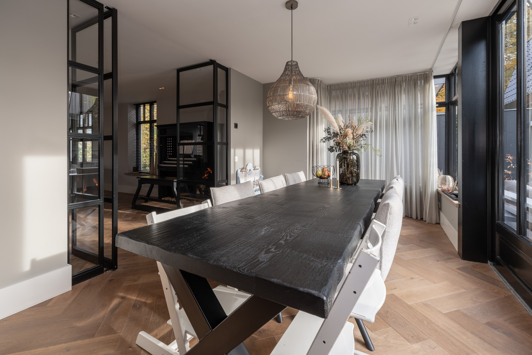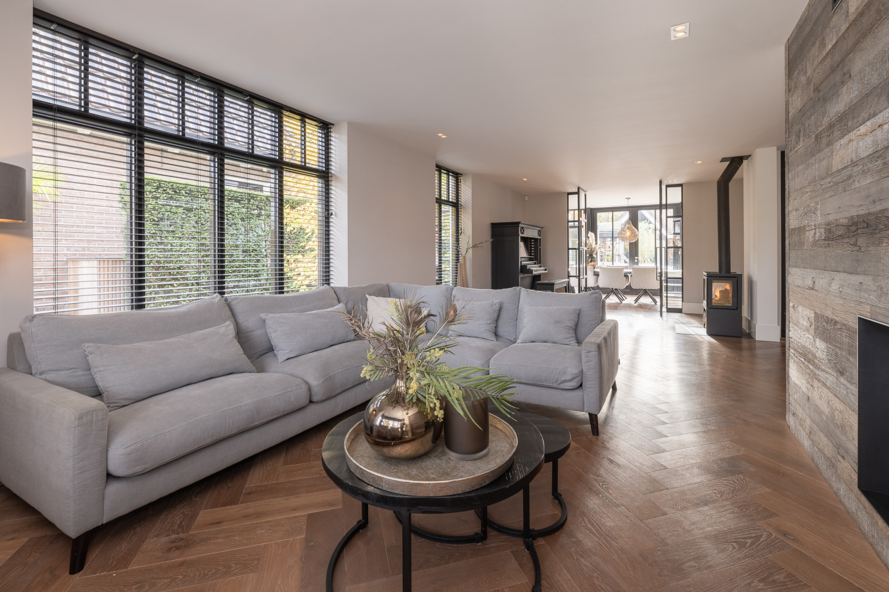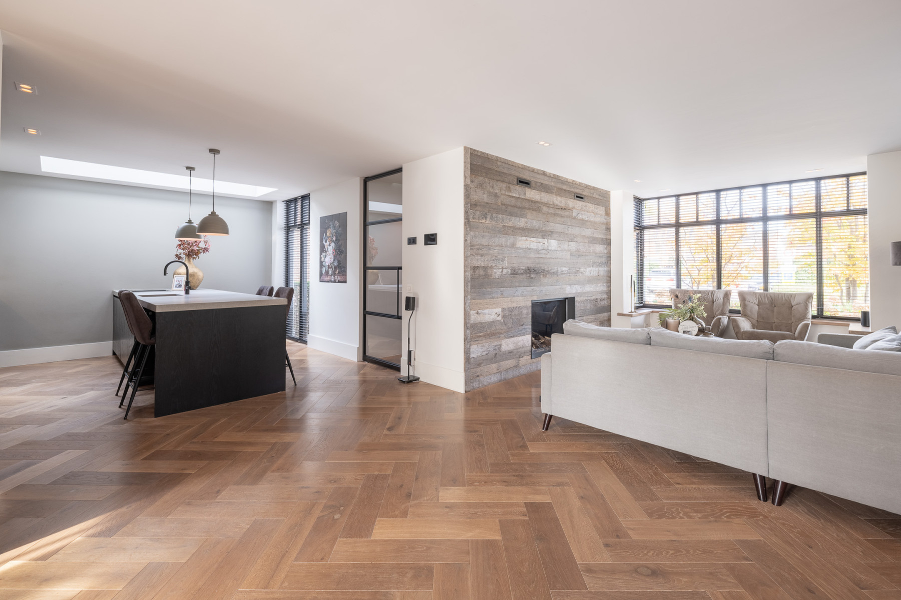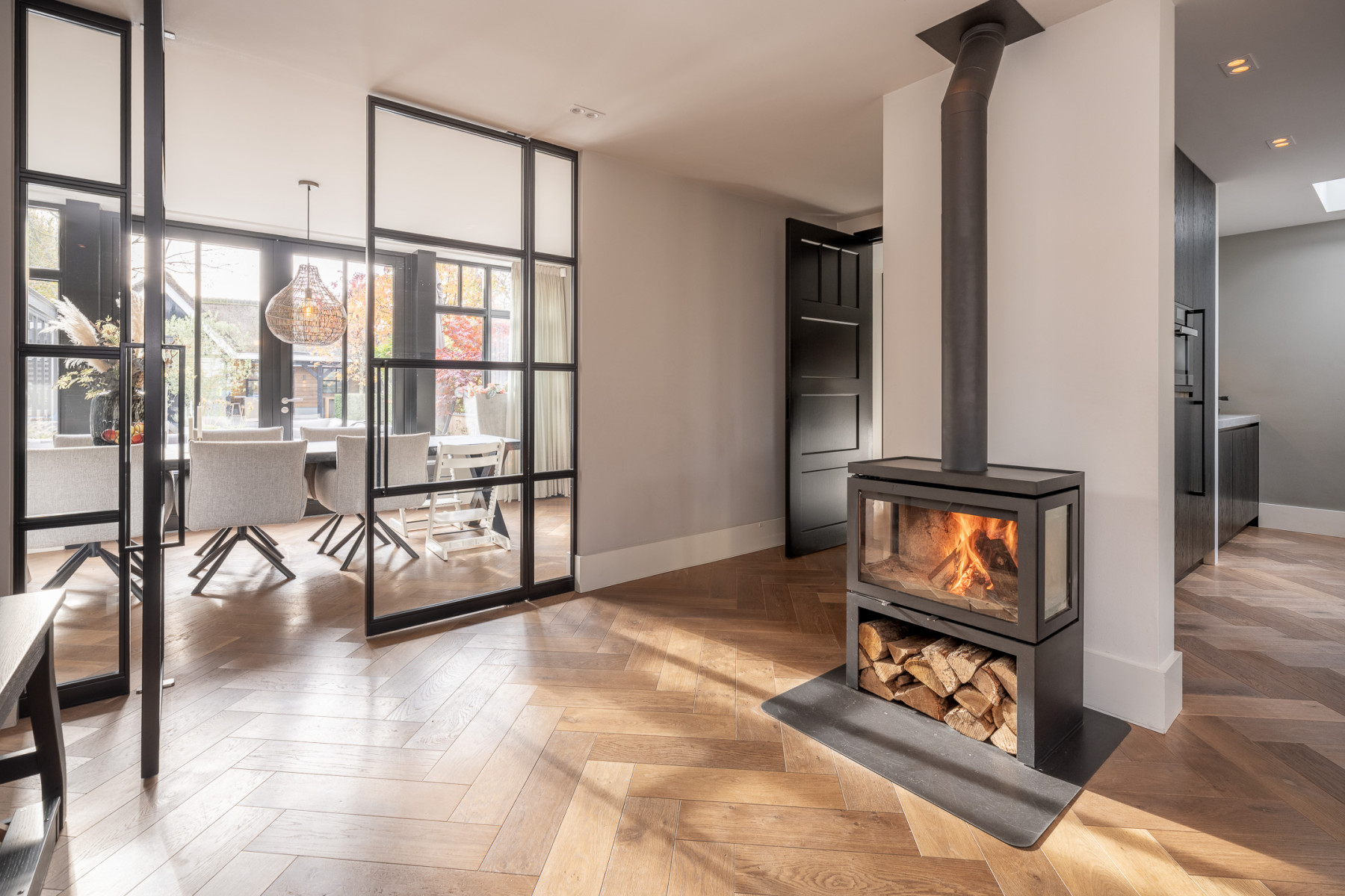 Plaats hier een comfortabele zit en genieten maar! De raampartijen zorgen voor prettige lichtinval en dankzij de eikenhouten visgraatvloer met vloerverwarming heeft dit alles een fijne uitstraling. De sfeer wordt extra versterkt door de gashaard aan de voorzijde van de woning en de houtkachel (ter overname) in het midden van de ruimte. Kortom: een woonkamer waar u zich snel thuis zult voelen!