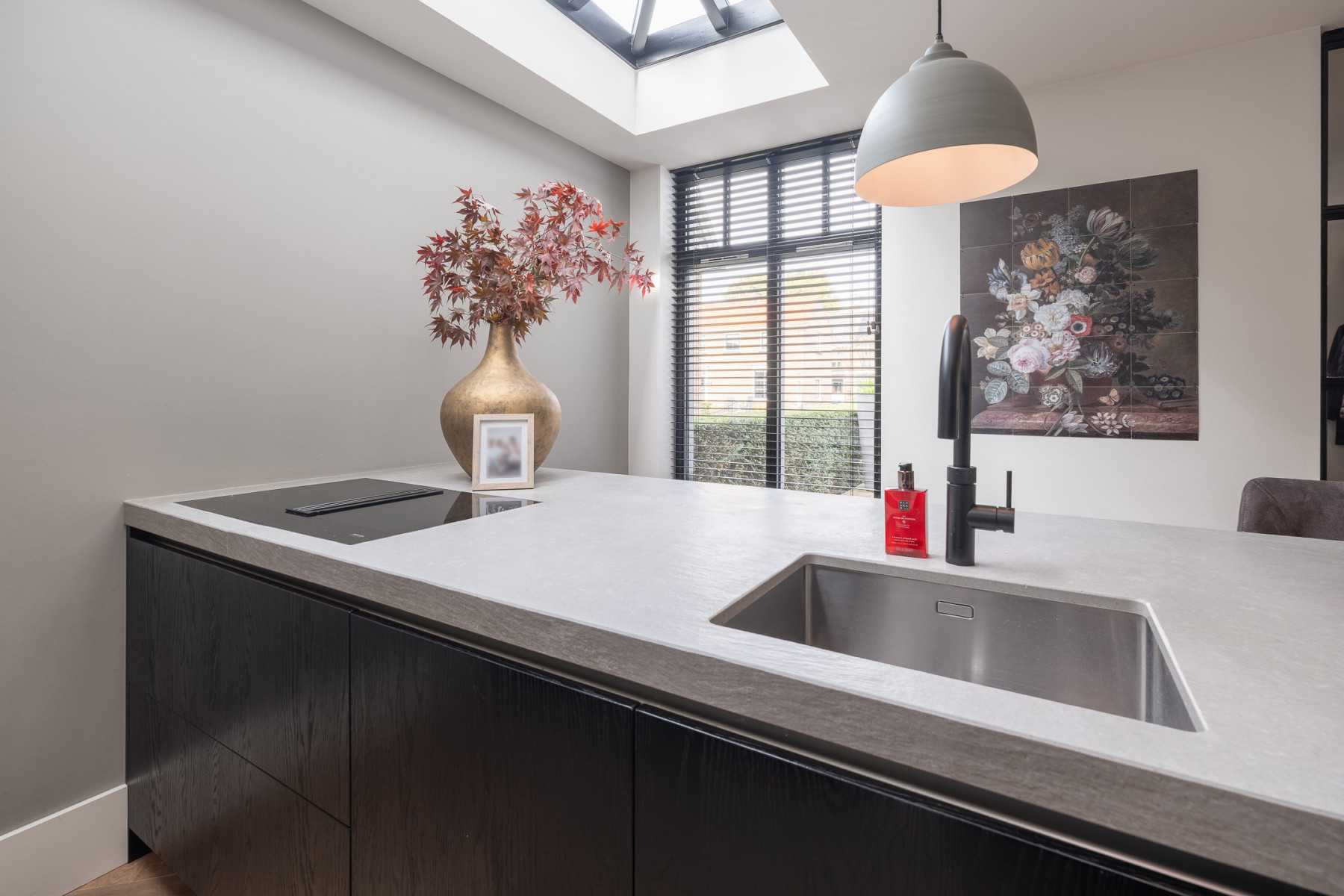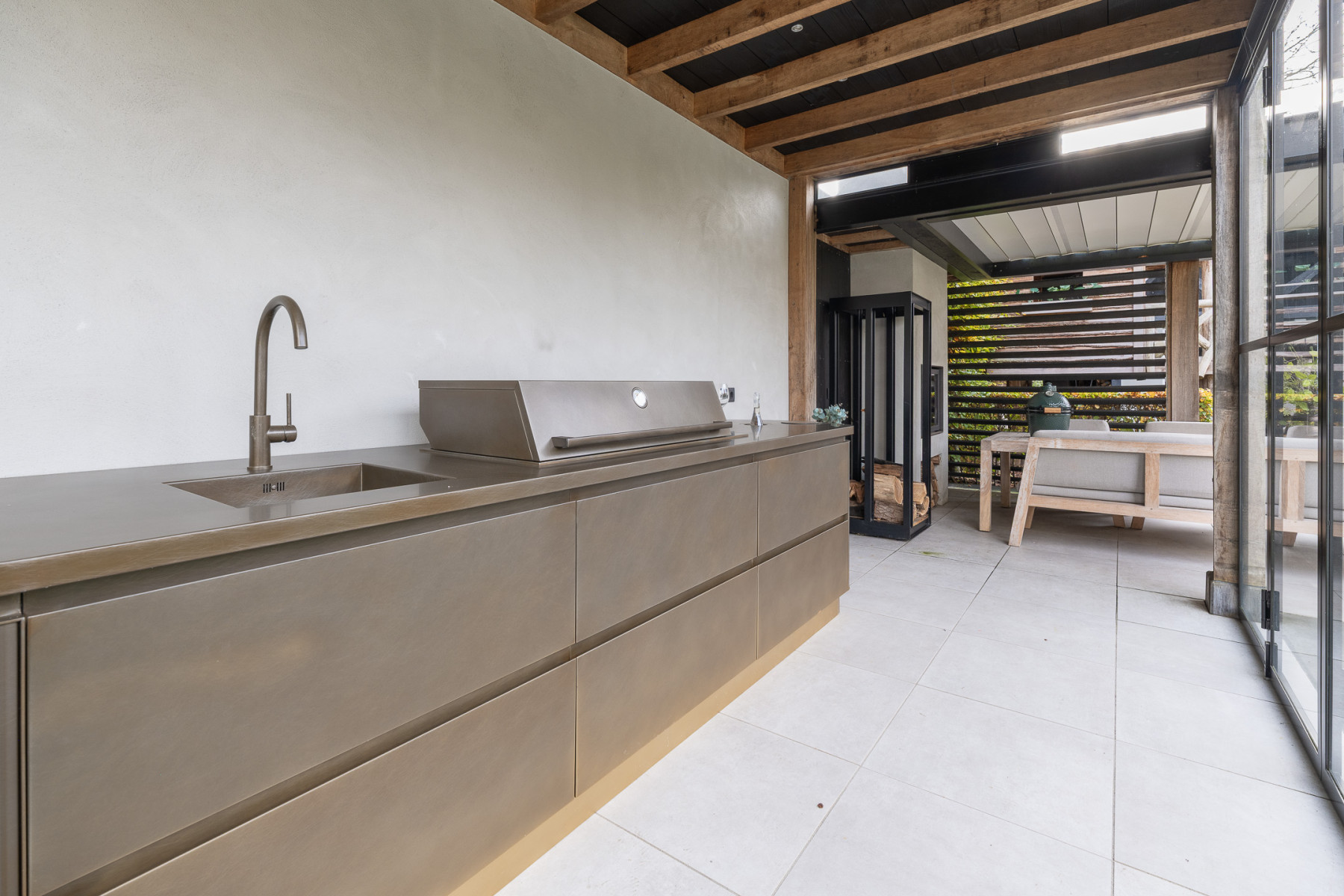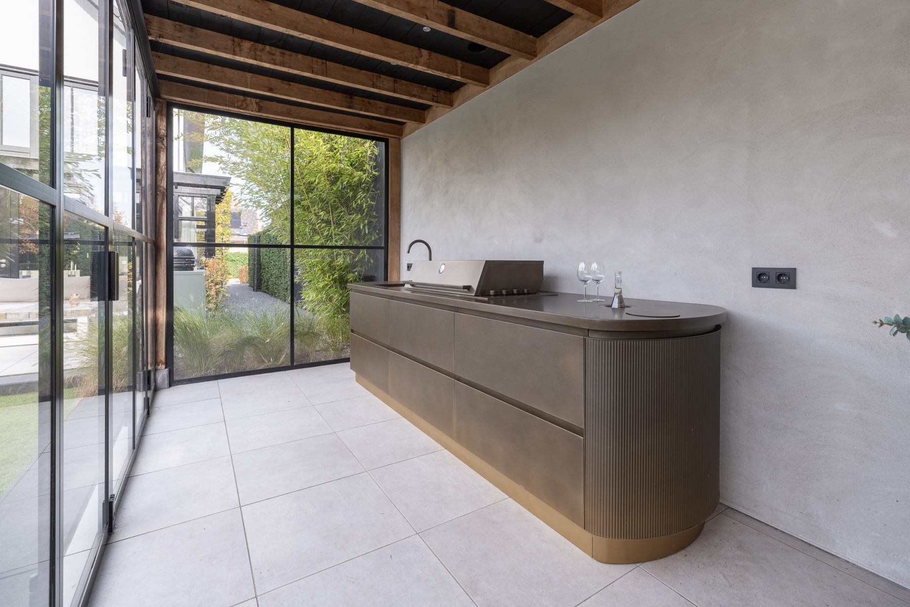 Geheel in stijl van de woning is deze keuken strak uitgevoerd in een neutrale kleurstelling.