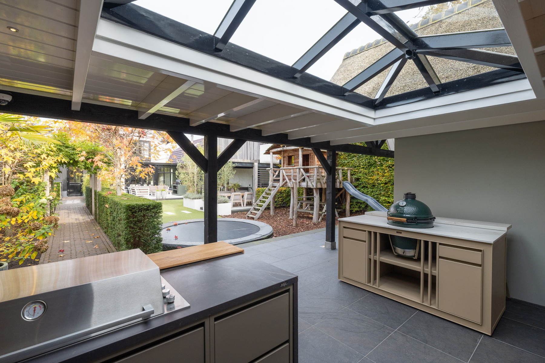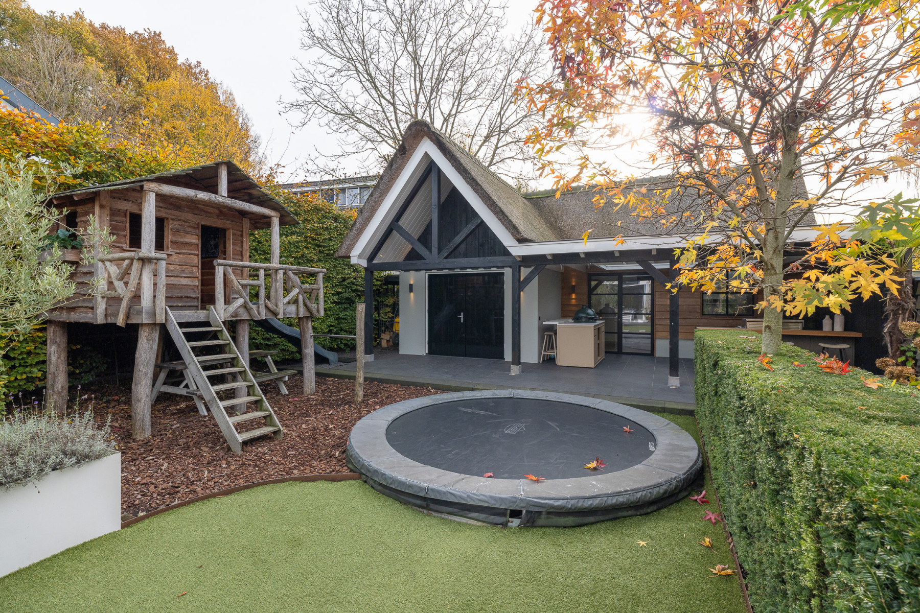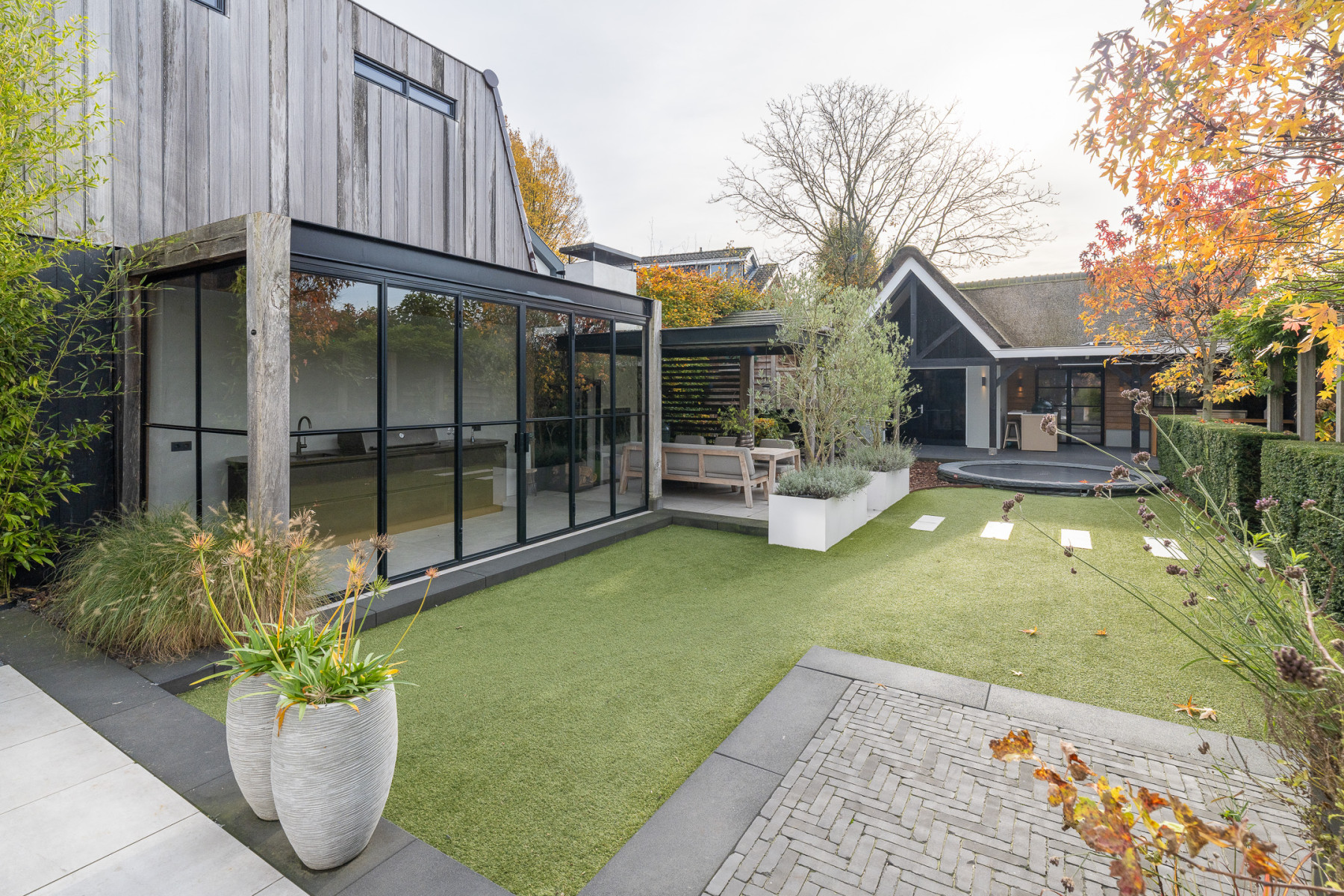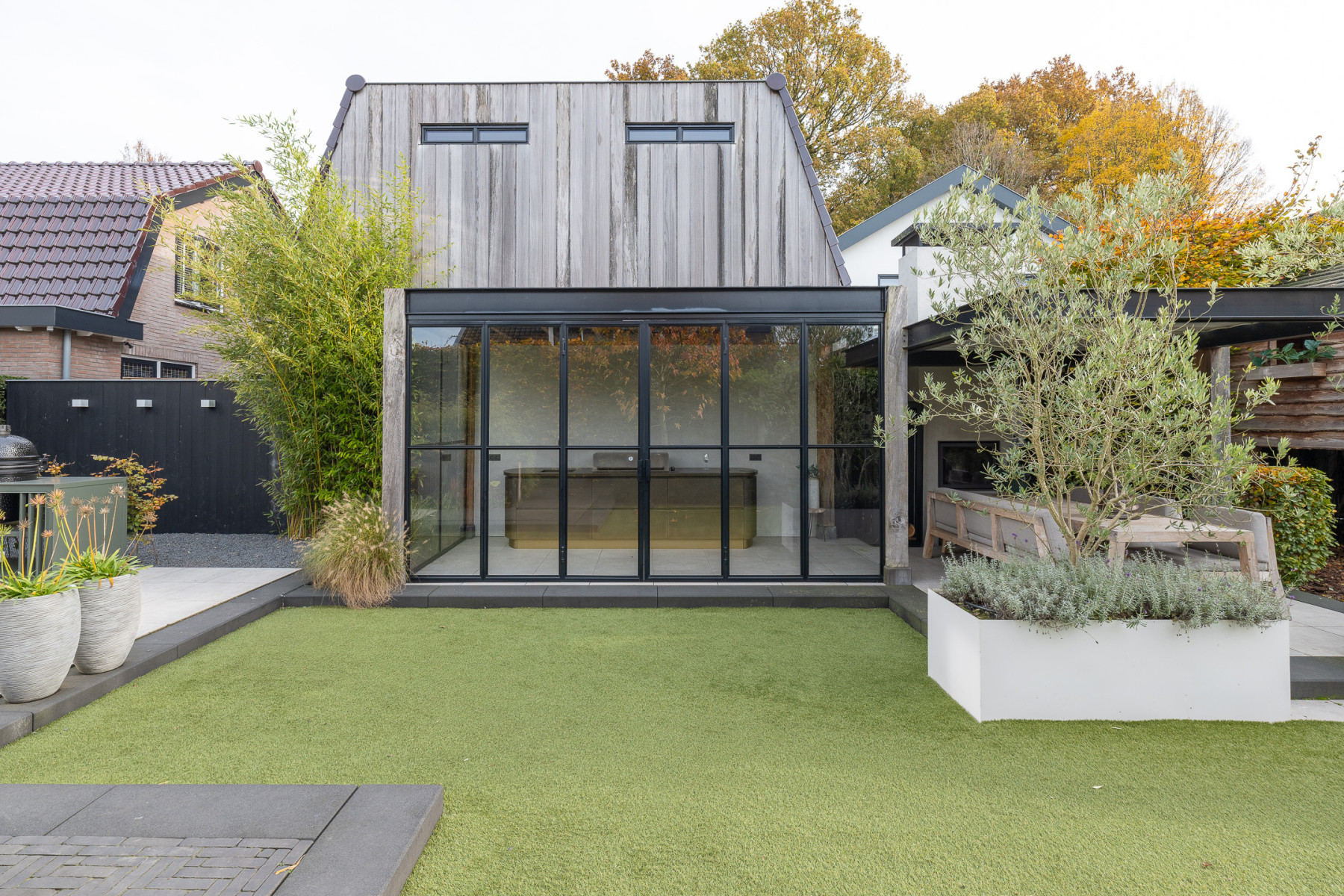 Bij een keurig afgewerkte woning hoort een al nét zo keurige tuin! De achtertuin is zowel via de zijingang, als via de woning te bereiken. Het biedt een fijne combinatie van beplanting, bestrating en zitruimte en de gehele tuin is voorzien van verlichting en beregening. U vindt direct achter de woning een ruim terras met als leuk element het fonteintje, dat zorgt voor een speels effect. Naast het gazon van kunstgras is een tuinkamer geplaatst met daarnaast een overkapping, waar nog een houtkachel is geplaatst. Tijdens zonnige dagen kunt u ook hier genieten van de zon, het lamellen dak is namelijk gemakkelijk in te schuiven middels het Domoticasysteem.