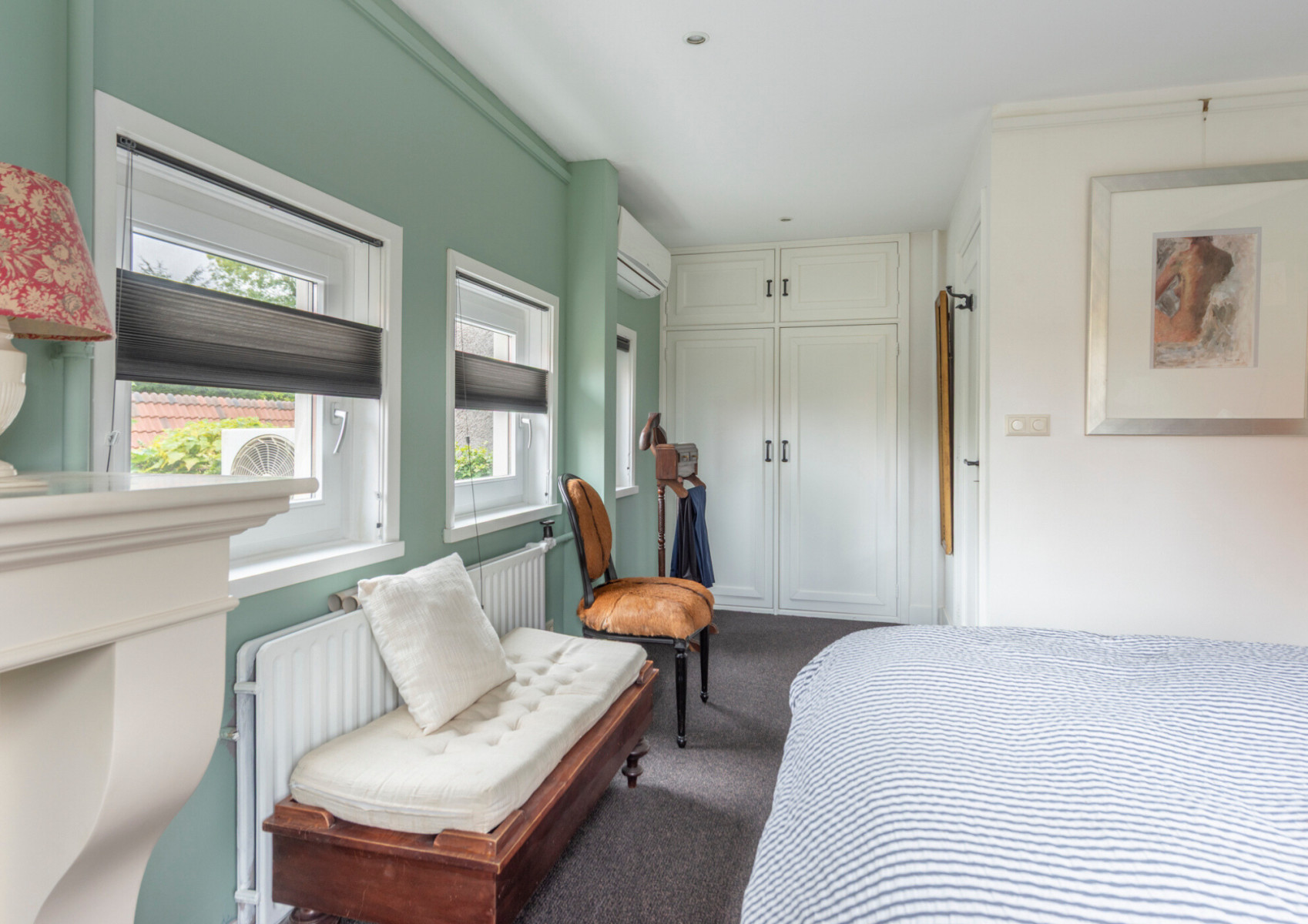 Zodra we boven komen op de eerste verdieping treffen we eerst de overloop. Op de overloop bevinden zich twee, royale vaste kasten. Erg praktisch voor het opbergen van uw kleding en andere spullen. Daarnaast krijgt u vanaf de overloop middels een vlizotrap toegang tot de bergzolder. Op deze verdieping beschikt u over twee slaapkamers. Beide kamers hebben een uitstekende maatvoering, zijn keurig afgewerkt en voorzien van een vaste kastenwand. De ouderslaapkamer, die zich aan de achterzijde bevindt, is voorzien van airconditioning en geeft u toegang tot het balkon. Door de airconditioning blijft het altijd een aangename temperatuur.