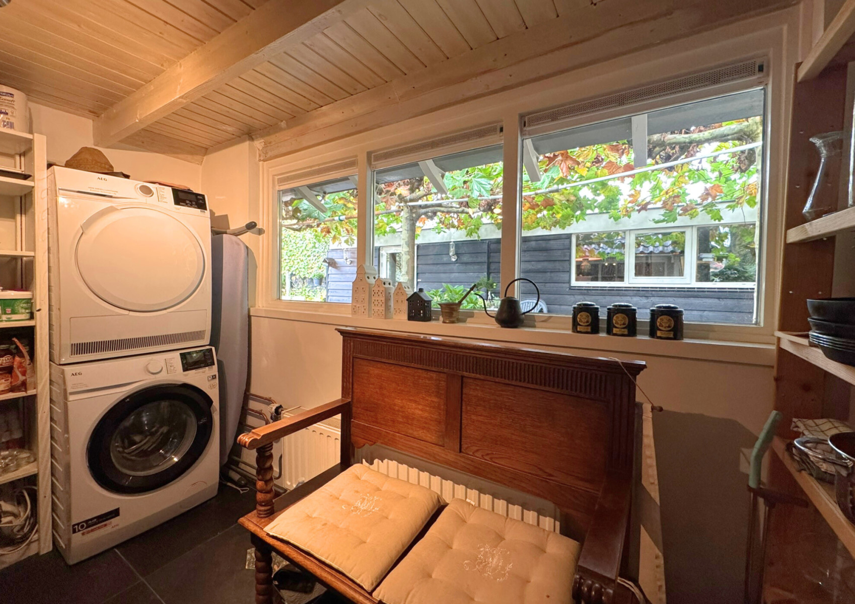 Aan de achterzijde van de woning treft u de praktische bijkeuken aan, een ideale ruimte voor het dagelijks gemak. In de bijkeuken vindt u de aansluiting voor de witgoedapparatuur en extra bergruimte dankzij de bergzolder boven de bijkeuken. Vanuit de bijkeuken loopt u zo de tuin in.