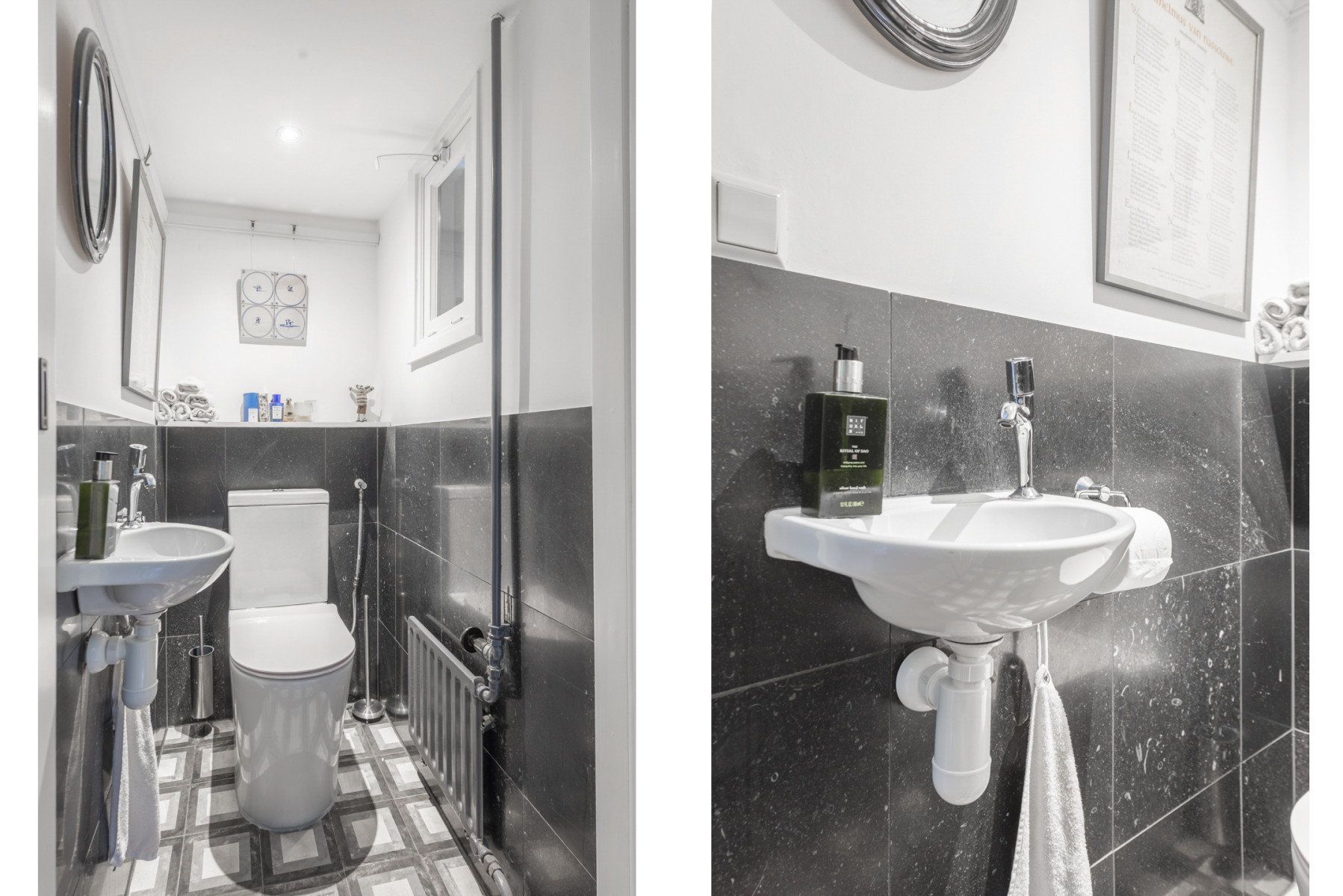 Bij binnenkomst staat u in de hal, het centrale punt van de woning. Hier vindt u een toiletruimte met toilet en fonteintje,
