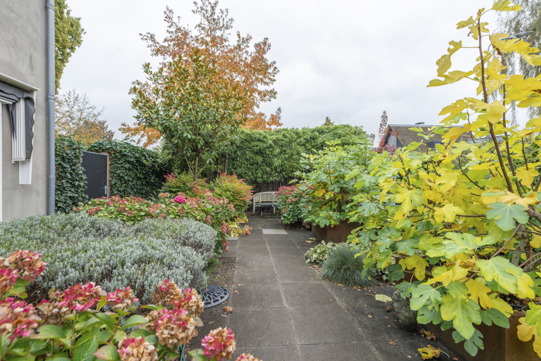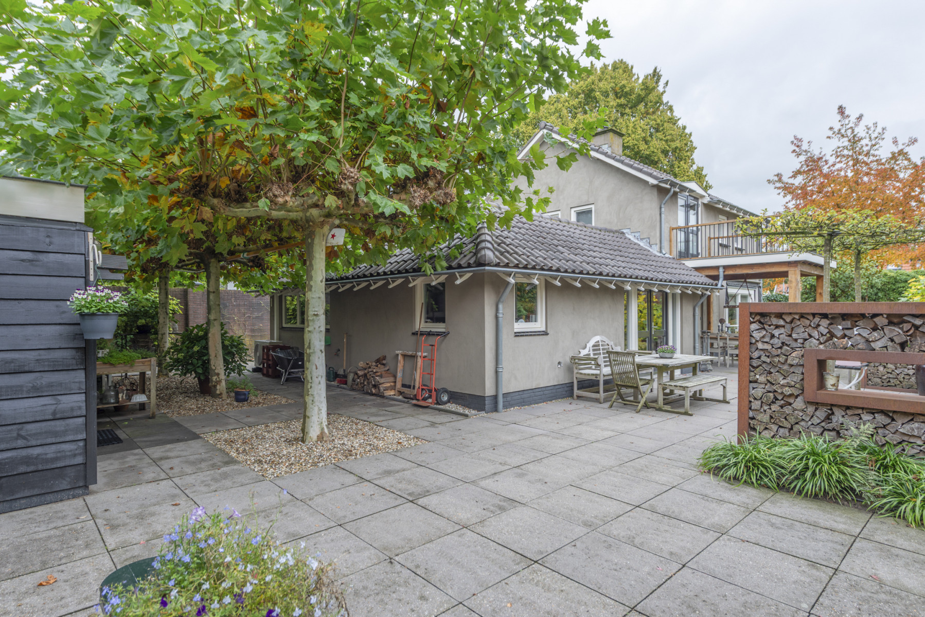 rondom de woning en zorgt elk seizoen weer voor een ander plaatje. De tuin is erg ruim en biedt u plek voor het plaatsen van diverse zithoekjes, onder de platanen, onder de overkapping of gewoon fijn in de zon. Welk plekje wordt uw favoriet? De tuin is aangelegd met bestrating, diverse beplanting, platanen bomen en appelbomen. Een prachtig geheel! Verder is de tuin aan de zijkant afgesloten met een hek en via een poort aan de zijkant bereiken we tevens de tuin. Aan de voorzijde kunt u meerdere auto's parkeren op eigen erf.