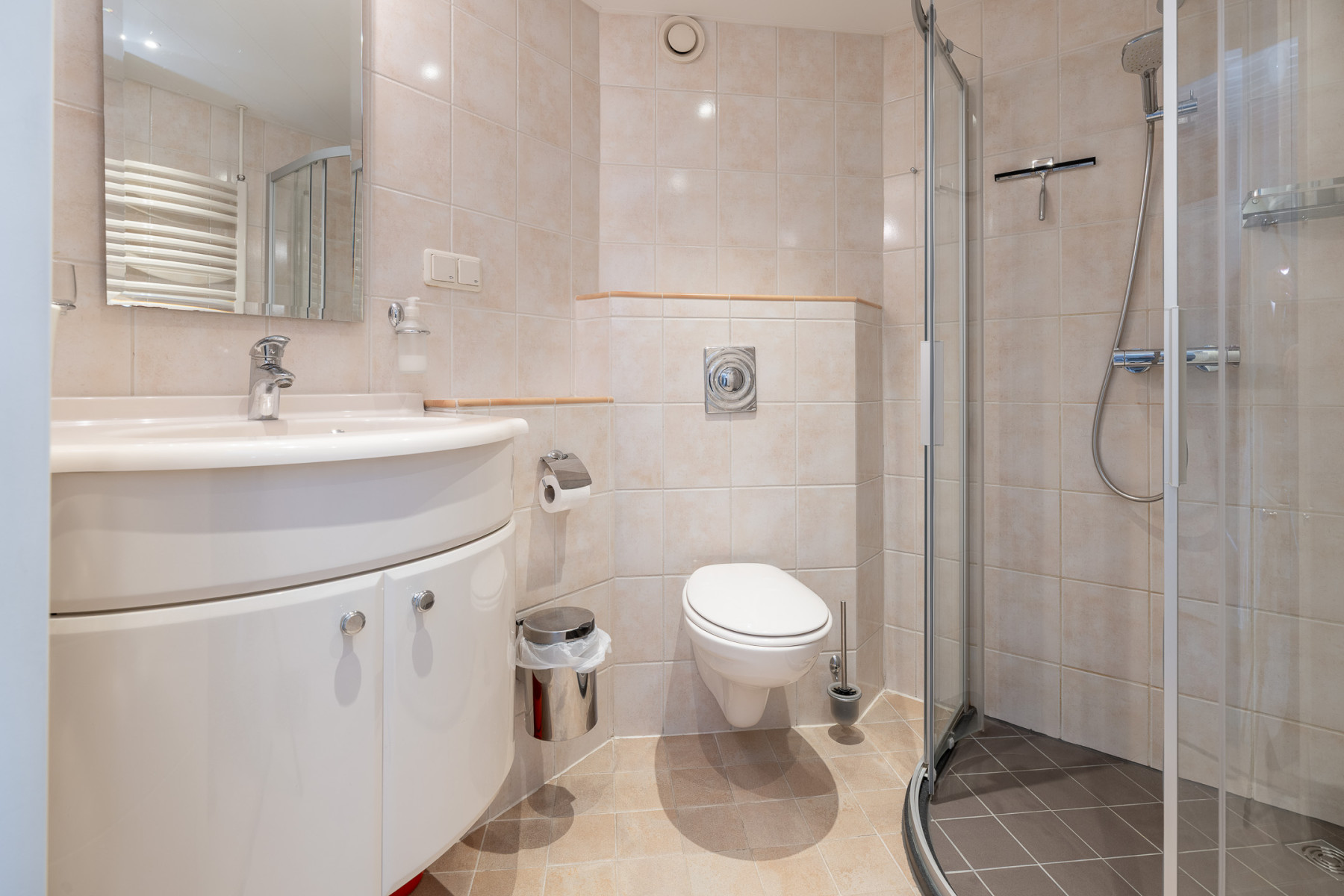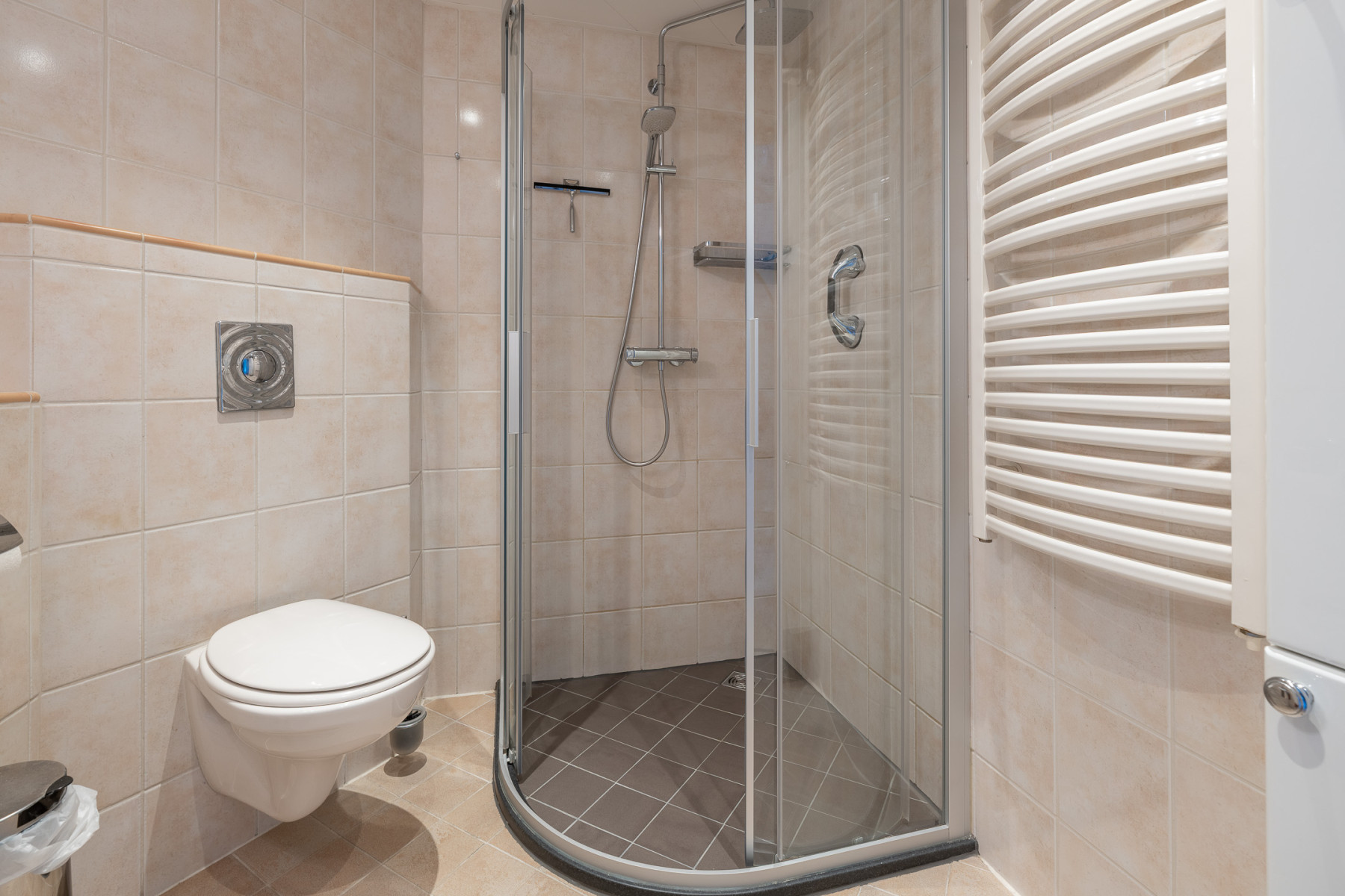 Toilet, douche, wastafel, wastafelmeubel en vloerverwarming