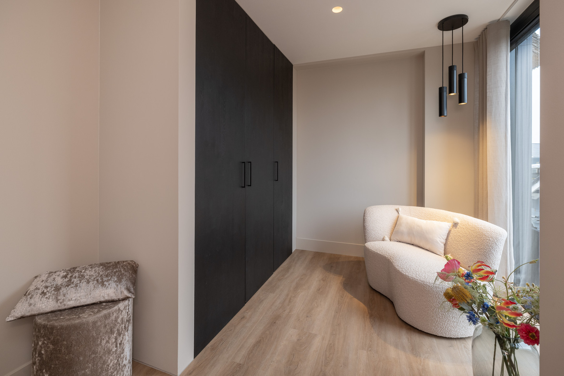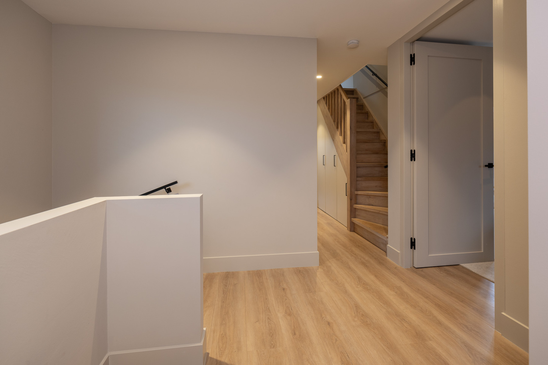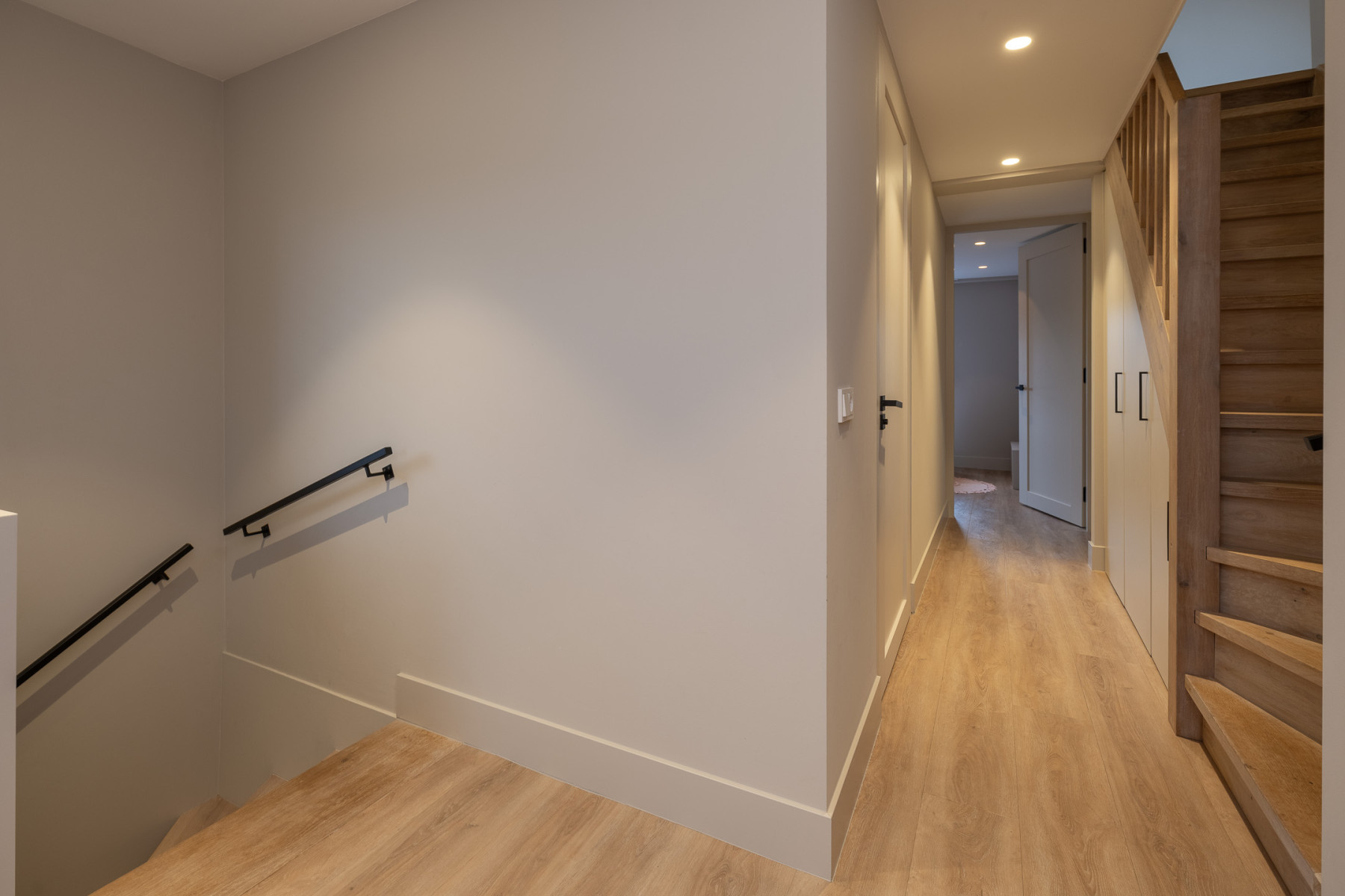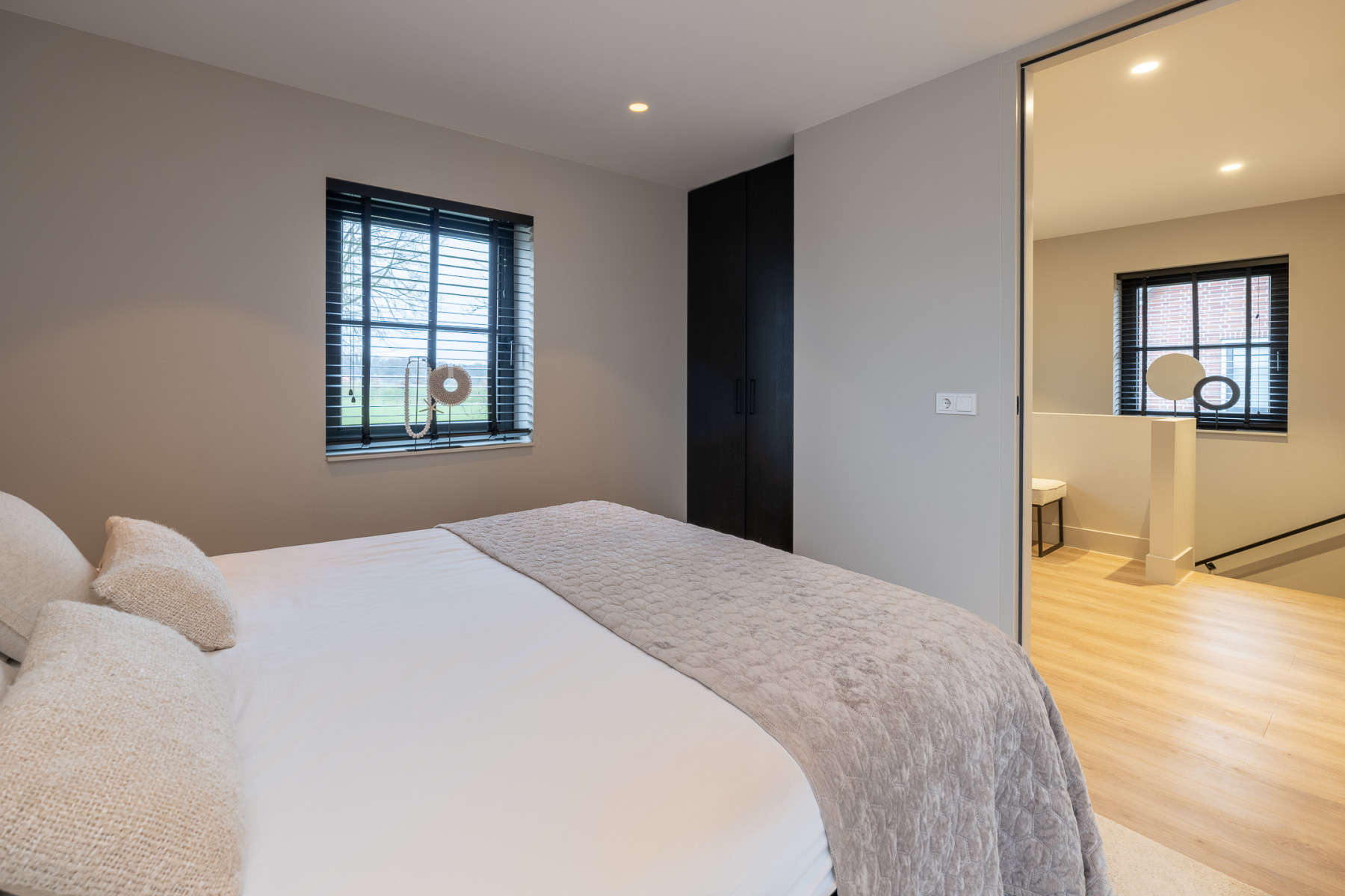 De ouderslaapkamer is voorzien van vaste kasten, praktisch voor het ophangen van uw kleding e.d. Op de overloop zijn tevens vaste kasten te vinden, ideaal voor het opbergen van uw spullen.