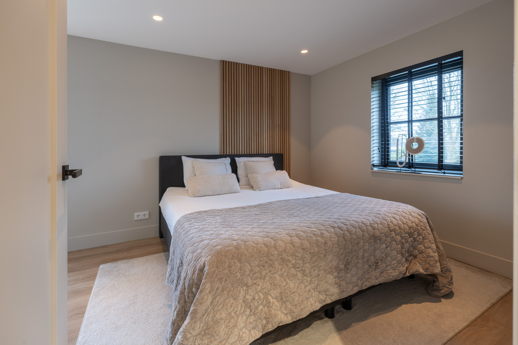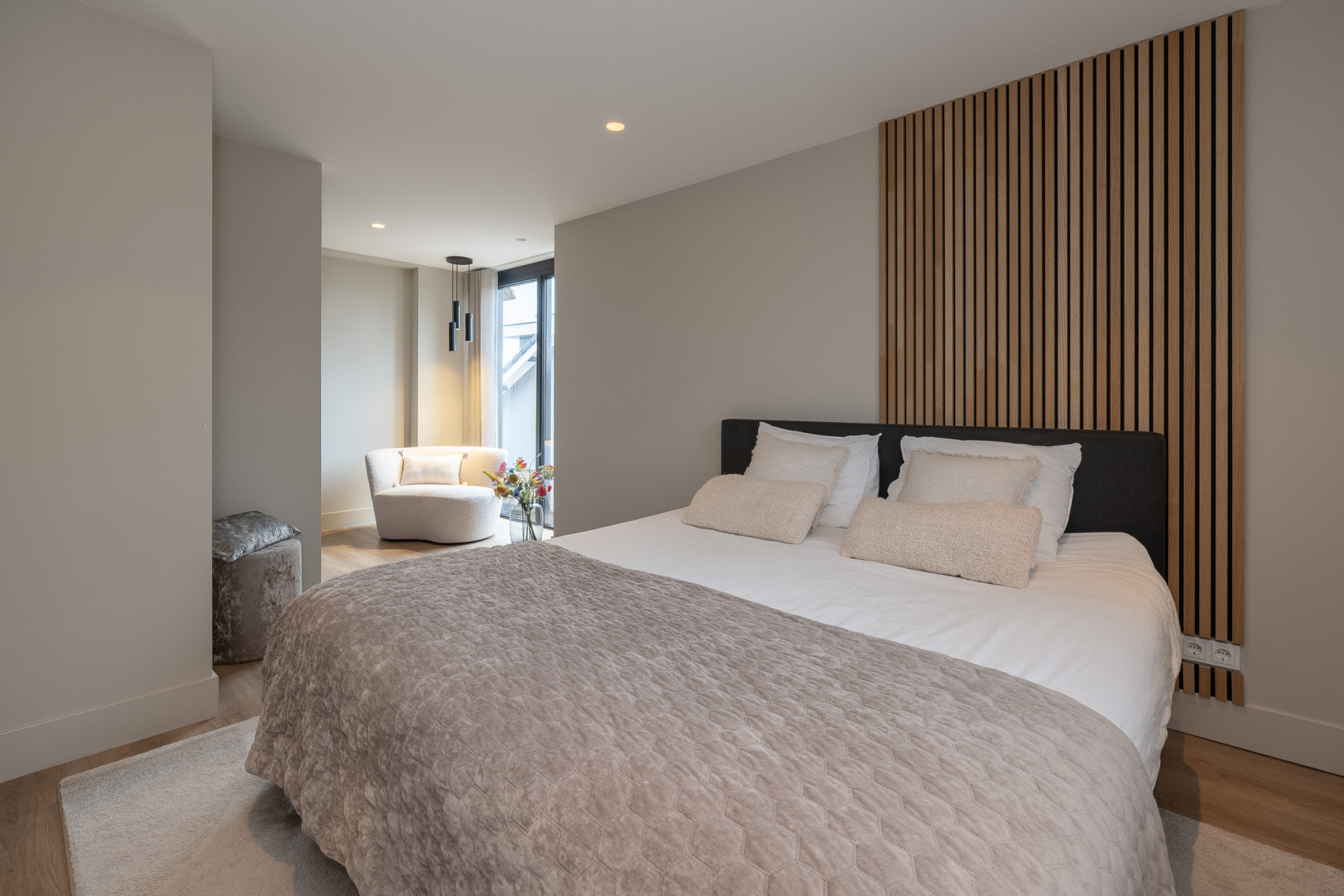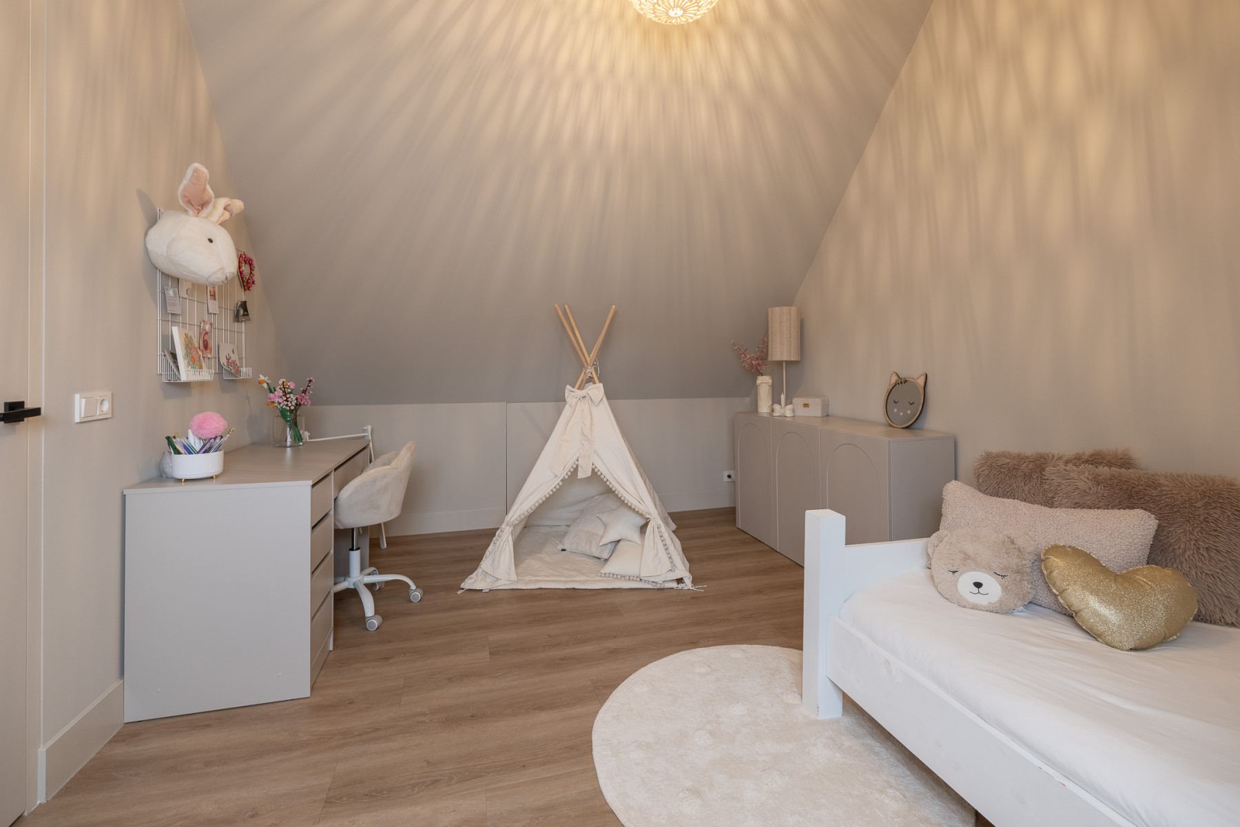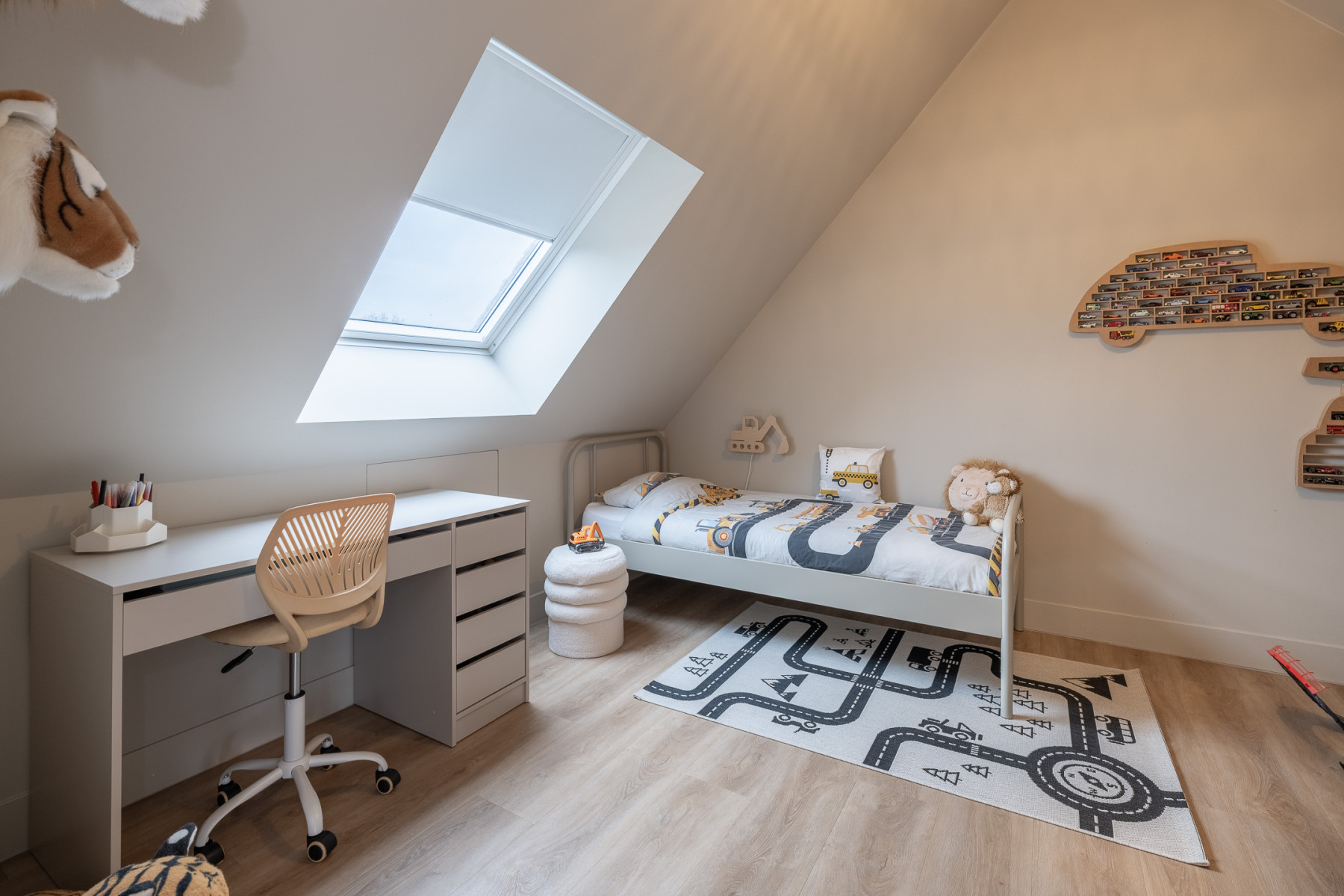 De eikenhouten trap met een stalen trapleuning brengt u op de eerste verdieping. Vanaf de overloop loopt u zo naar drie fijne slaapkamers en de badkamer. Alle slaapkamers zijn keurig en modern afgewerkt met een pvc-vloer, lichte wanden en een gestuukt plafond. U hoeft hier echt niets meer te doen. Spullen neerzetten, bed opmaken en klaar.