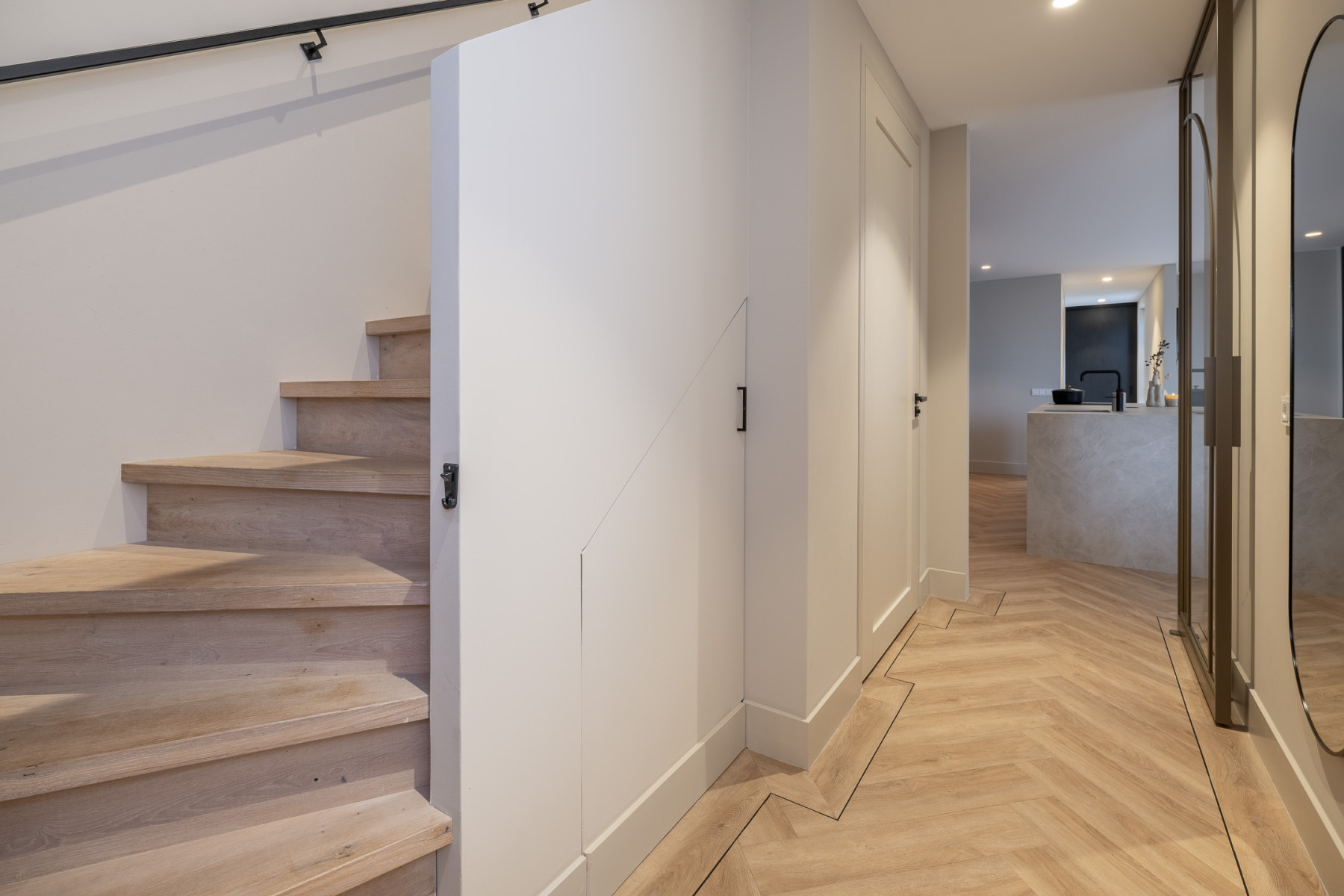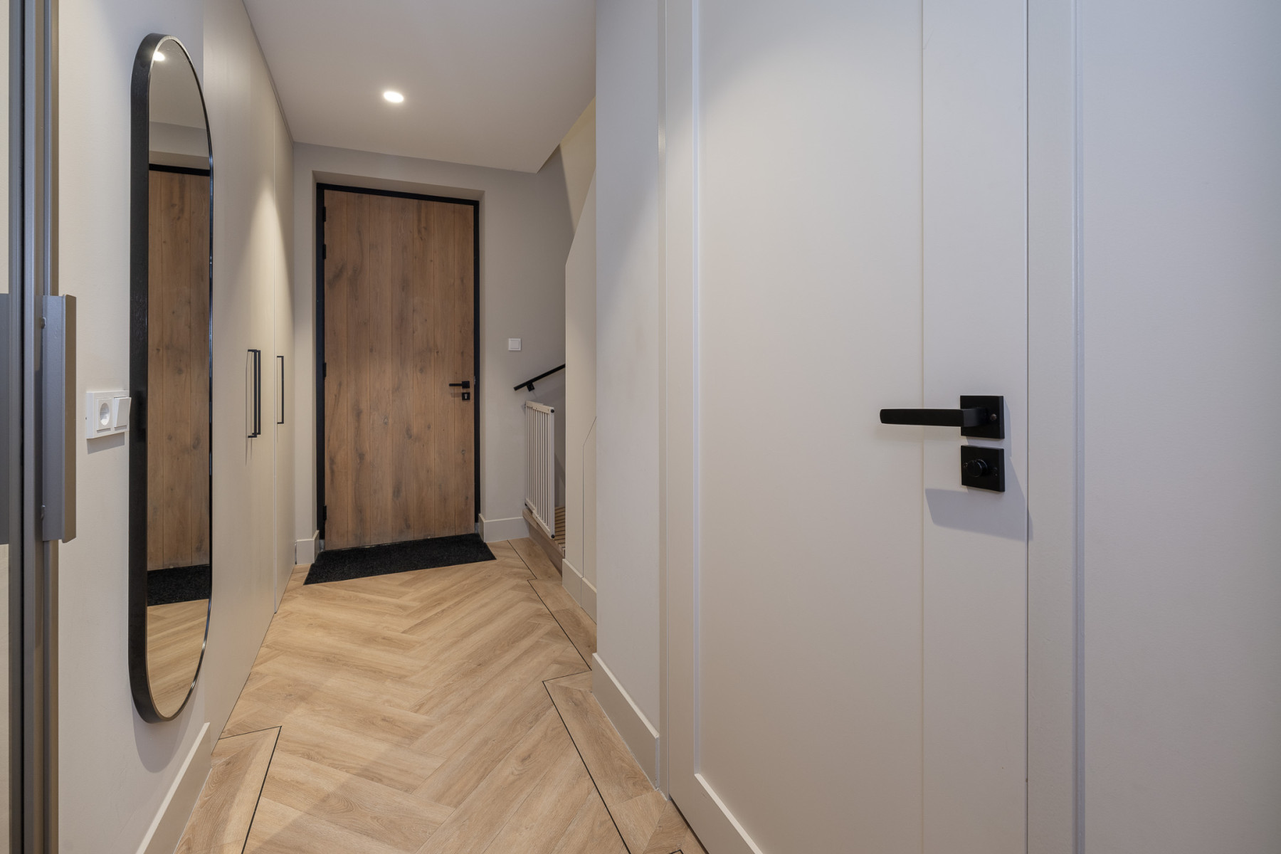 Achter deze voordeur schuilt een paleisje! Kom binnen in deze woning en laat u verrassen door de perfecte afwerking en de sfeer. Alle ruimtes sluiten op elkaar aan wat direct als een thuis voelt! In de hal vindt u aan de rechterzijde een vaste kastenwand, ideaal voor uw schoenen en jassen waardoor de ruimte netjes en opgeruimd blijft. Aan de linkerzijde bevindt zich de eikenhouten trapopgang naar de eerste verdieping en een toiletruimte met een verzorgde uitstraling. In de toiletruimte treft u een toilet en een fonteintje aan. Middels de prachtige taatsdeur stapt u vervolgens het leefgedeelte binnen. Een prachtige binnenkomer!