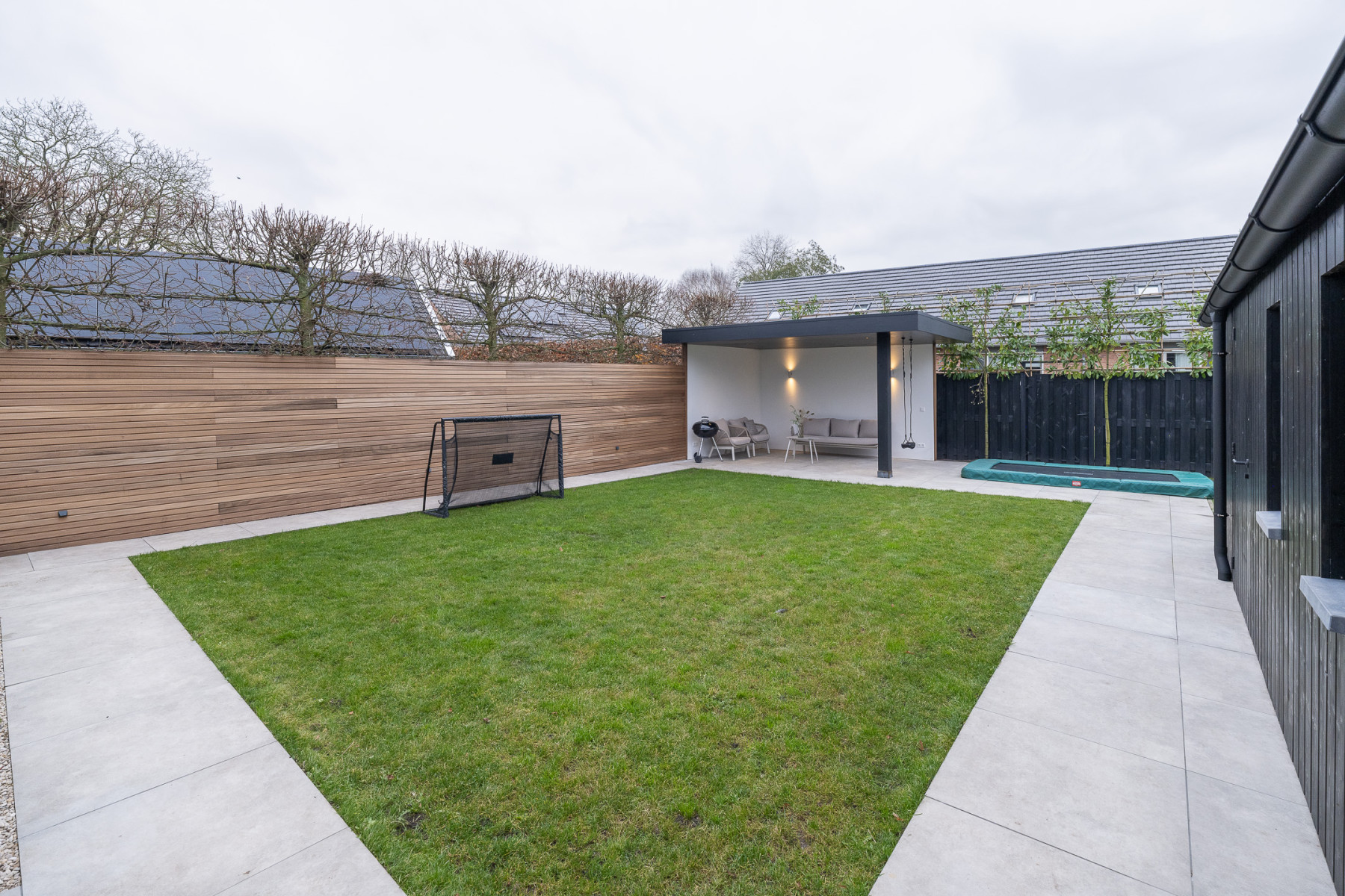 Dit is zo'n tuin waar u gelijk kunt gaan genieten. Perfect! De tuin bevindt zich rondom de woning en is strak aangelegd met grote tegels, een stuk gazon en grind. Er is een terras waar u een royale zithoek kunt plaatsen. De tuin is een fijne plek voor het hele gezin. Daarbij is de tuin gelegen op het zuidoosten. Achter in de tuin staat een veranda. Overdag een fijne schaduwplek en 's avonds is het een extra leefruimte waar u tot in de late uurtjes kunt genieten. De veranda is strak afgewerkt met spotjes. Een perfecte plek om in de buitenlucht te vertoeven!
