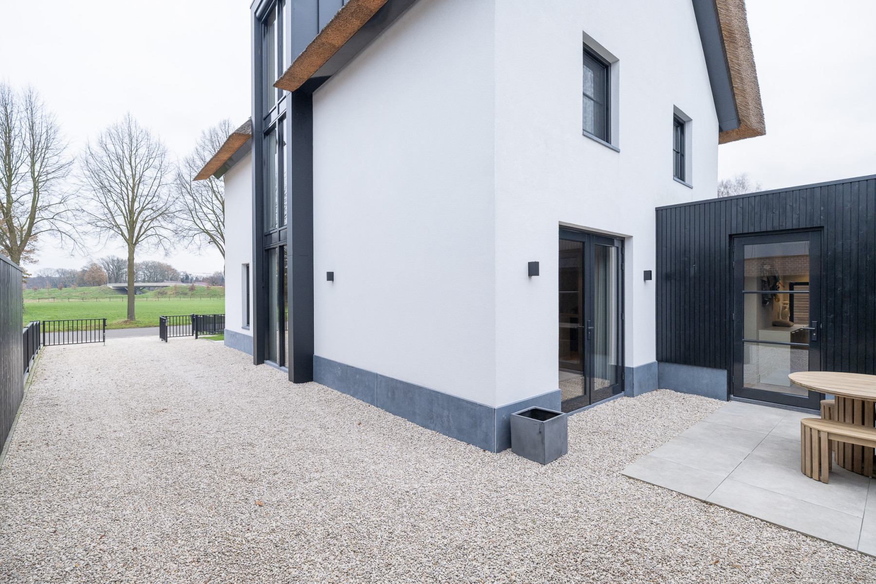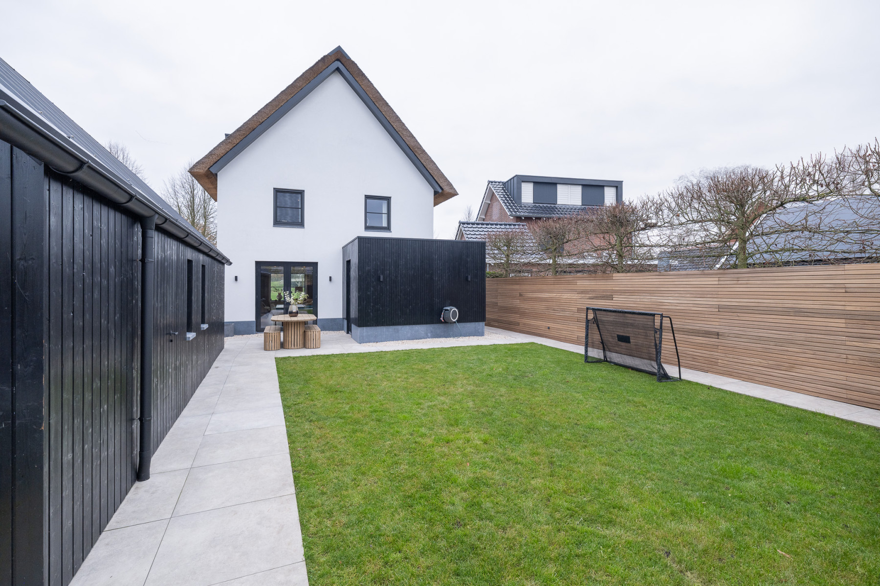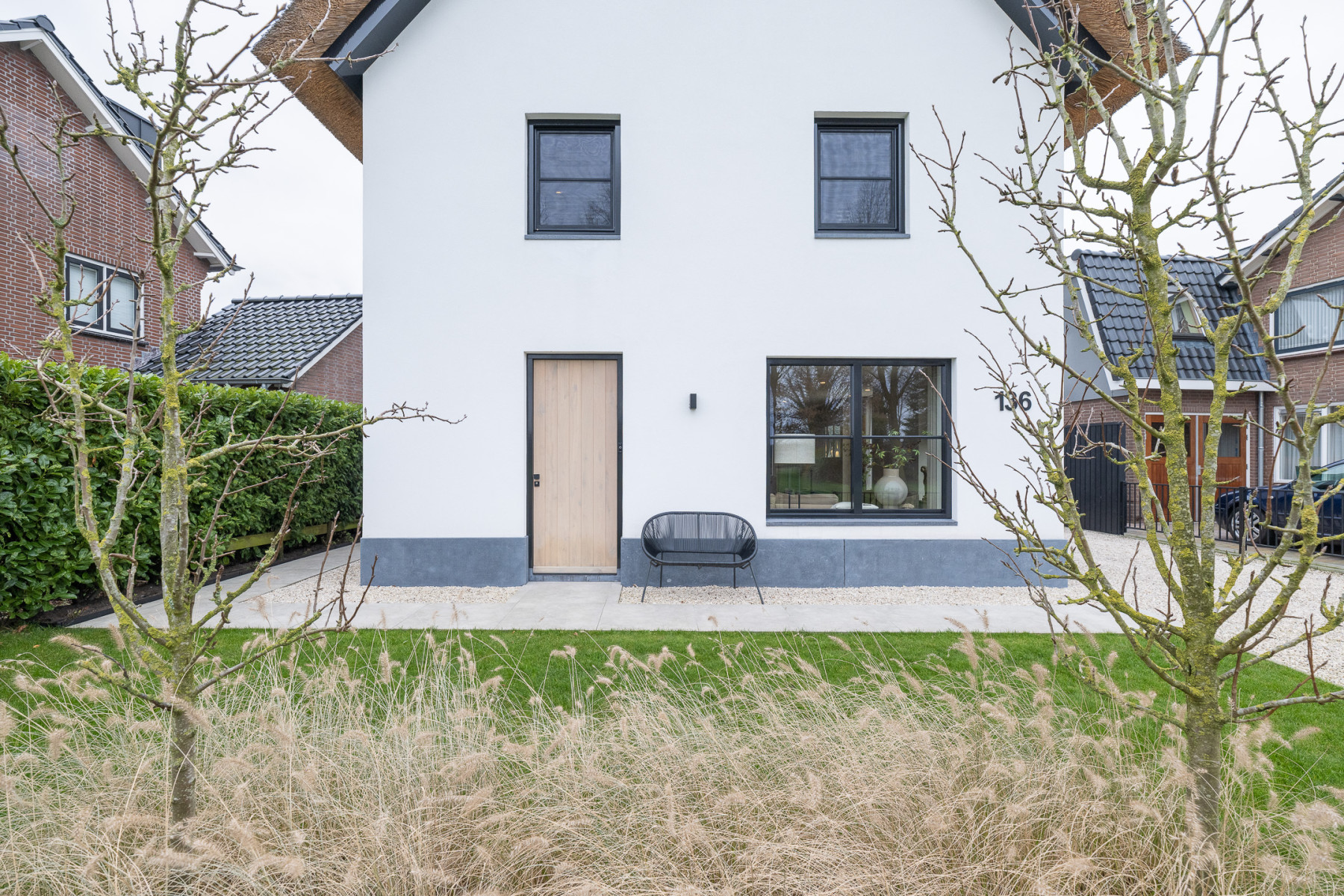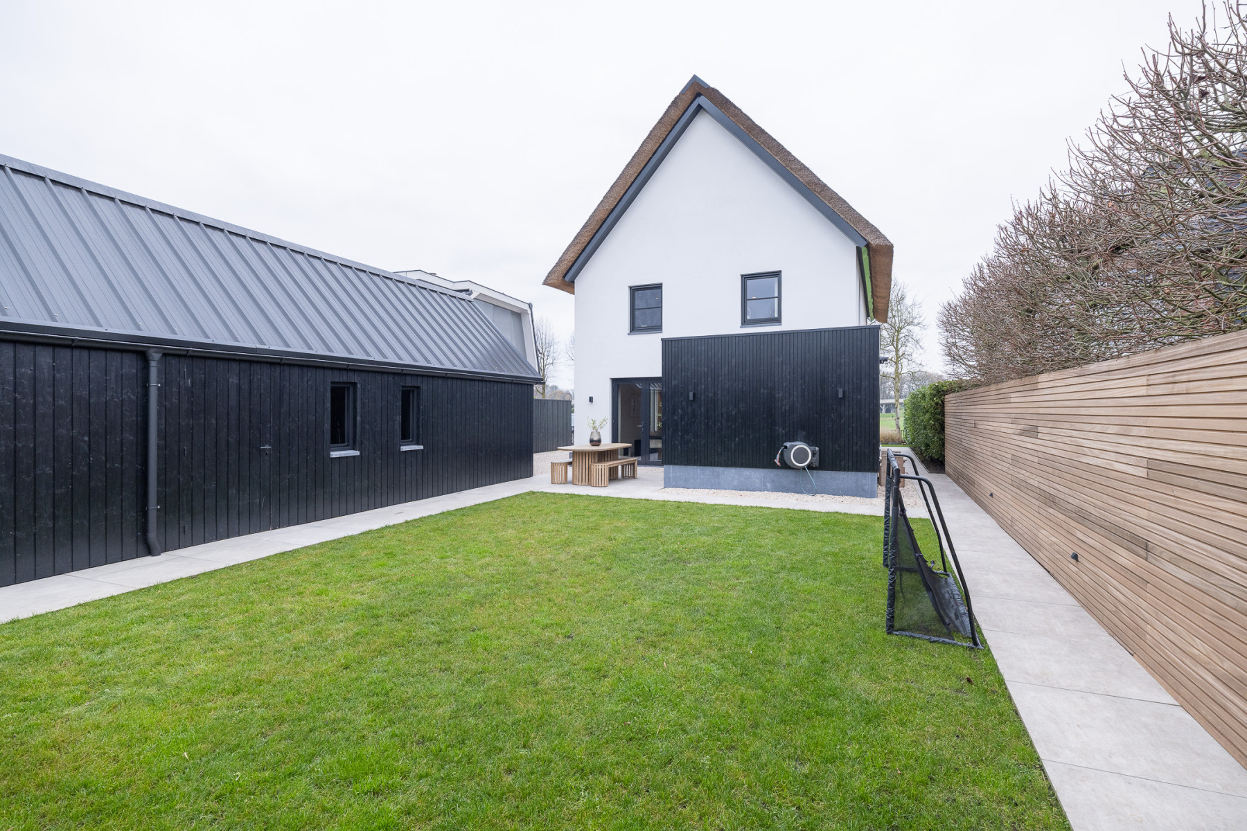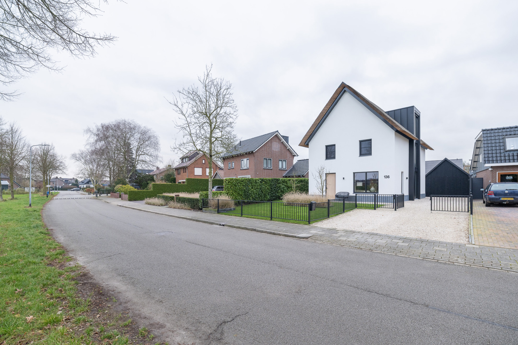 Wanneer u de straat in rijdt, valt deze vrijstaande woning direct op. De witte gevels, zwarte accenten en de rieten kap geven de woning een moderne en frisse uitstraling, een woning met karakter. Een woning die zowel aan de buitenzijde als aan de binnenzijde een eyecatcher is. Binnenshuis is deze woning tot in de puntjes toe perfect afgewerkt, een woning die u zo kunt betrekken. Het leefgedeelte geeft u voldoende plek voor een zit- en een eethoek, de keuken is strak afgewerkt met alle apparatuur die u maar kunt wensen, de verdiepingen bieden u vijf ruime slaapkamers en de badkamer maakt het plaatje compleet. In de tuin, die zich rondom de woning bevindt, kunt u genieten van het buitenleven. De veranda biedt u plek voor de minder mooie dagen en in de ruime schuur (32 m²) kunt u uw auto stallen en andere spullen opbergen. Een buitenkans voor wie op zoek is naar een (t)huis met sfeer en karakter!