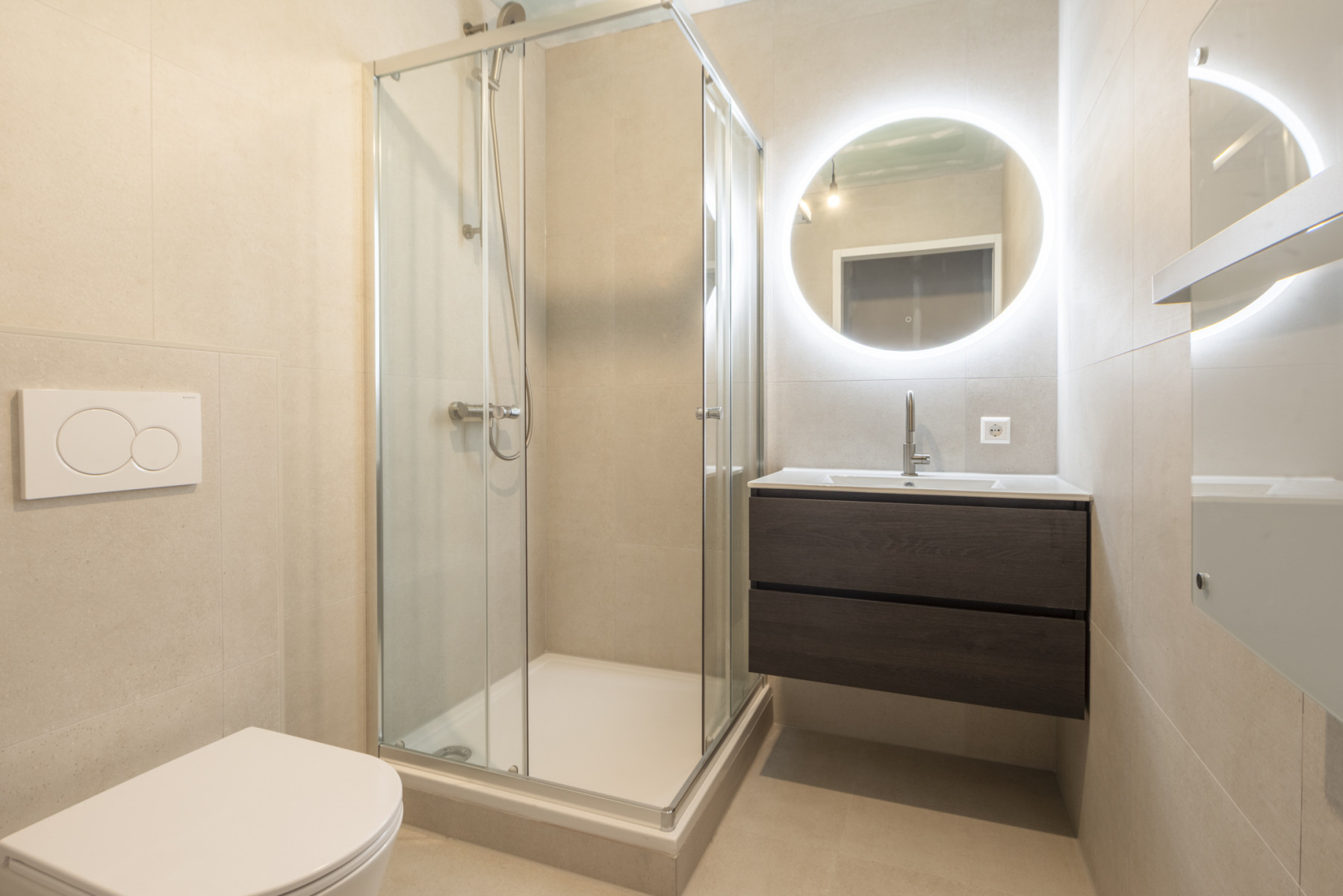 moderne badkamer. In de badkamer profiteert u van een douchecabine, een toilet, een wastafelmeubel met