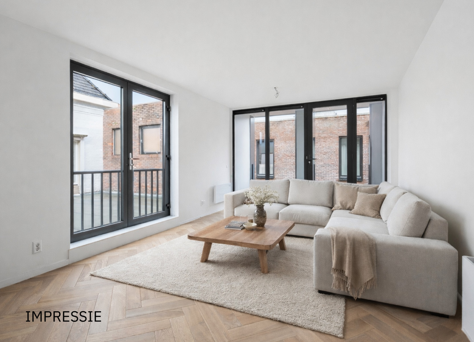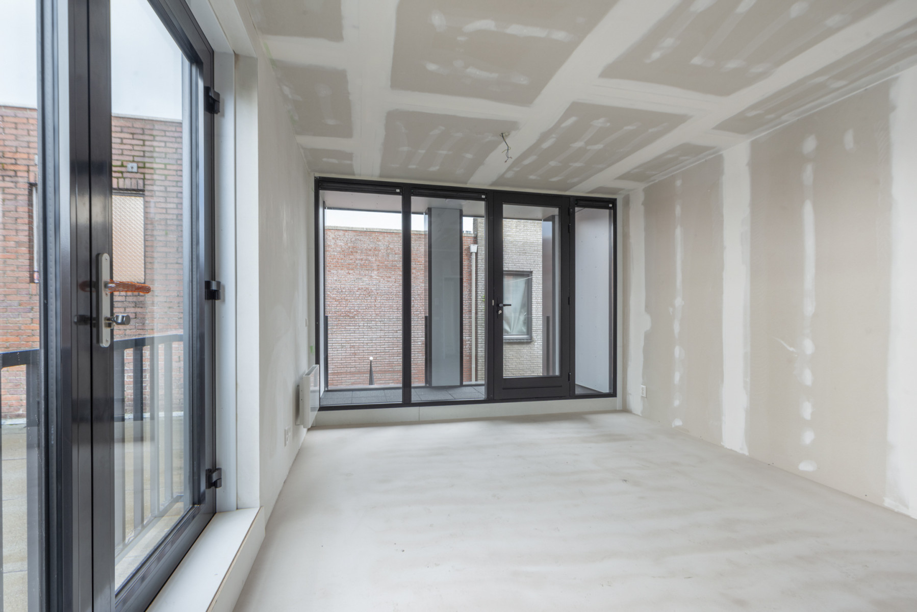Vanuit de centrale hal stapt u de appartementen binnen in de hal. Vanuit de hal krijgt u toegang tot alle vertrekken van de appartementen. Het leefgedeelte geeft u plek voor het plaatsen van een zithoek. Door de grote raampartijen komt er veel daglicht naar binnen. Tevens bereikt u vanuit hier de loggia. Een beschutte buitenruimte waar u de dag kunt beginnen met een kopje koffie of juist 's avonds nog even kunt genieten van de buitenlucht.